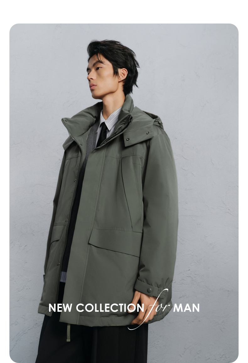 GXG男装 简约中长款羽绒服男通勤外套 冬热卖G24XY34005