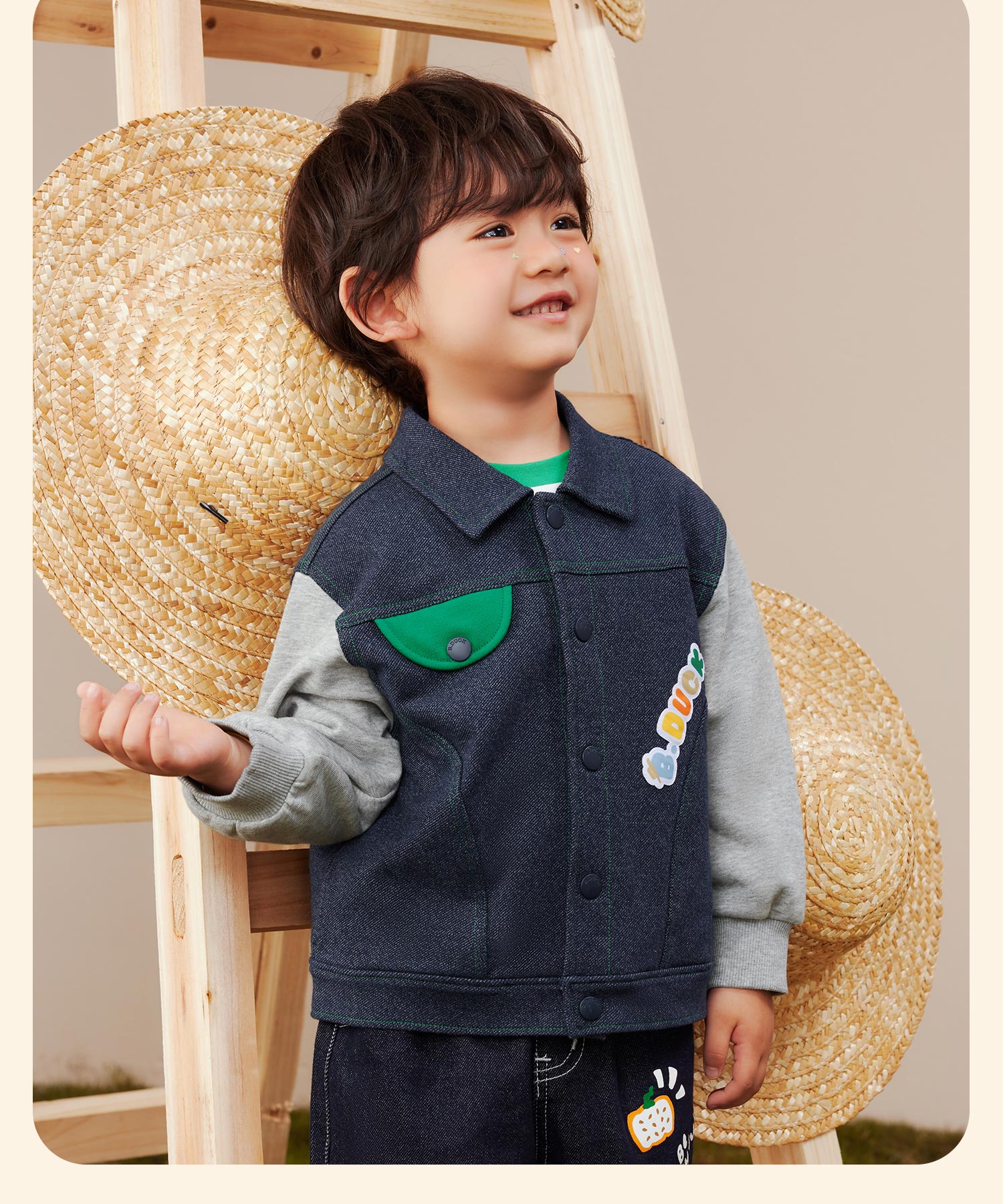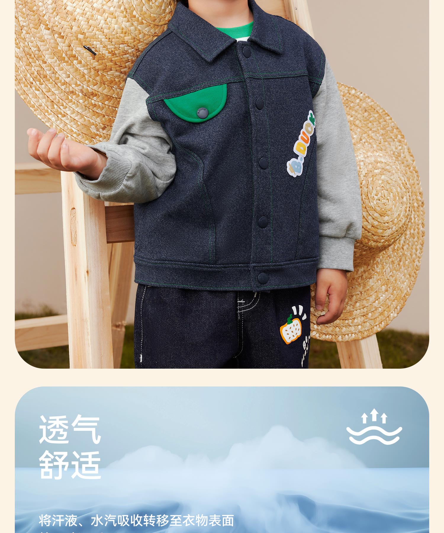B.Duck小黄鸭童装春秋仿牛仔夹克外套90-130 BF3607001