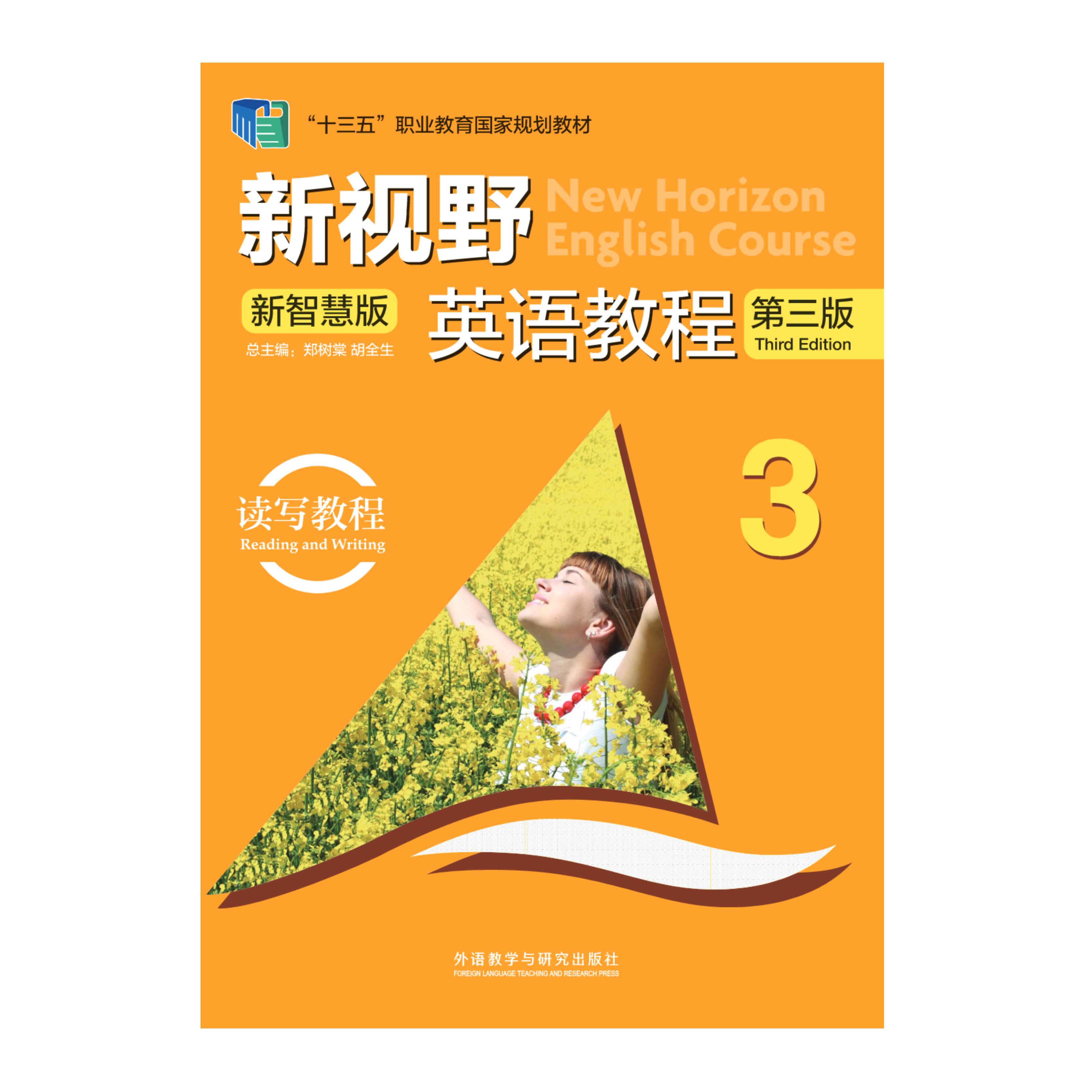 《新视野英语教程(第三版)》是一套专供全国高职高专院校公共英语基础课使用的英语教材,也可适用于应用型本科和一般本科院校,以及广大英语学习爱好者。第三版延续了前两版注重语言基础,培养综合能力的优势,在编写中更加注重选材的时代性、练习的针对性和资源的多样性,有效提高学生的英语语言技能,跨文化交际能力与自主学习策略,使学生具备应用英语处理未来与职业相关的业务的能力,以适应不同工作岗位的需要,并为今后的可持续发展打下良好的基础。《读写教程》为《新视野英语教程》系列教材的主干,分1—4级,每册10个单元,供一个学期使用。本教材是《新视野英语教程(第三版)读写教程3》的新智慧版本。新智慧版为混合式学习资源包,包含教材及数字学习卡。在教材的基础上,通过附带的学习卡,为学生提供语言技能训练、备考训练等方面的数字课程,满足学生多元的学习需求。新增思政内容更符合了目前思政教学的最新趋势。