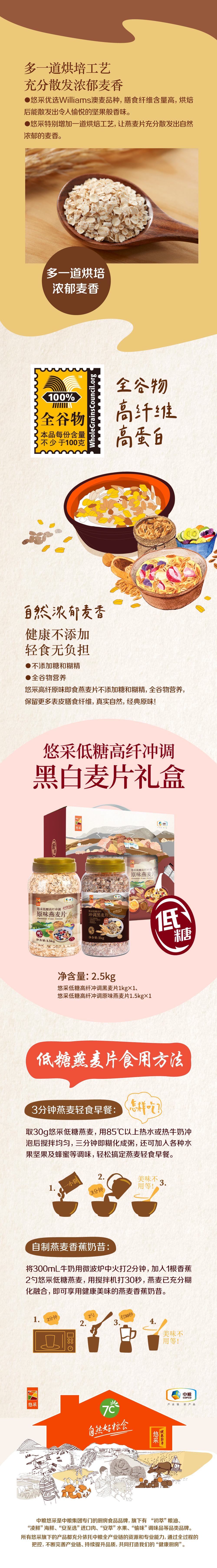 中粮悠采低糖高纤黑白麦片礼盒(2罐装)2.5kg