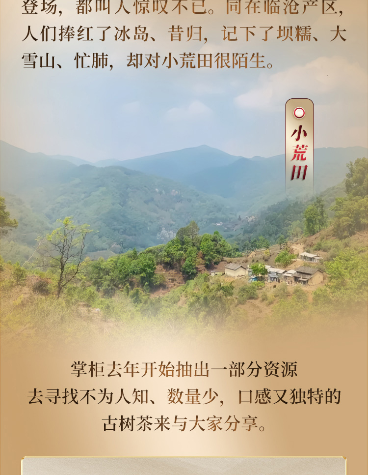 藏在邦马大雪山深处,与冰岛糯伍、坝歪为邻,海拔超1600米的拉祜族寨子里,古树与石斛、苔藓共生,天生天养,真正“秘境茶”!