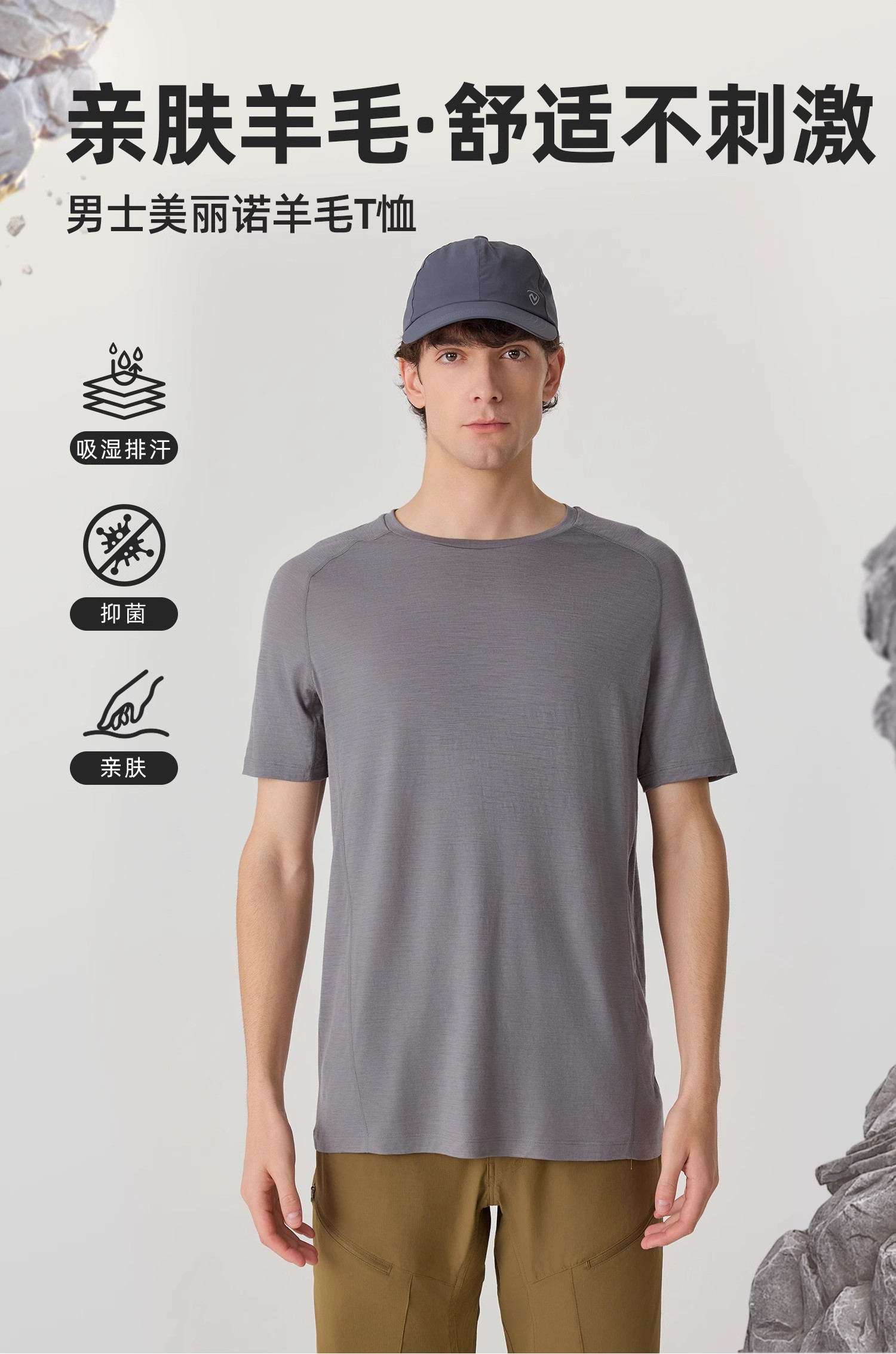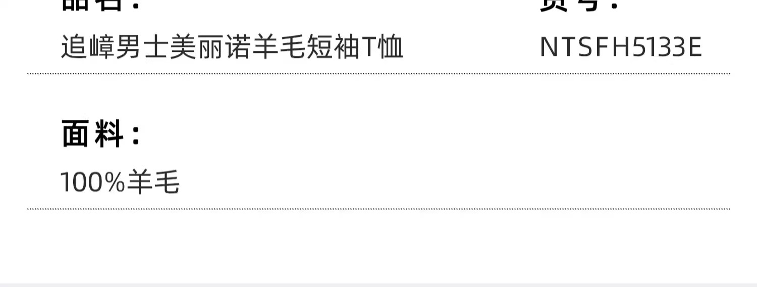 诺诗兰追嶂男式美丽诺羊毛短袖T恤NTSFH5133E