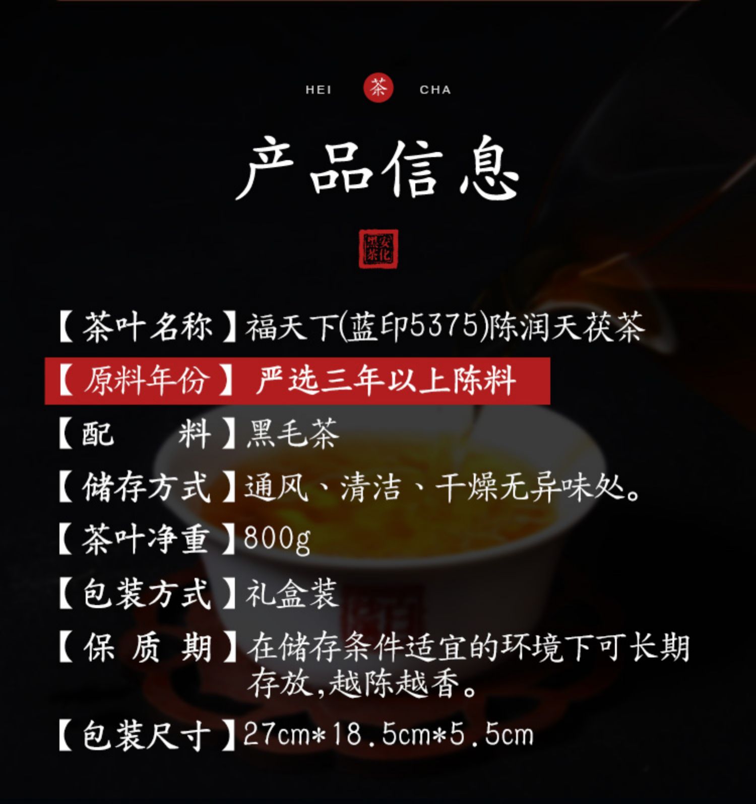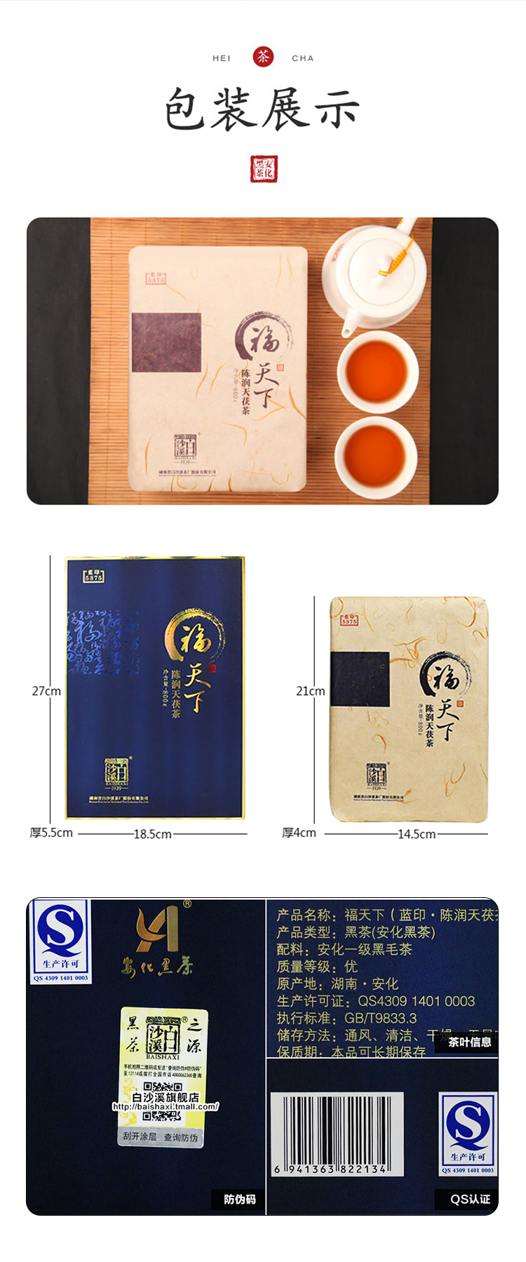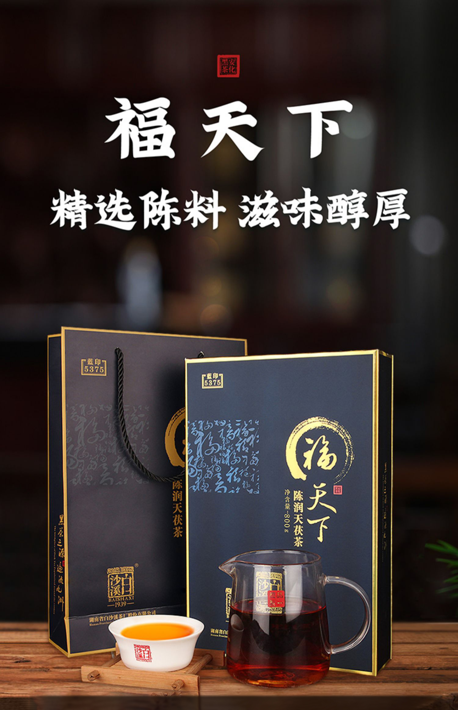 黑茶丨白沙溪 2022年 福天下 (蓝印5375)陈润天茯茶 800g