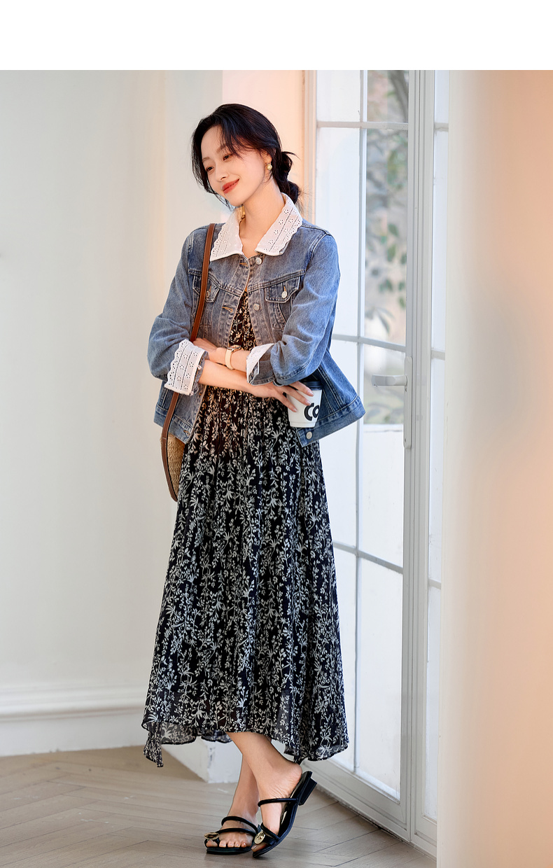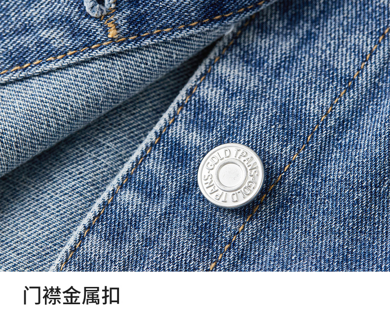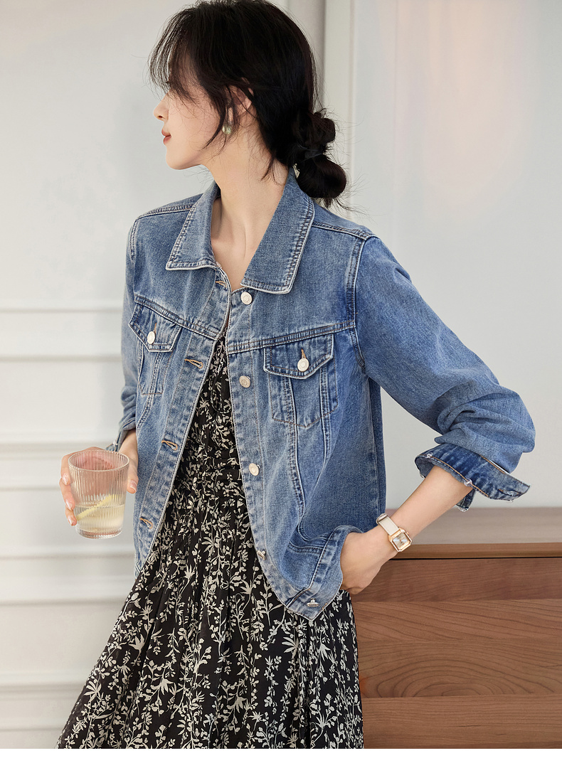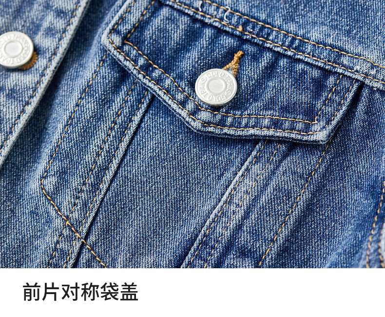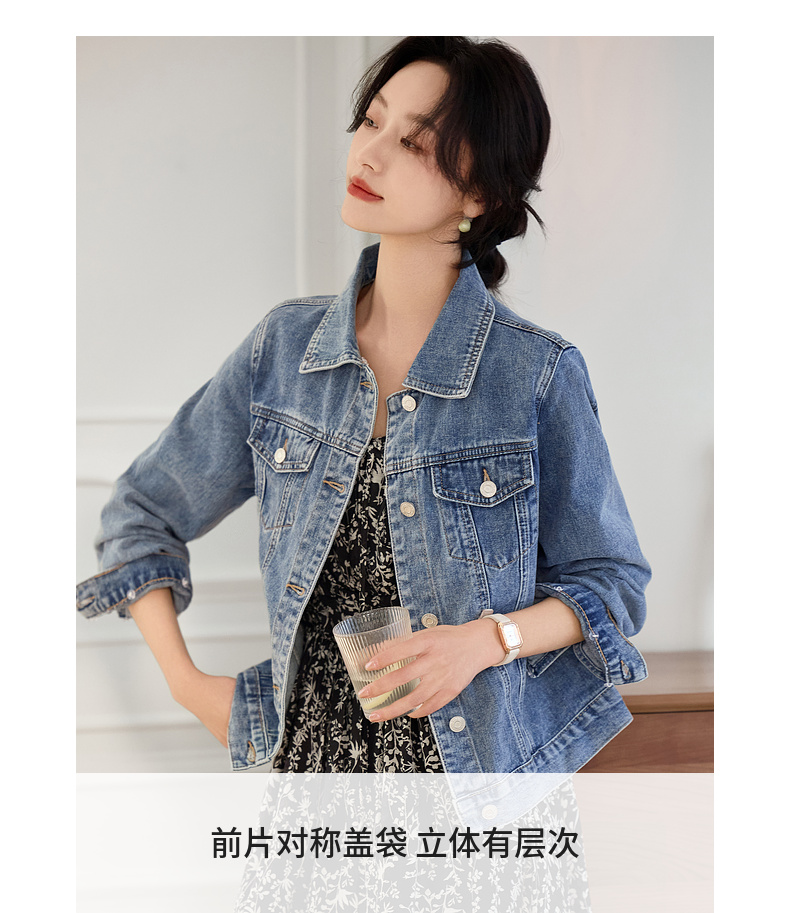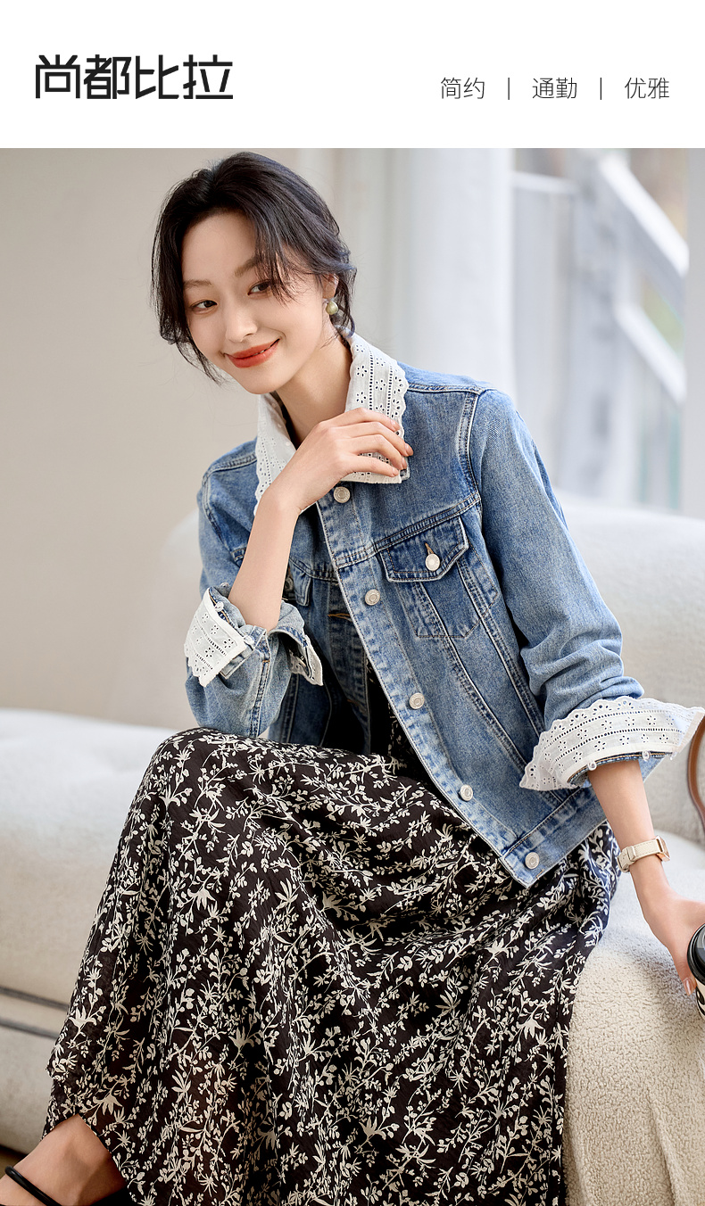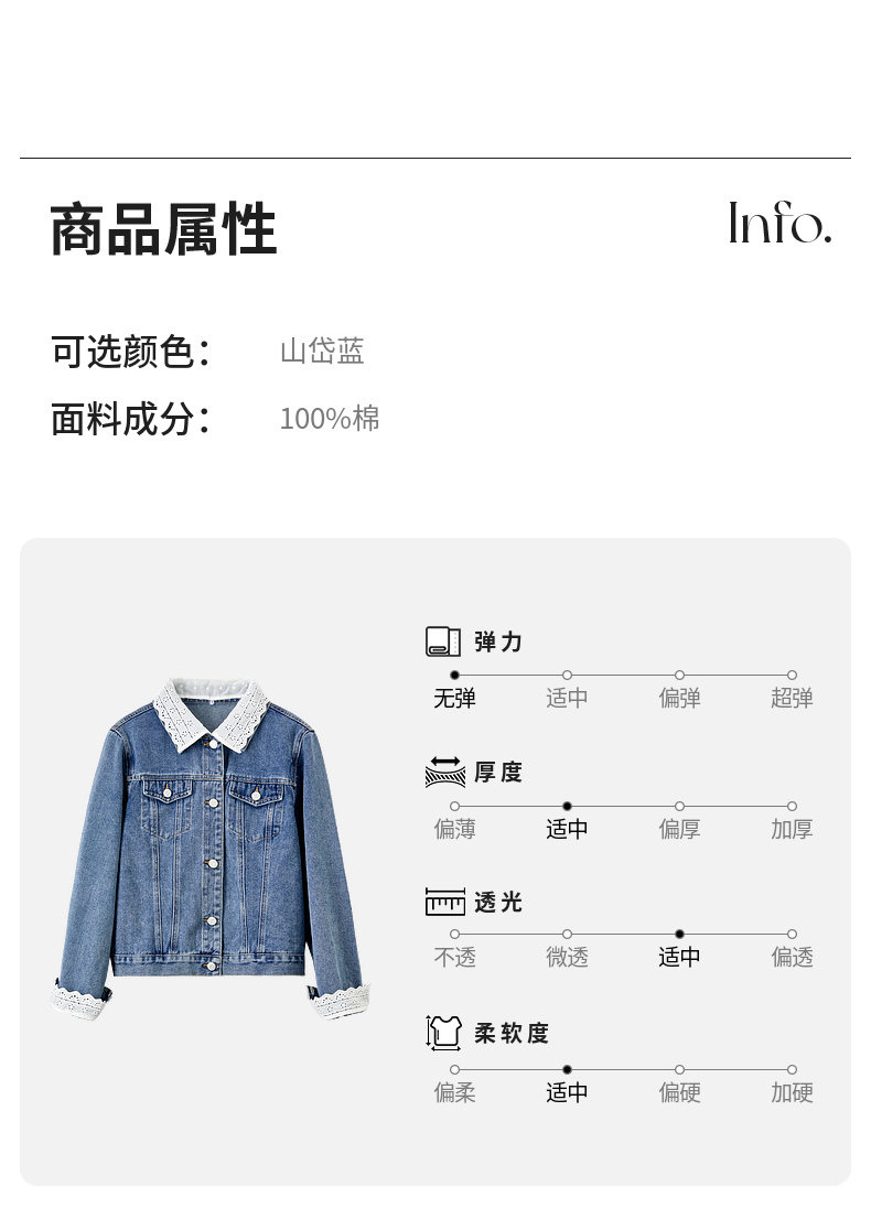 【内购】【蕾丝可拆卸】简约通勤双层翻领落肩袖纯棉水洗两穿牛仔外套-W51W80409