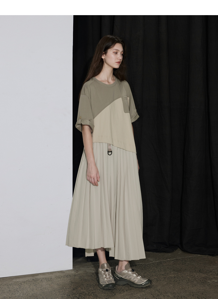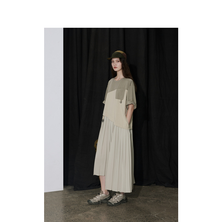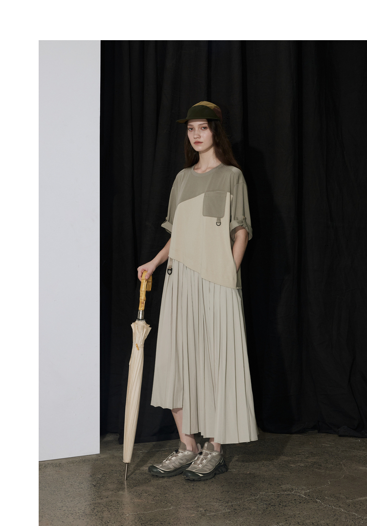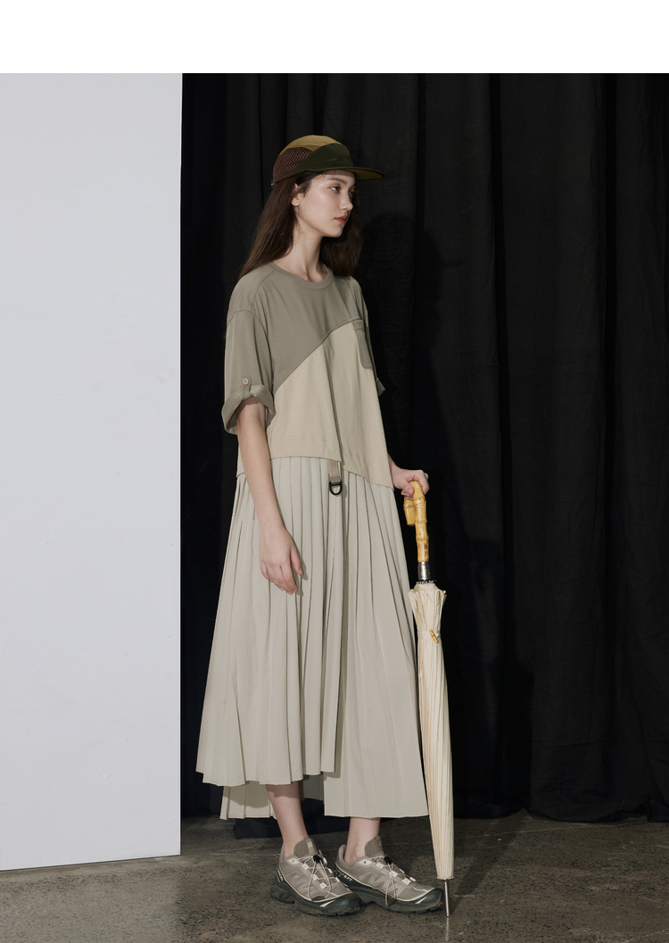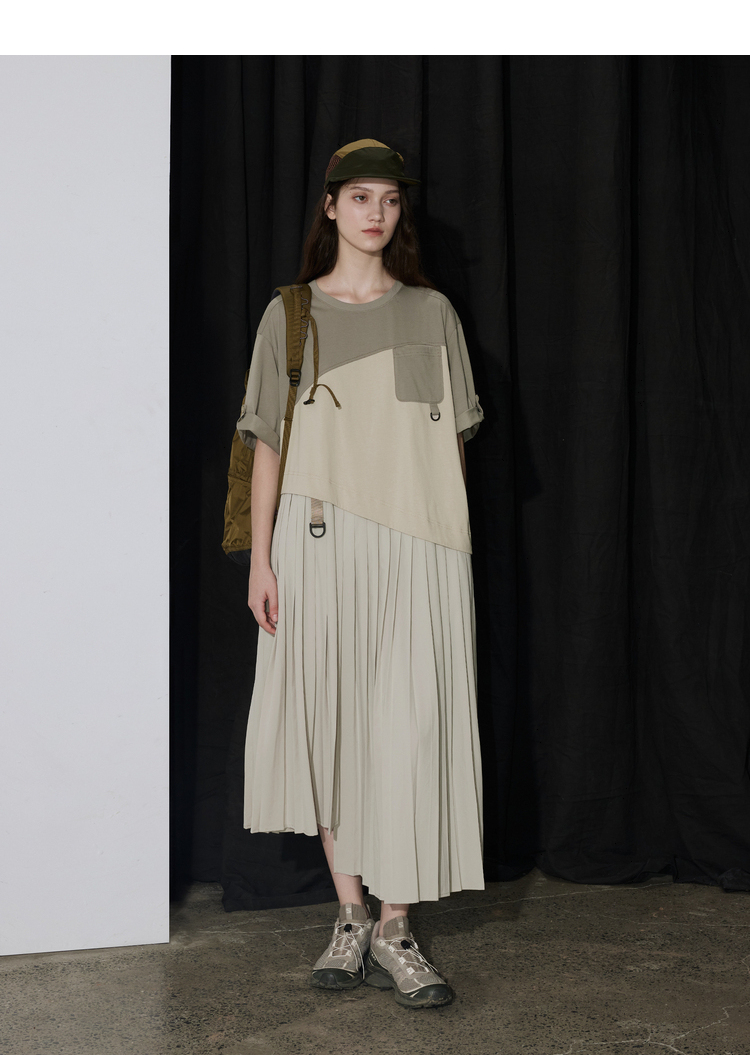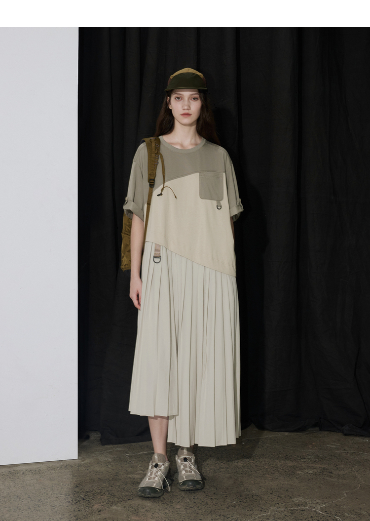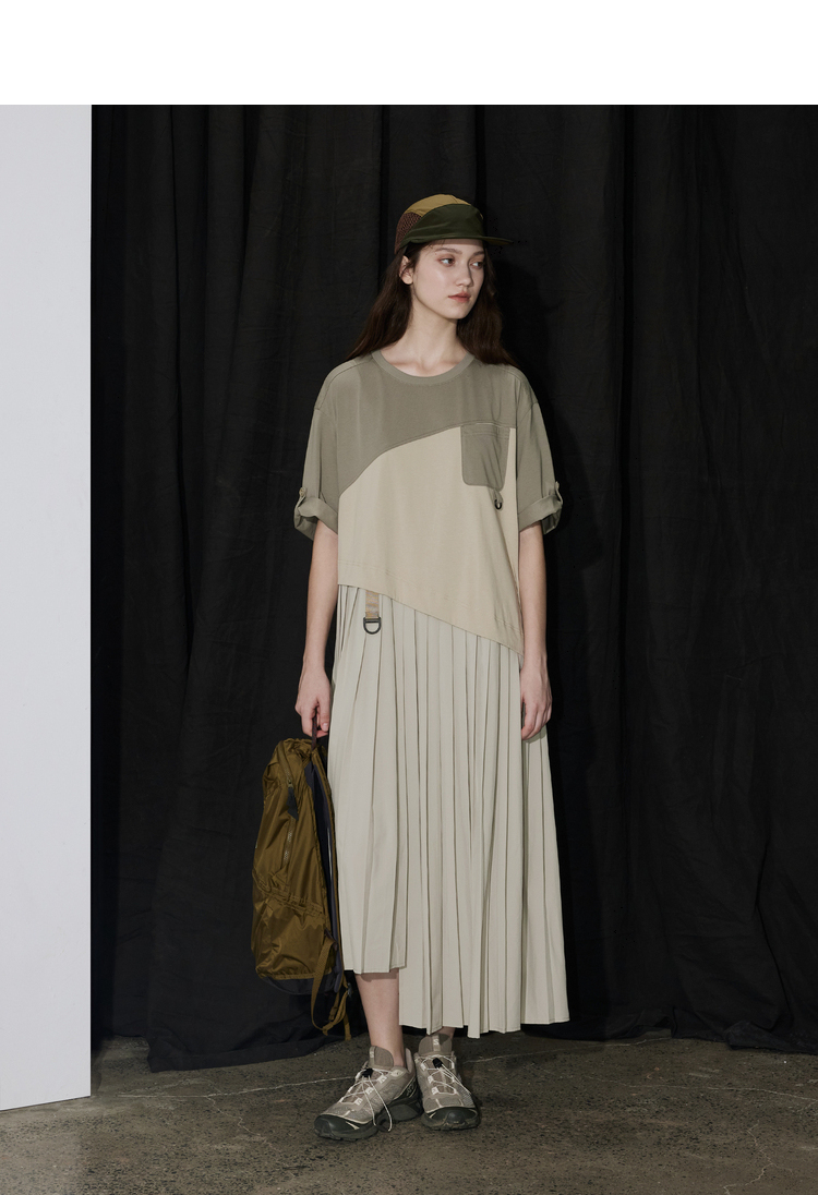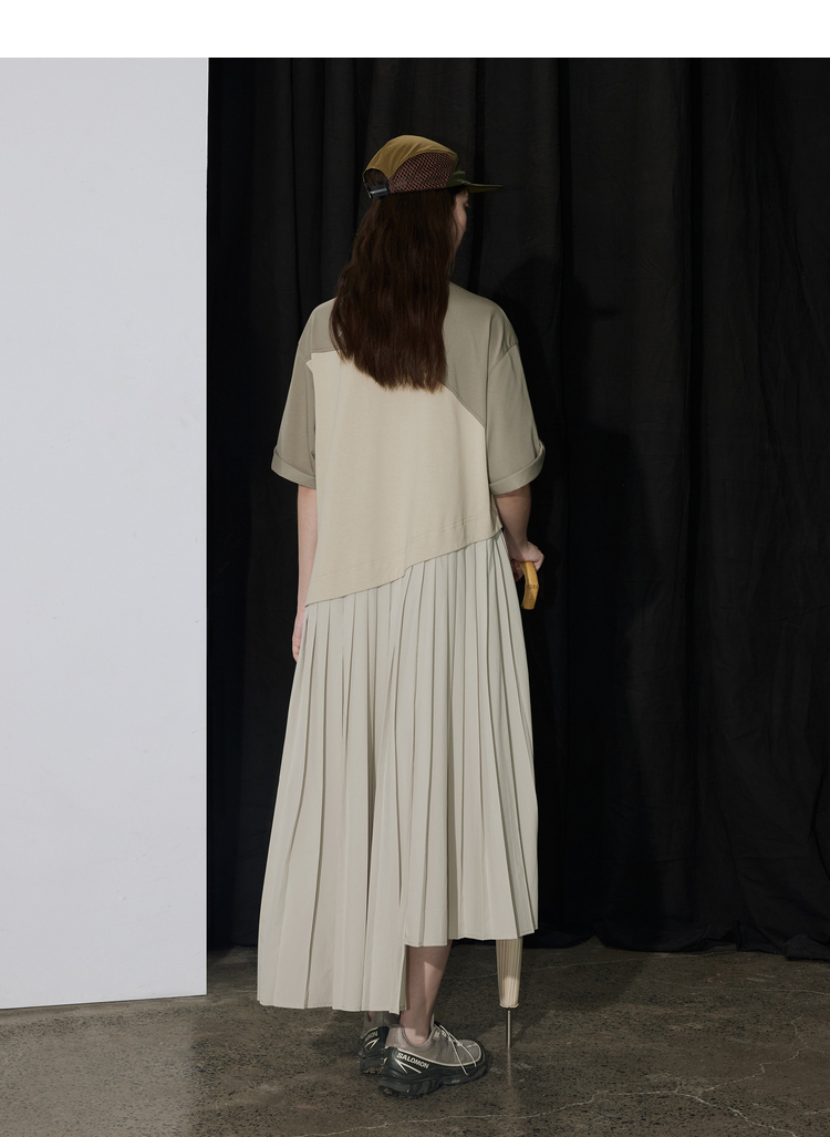 半圆/D24201358/不对称拼接压褶针织连衣裙