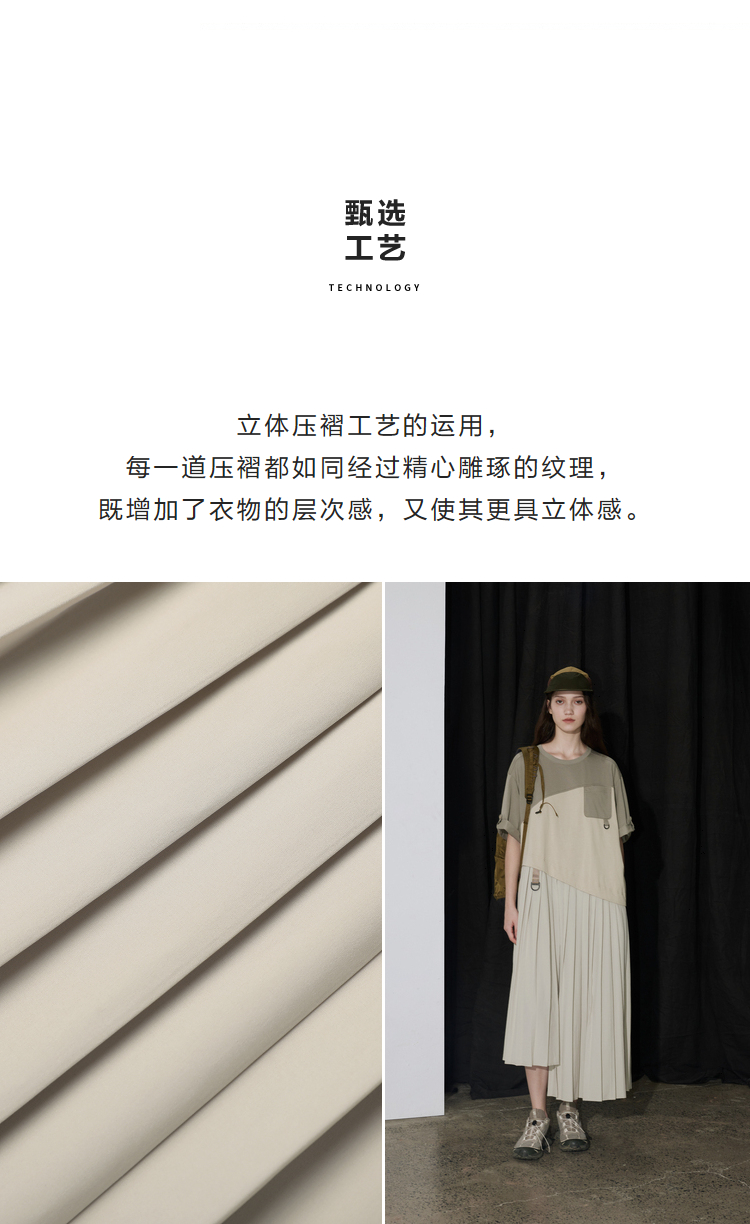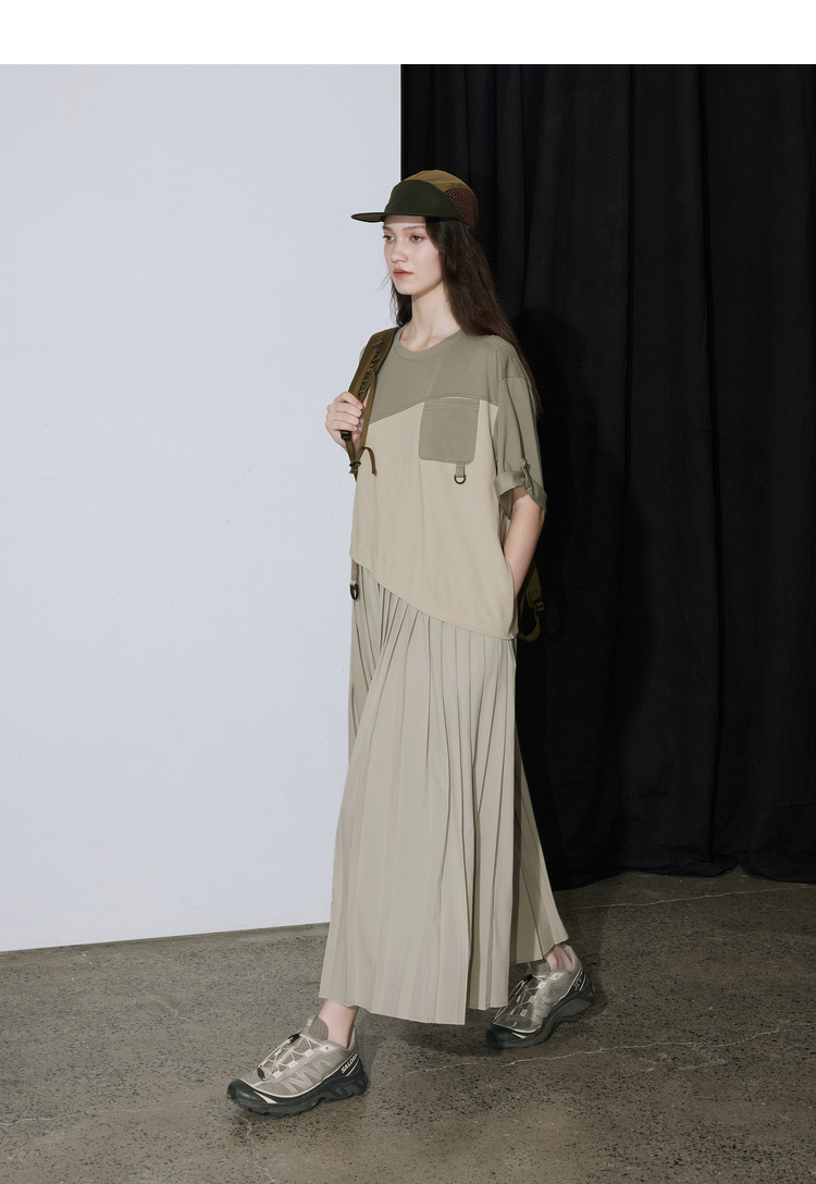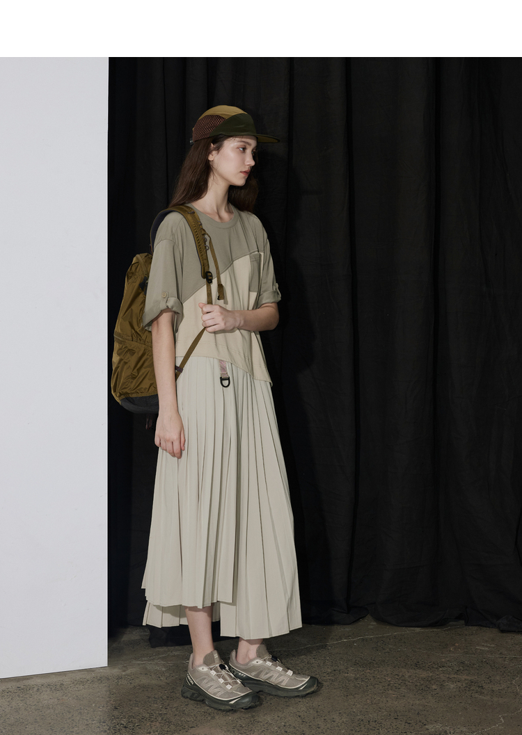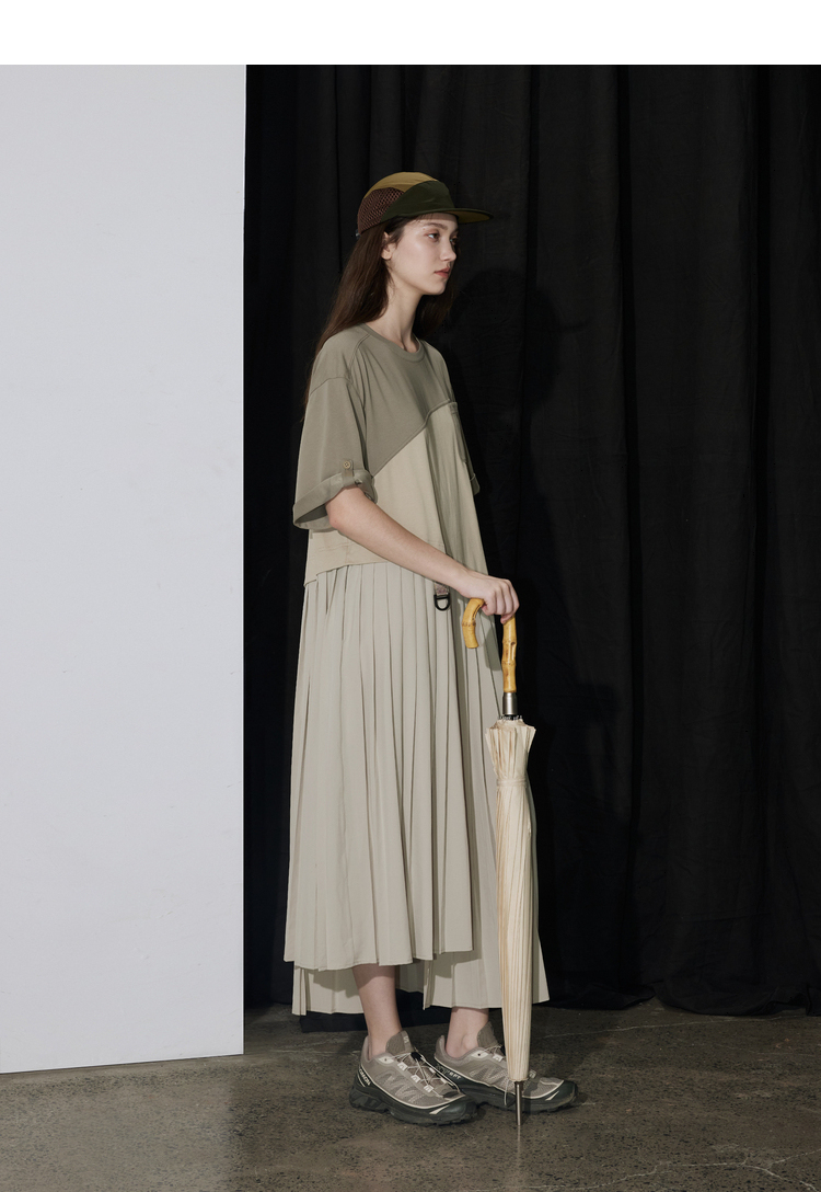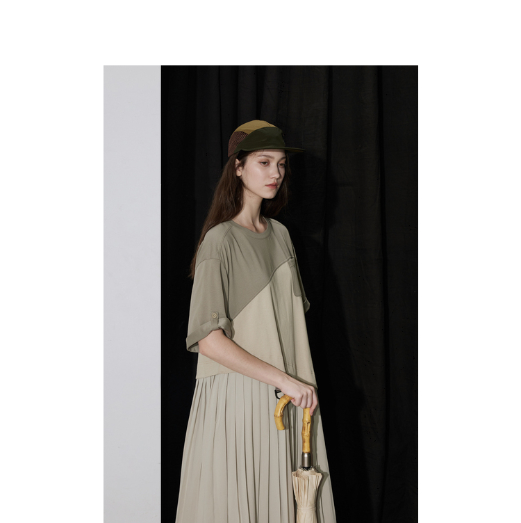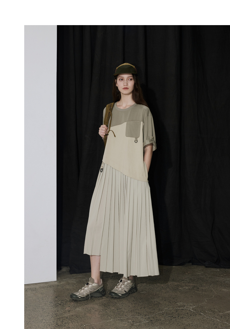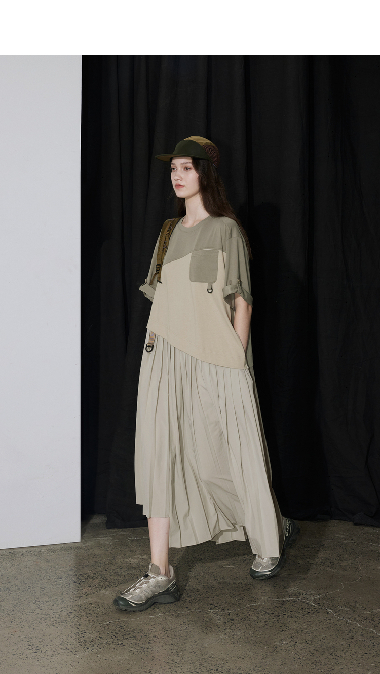 半圆/D24201358/不对称拼接压褶针织连衣裙
