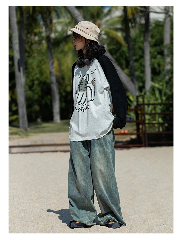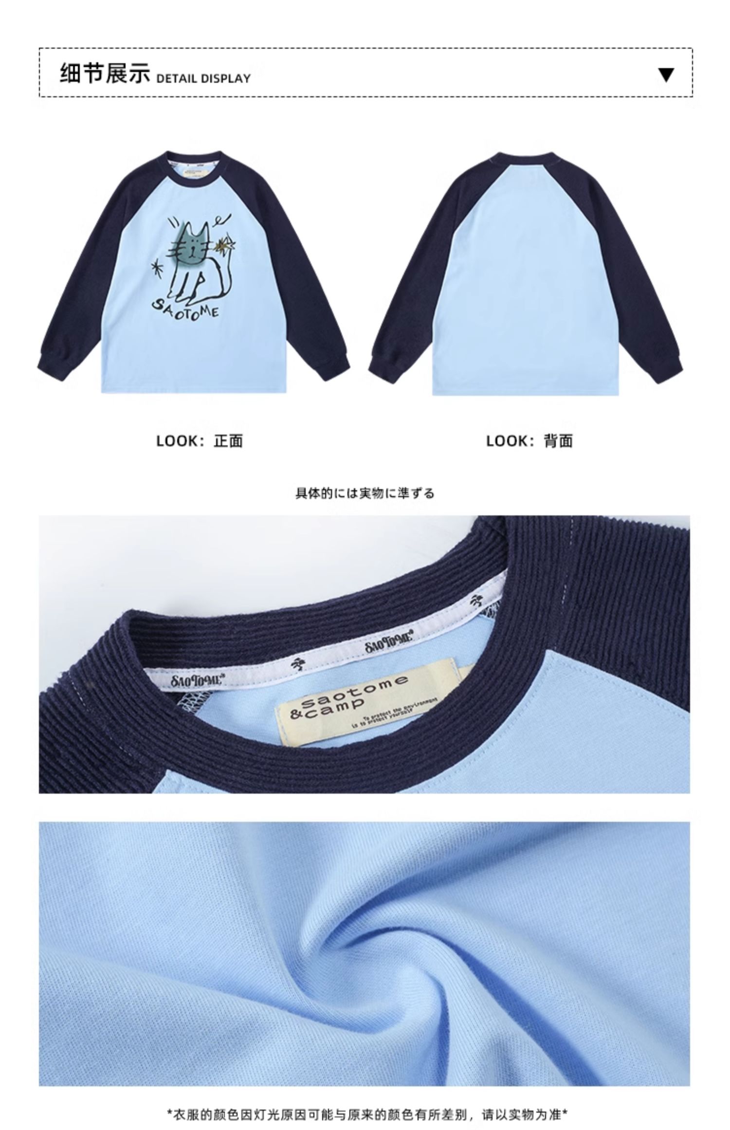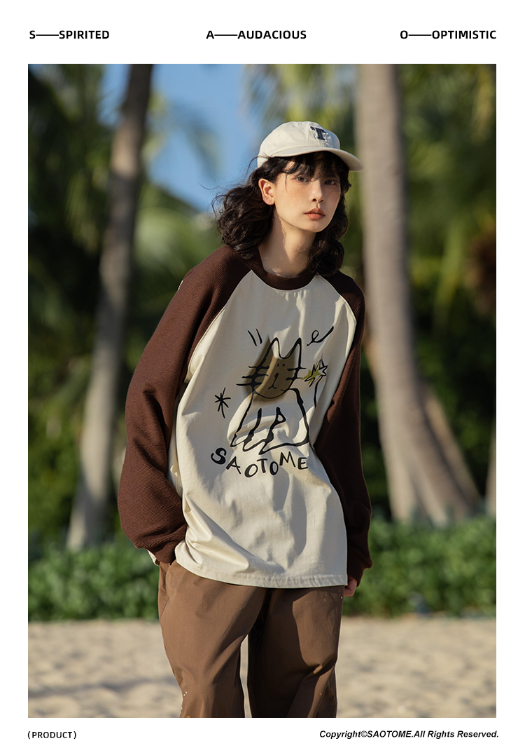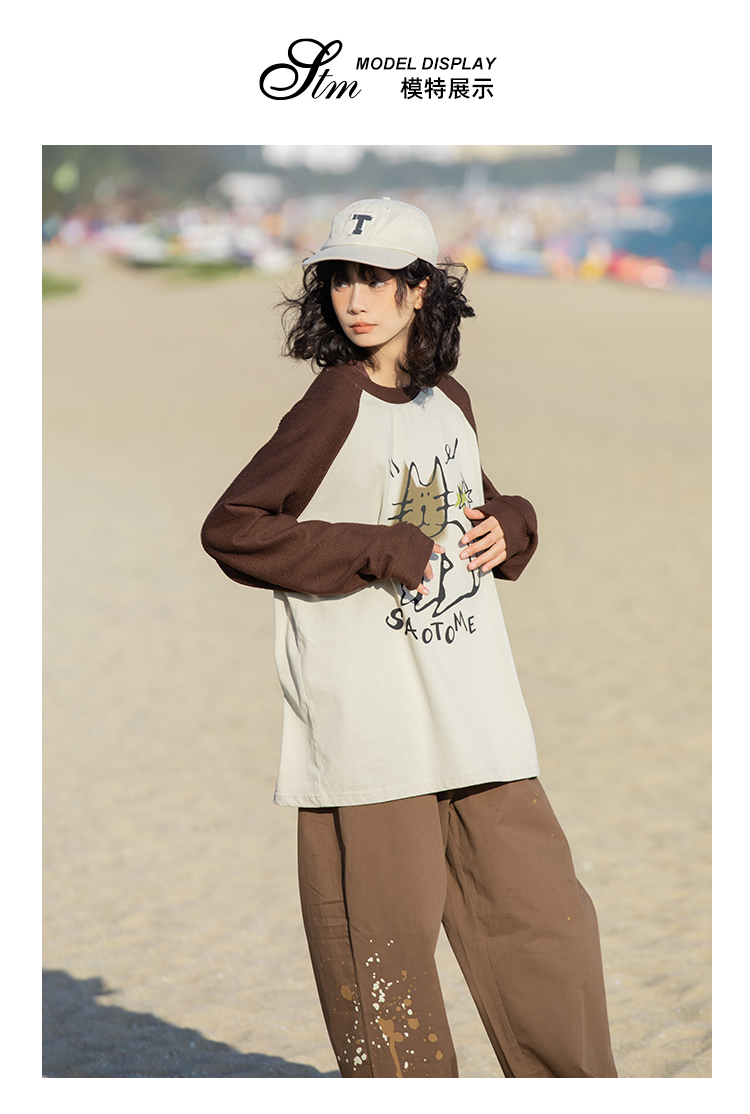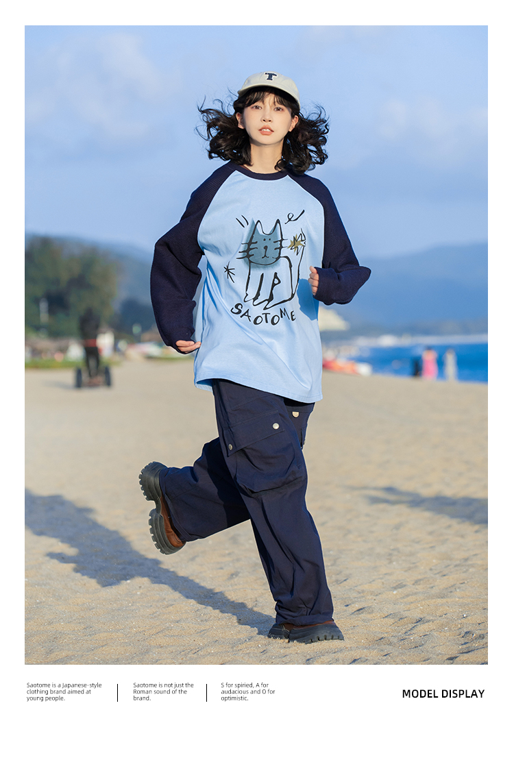 早乙女惠子saotome/STMCX240121/猫猫涂鸦插肩长袖T恤