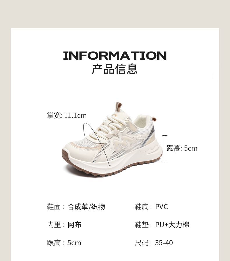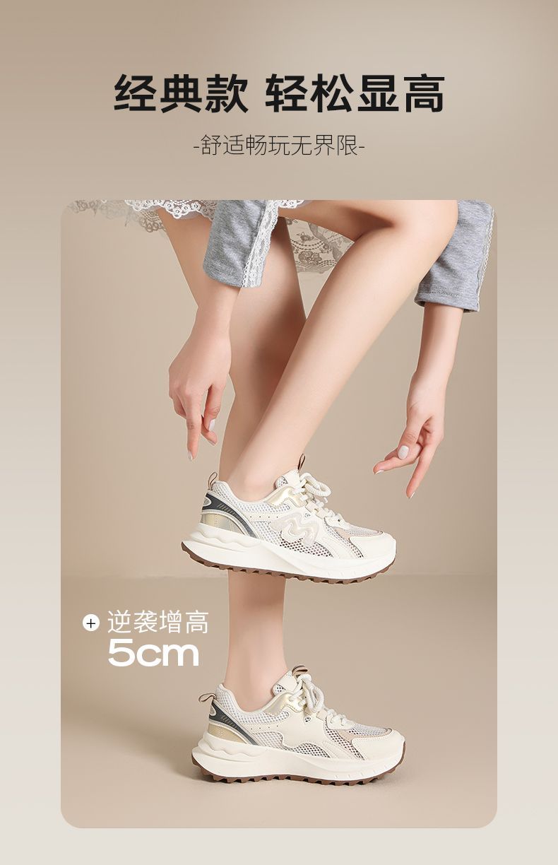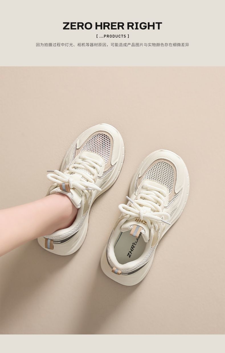 ZHR则则5CM增高透气网面老爹鞋女厚底夏季轻便运动鞋超软底阿甘鞋
