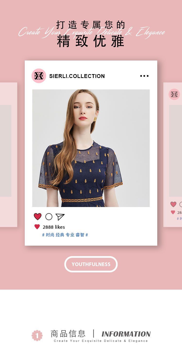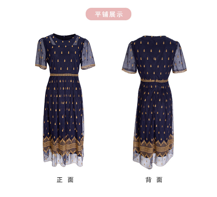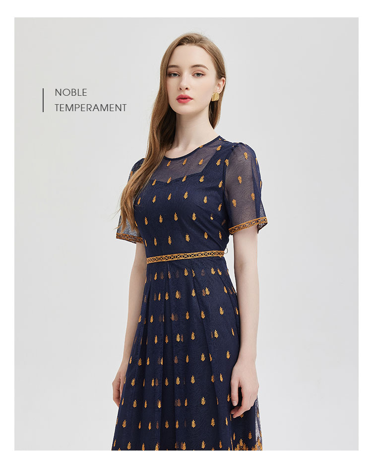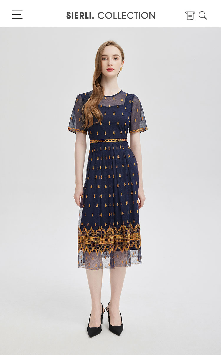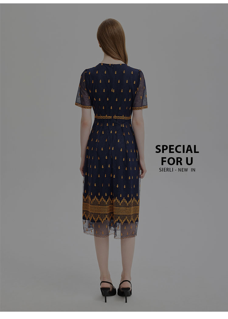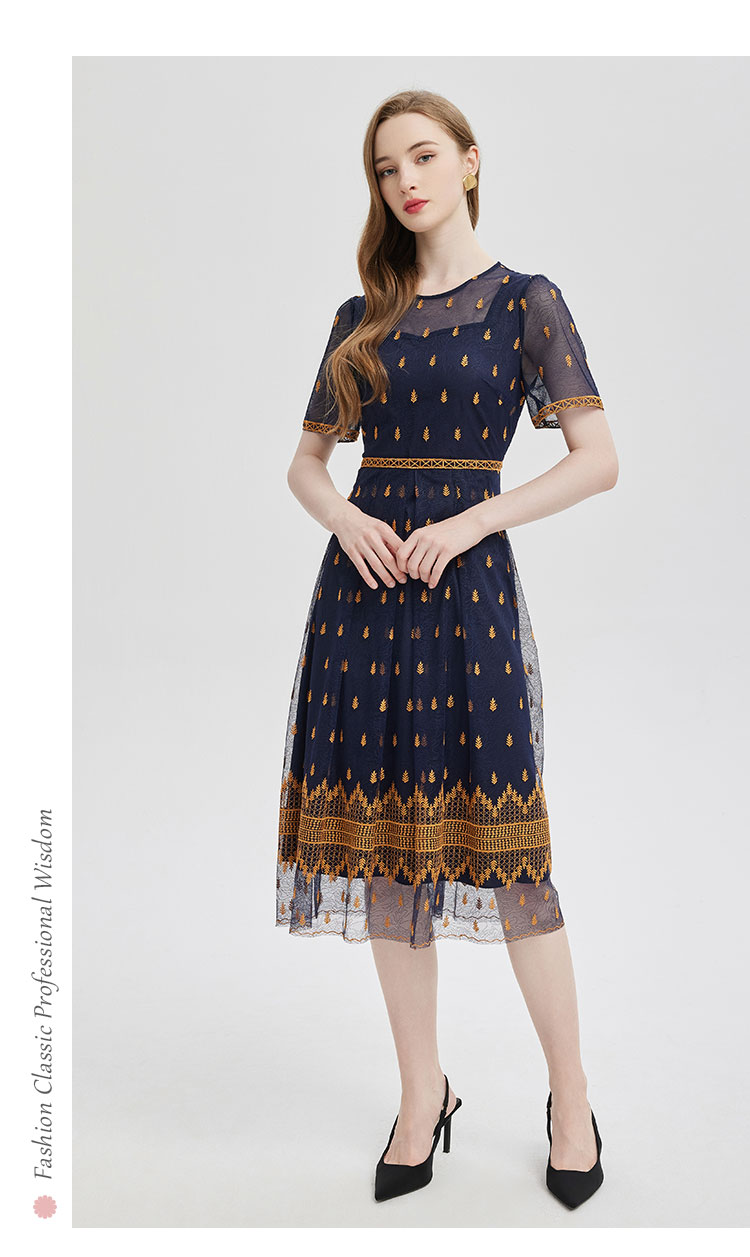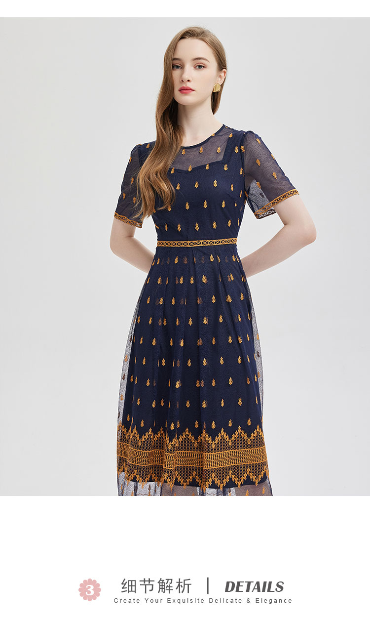PF811斯尔丽2024夏季新款收腰放摆定位刺绣高级感连衣裙