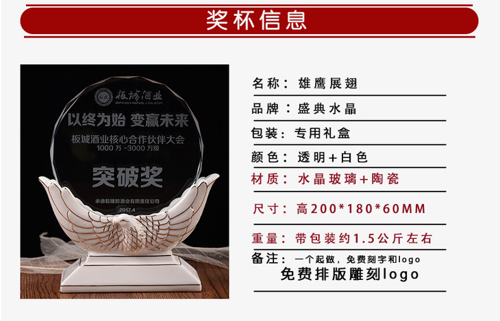 水晶奖牌 陶瓷奖杯定制 定做 奖杯 奖品 创意刻字 新款陶瓷奖杯