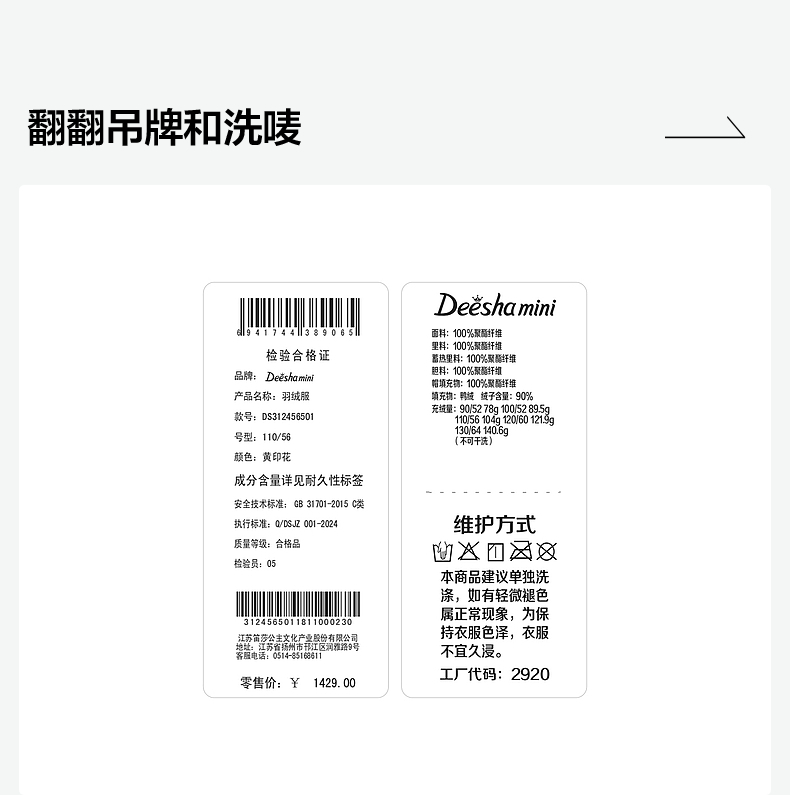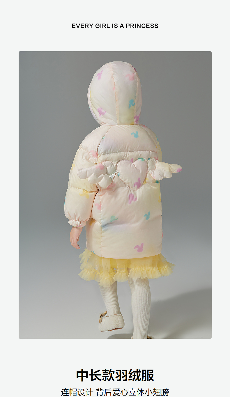 笛莎Deesha女童羽绒服2024冬季新款宝宝中长款羽绒服