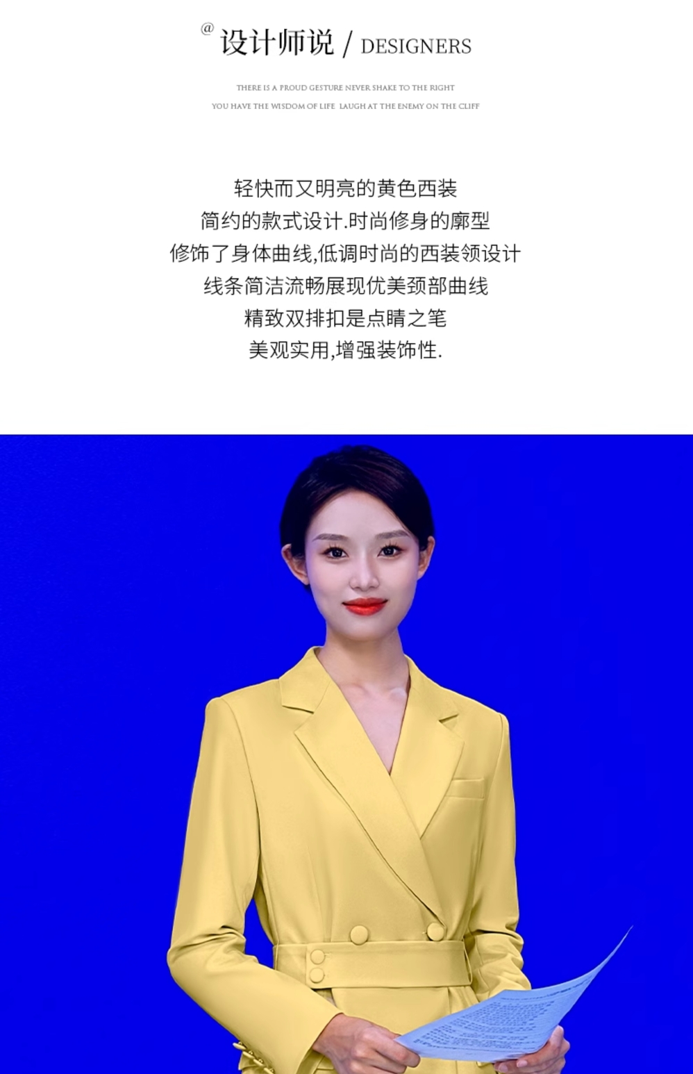 IWY/新款黄色播音主持人正装女高端录课演讲比赛服装气质西装Q13314