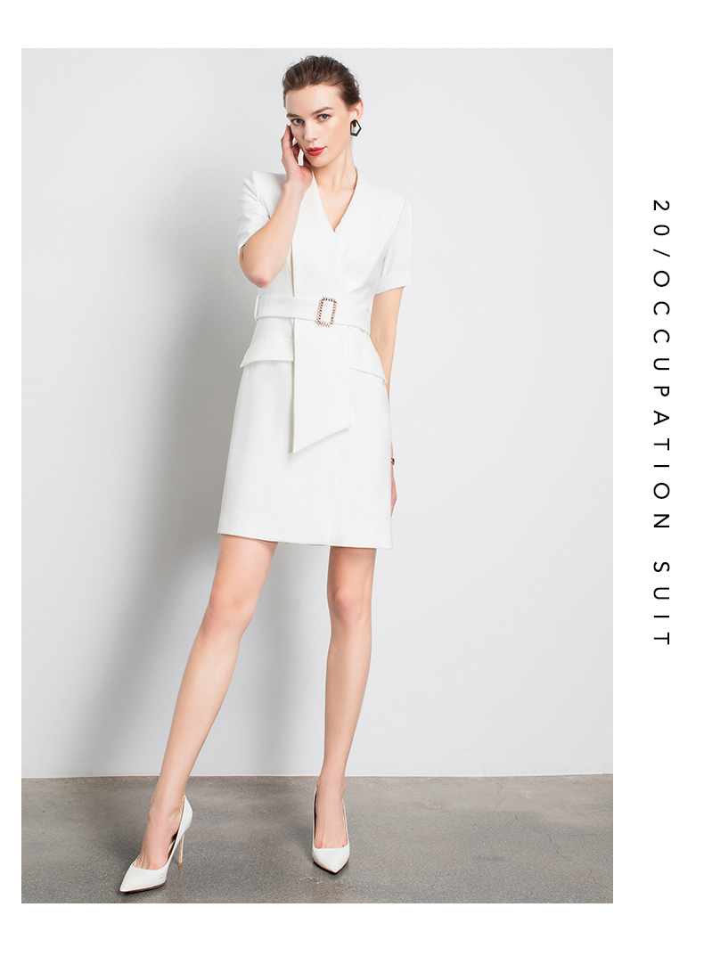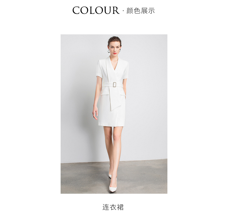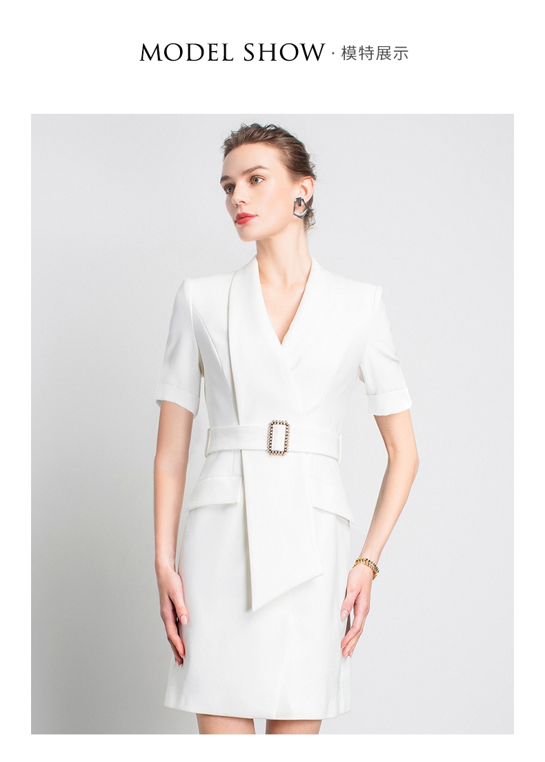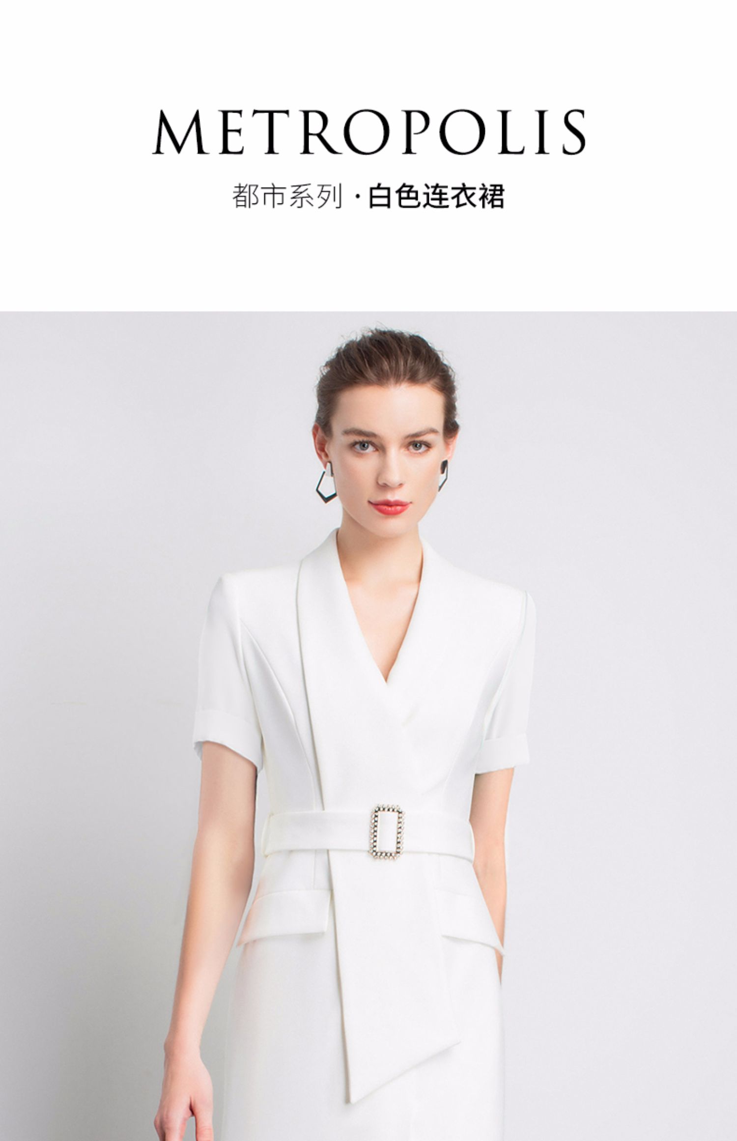 IWY/白色短袖职业连衣裙气质设计感经理工作服时尚轻熟管理层显白Q11212
