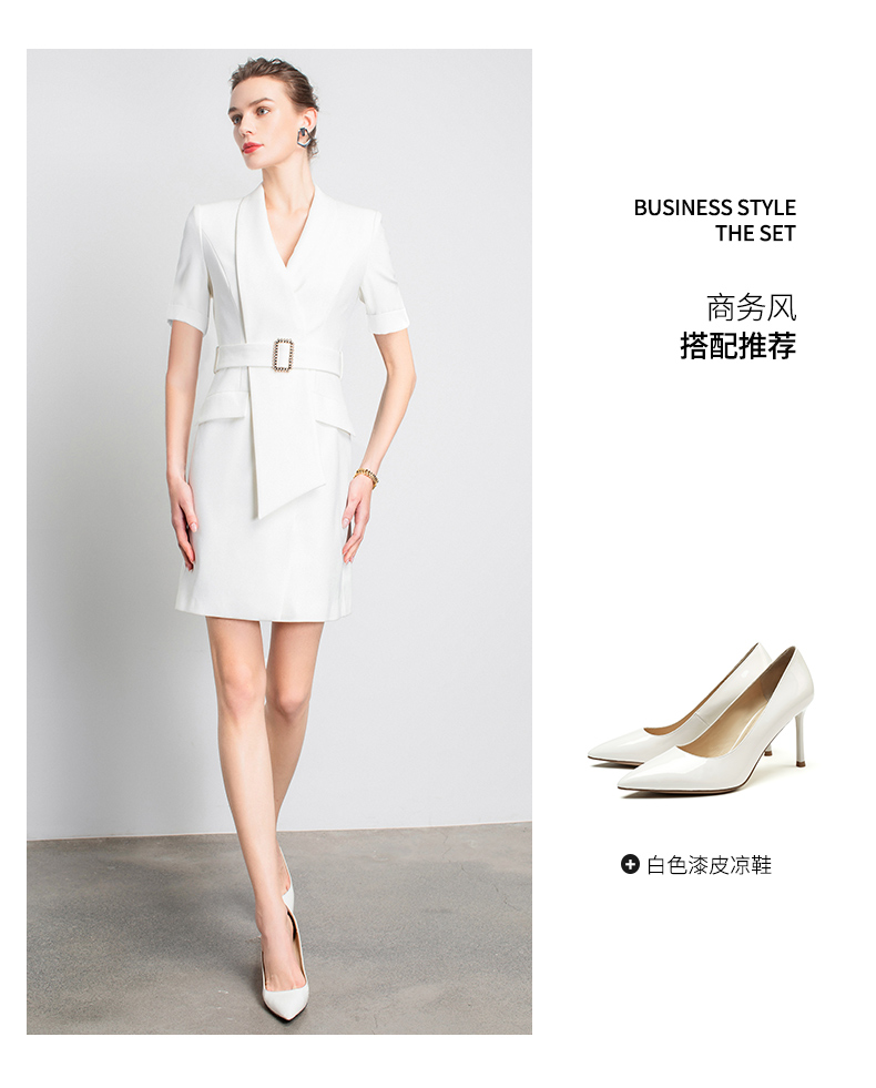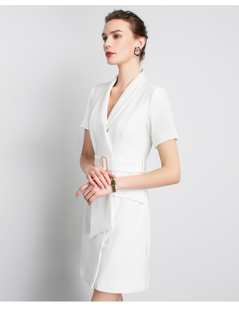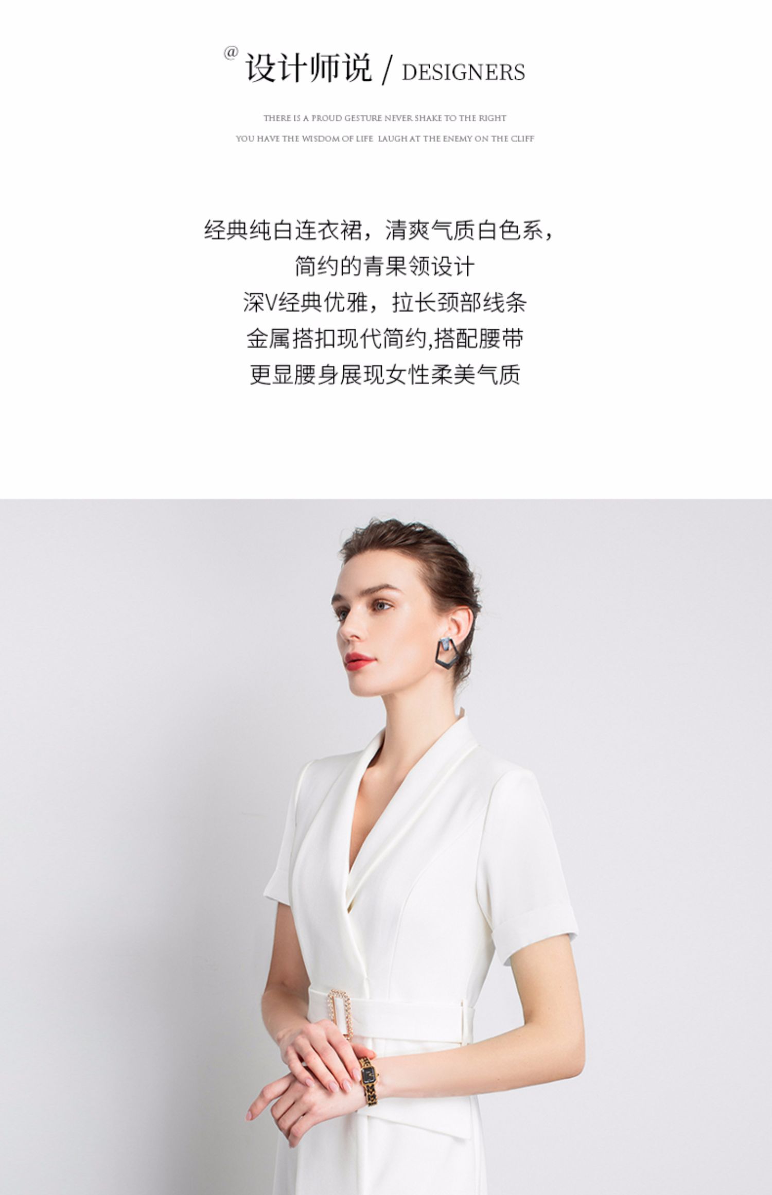 IWY/白色短袖职业连衣裙气质设计感经理工作服时尚轻熟管理层显白Q11212