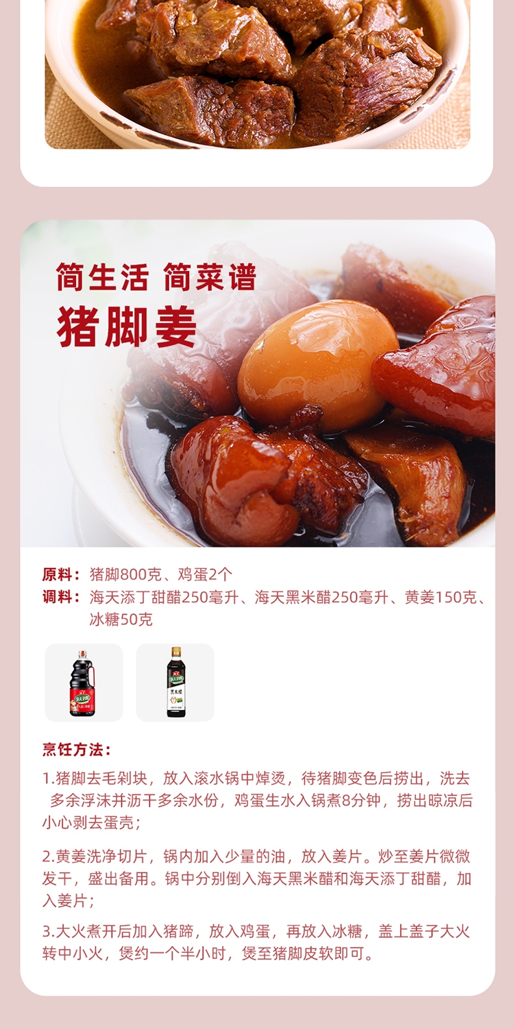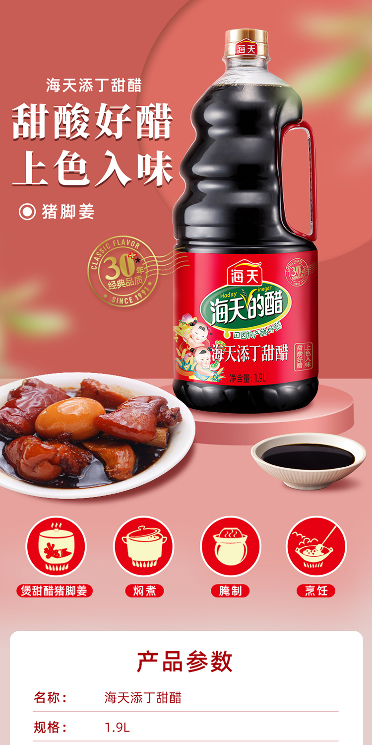 海天添丁甜醋1.9L黑米醋搭配猪脚姜美食