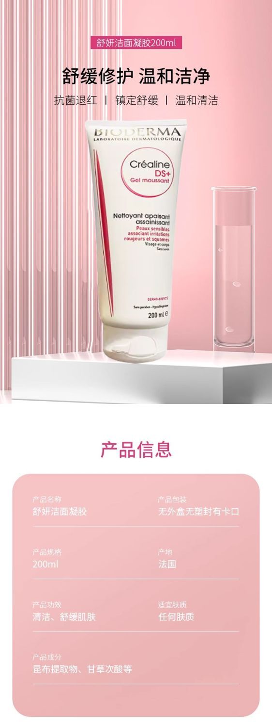 贝德玛新包装!舒妍凝胶洗面奶200ml镇定抗敏
