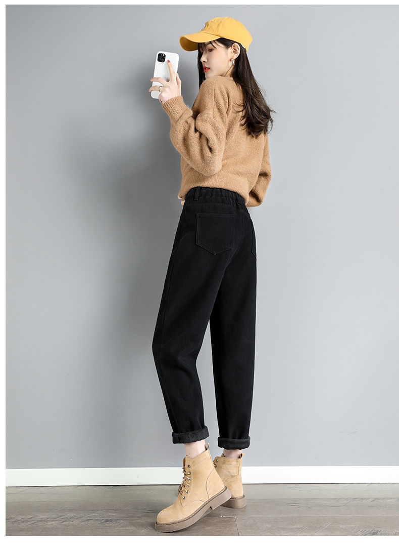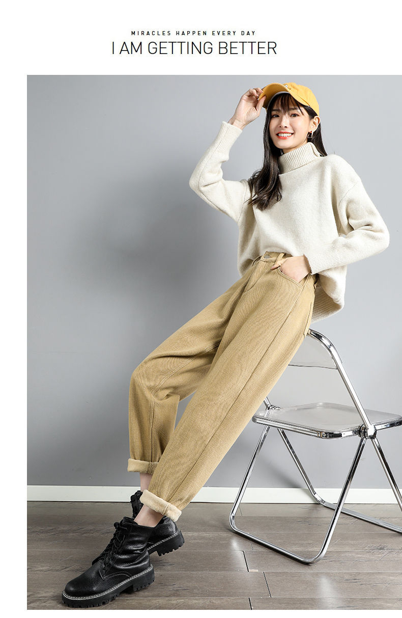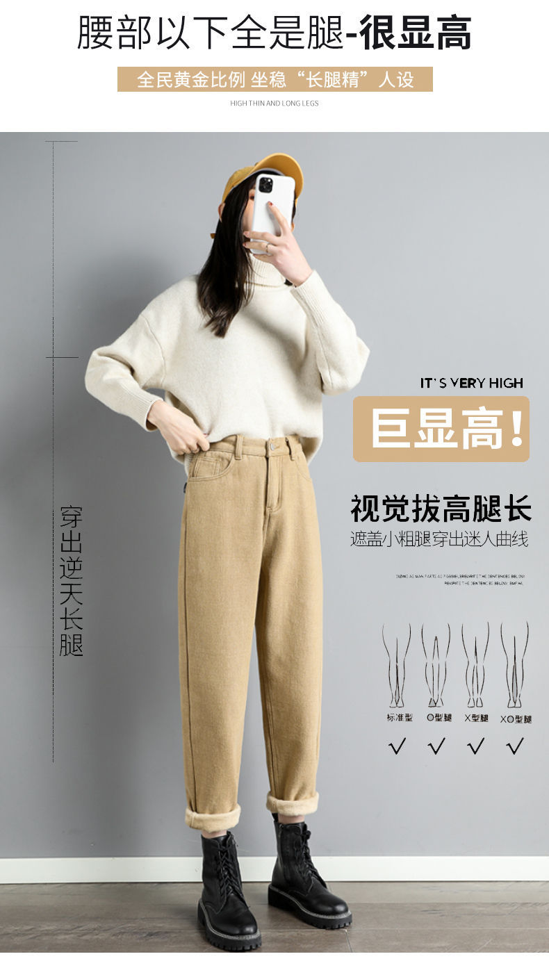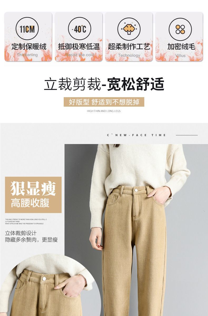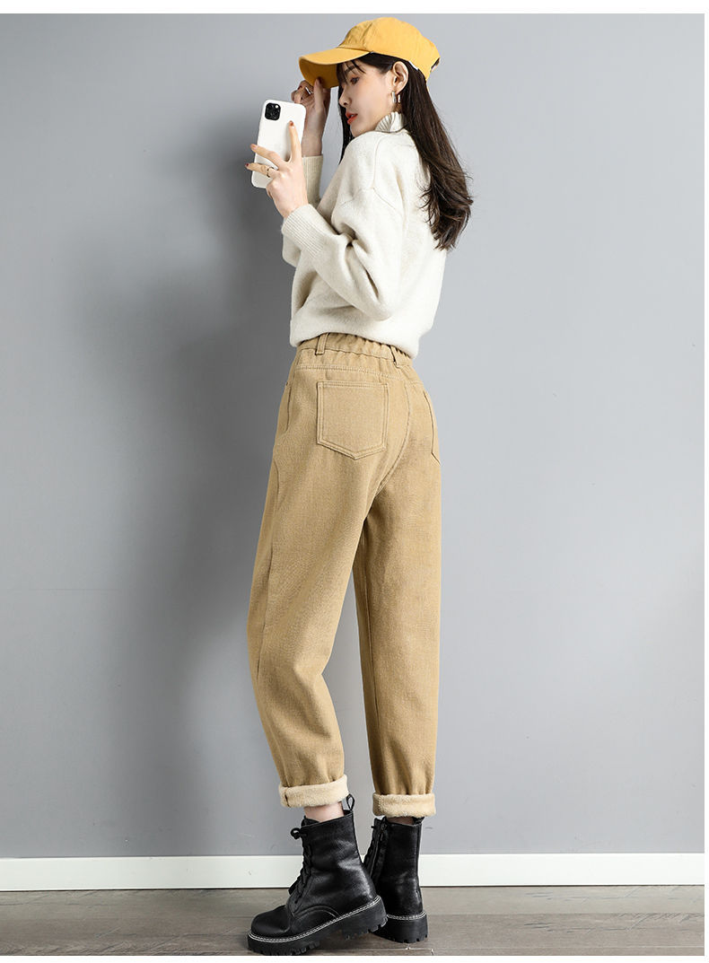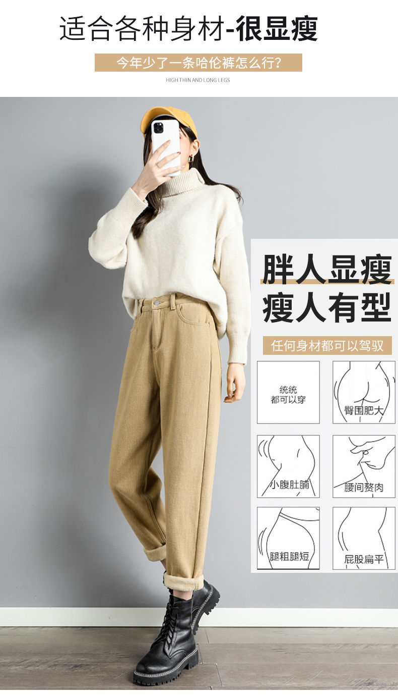 白色加绒牛仔裤,高腰宽松羊羔绒哈伦老爹裤MC-哈伦裤
