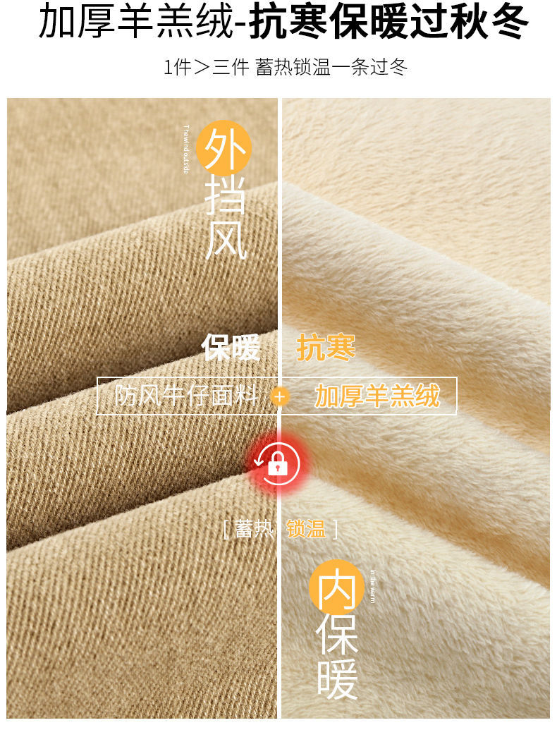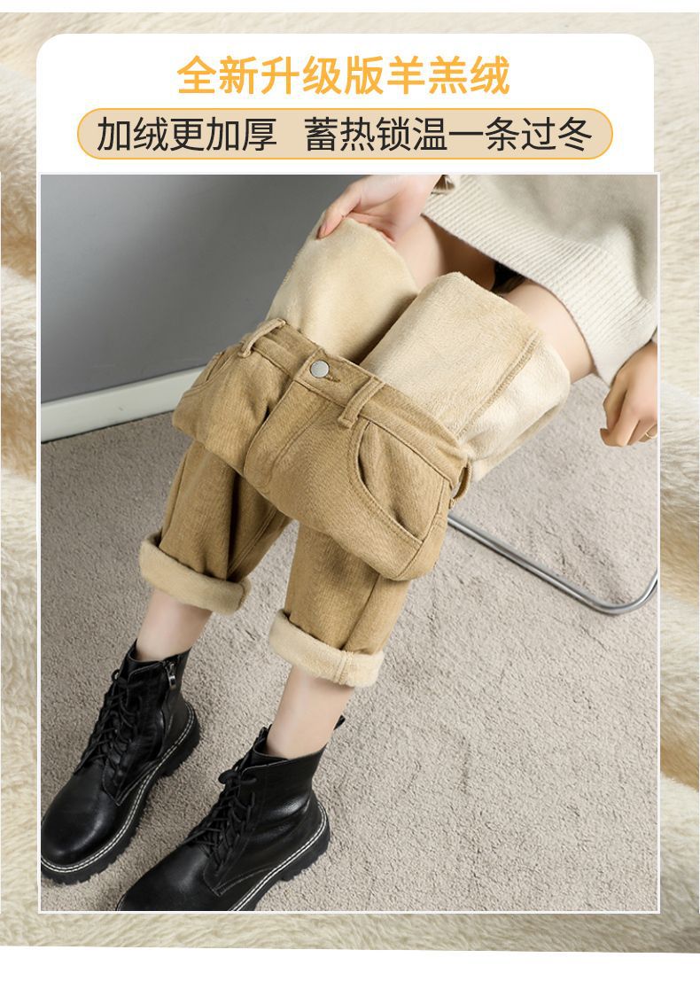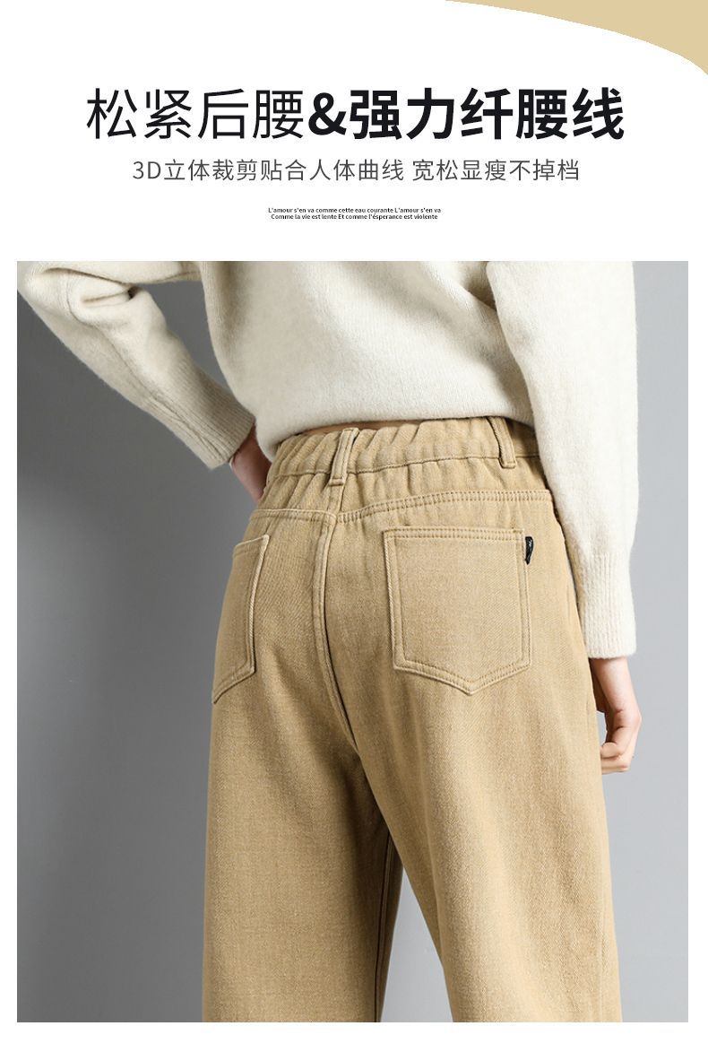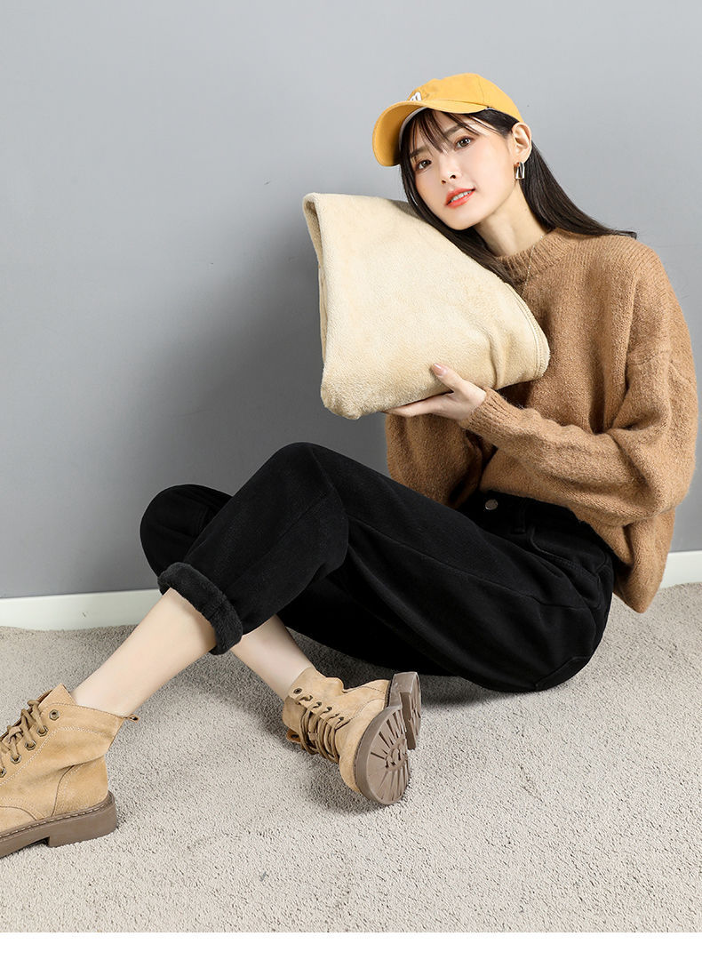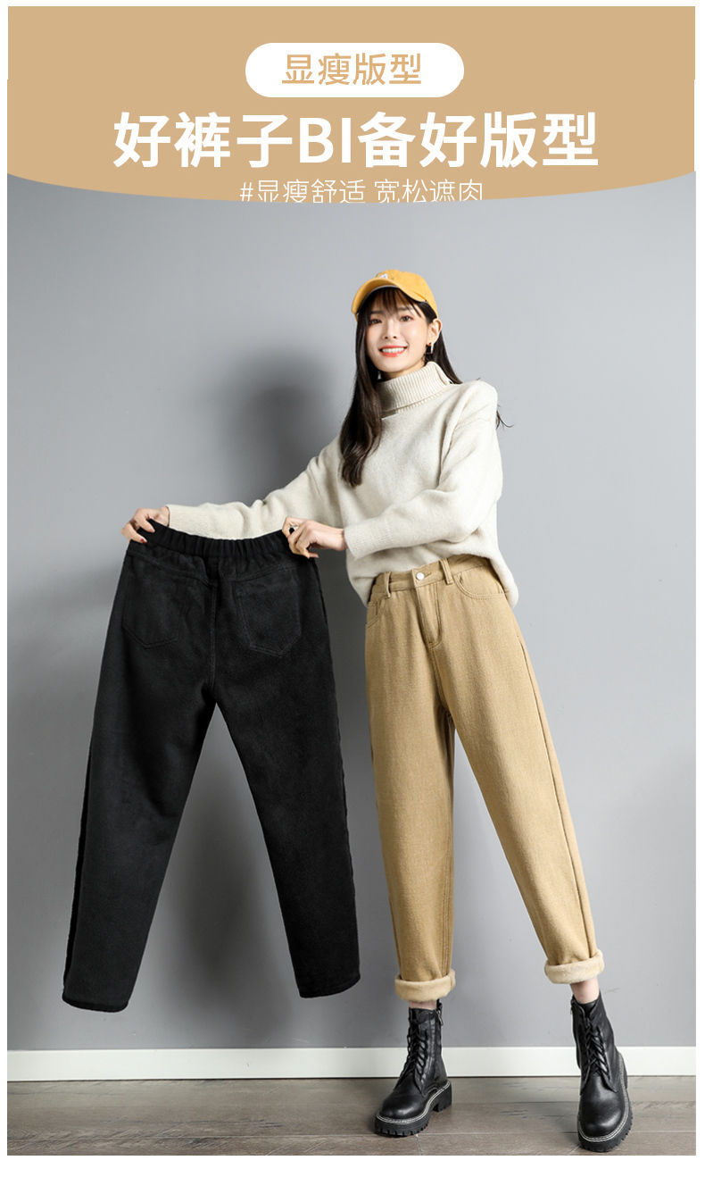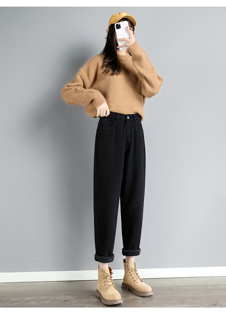 白色加绒牛仔裤,高腰宽松羊羔绒哈伦老爹裤MC-哈伦裤