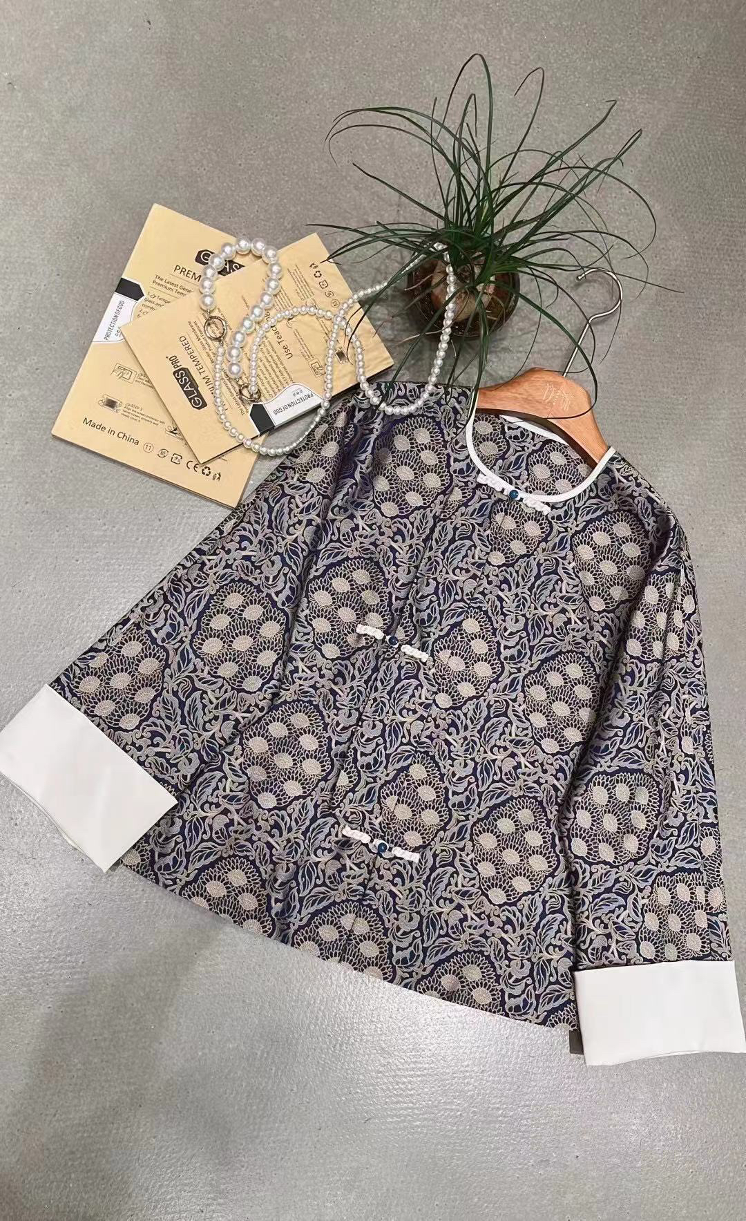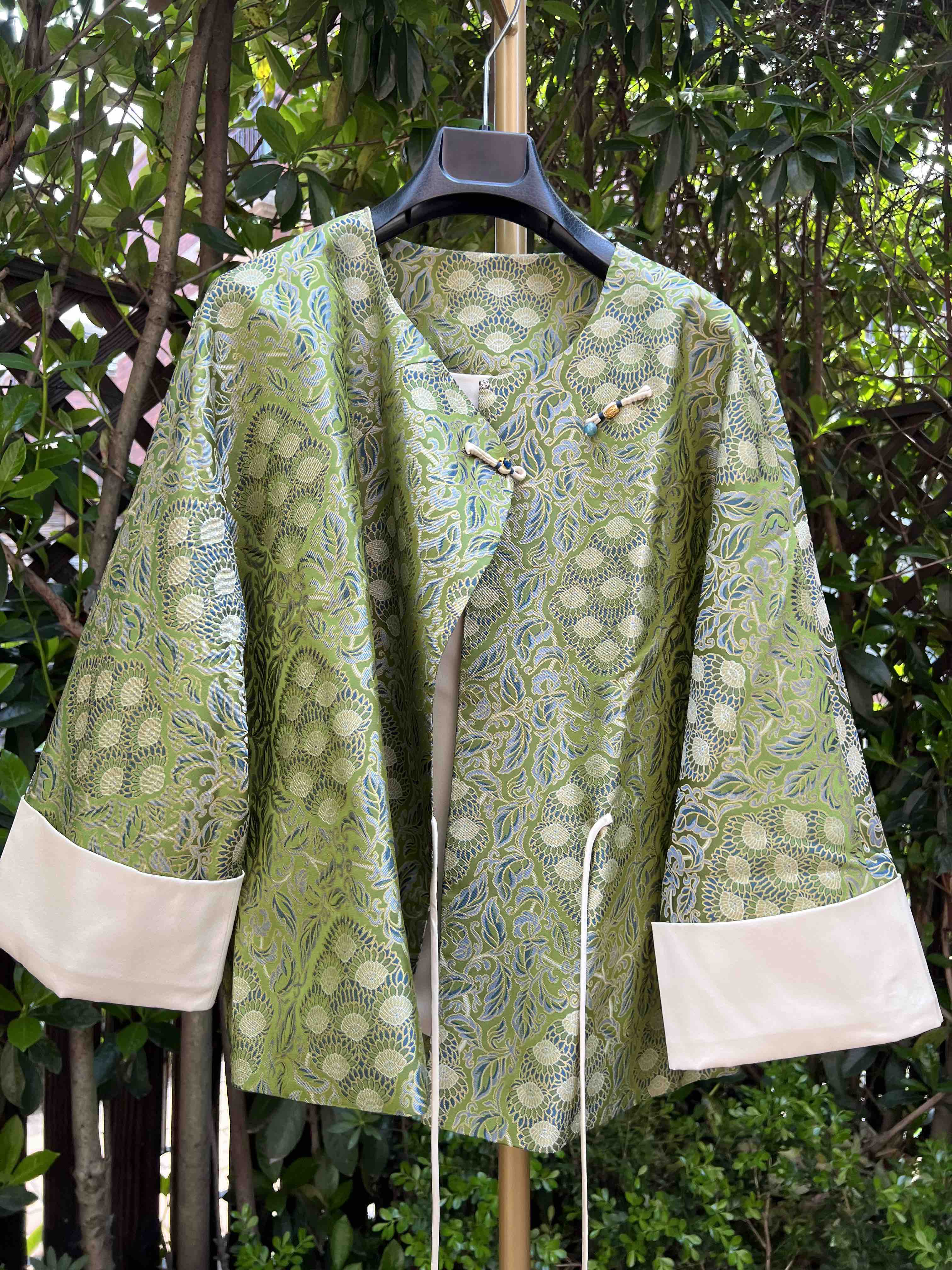 106-3高端新中式 九子菩提 百分百宋锦盘口外套上衣 温润亲肤有质感