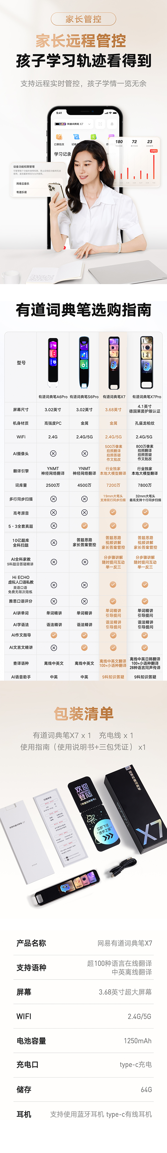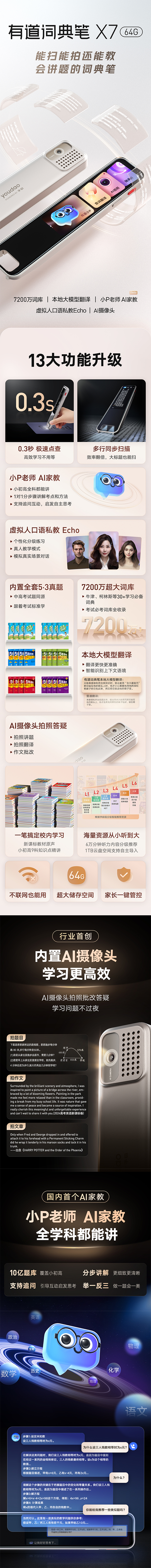 【官方正品】有道词典笔 X7 内置AI摄像头 7200万词库 虚拟人口语私教Echo AI大模型翻译