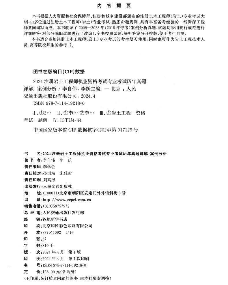 书名:2024注册岩土工程师执业资格考试专业考试历年真题详解:案例分析