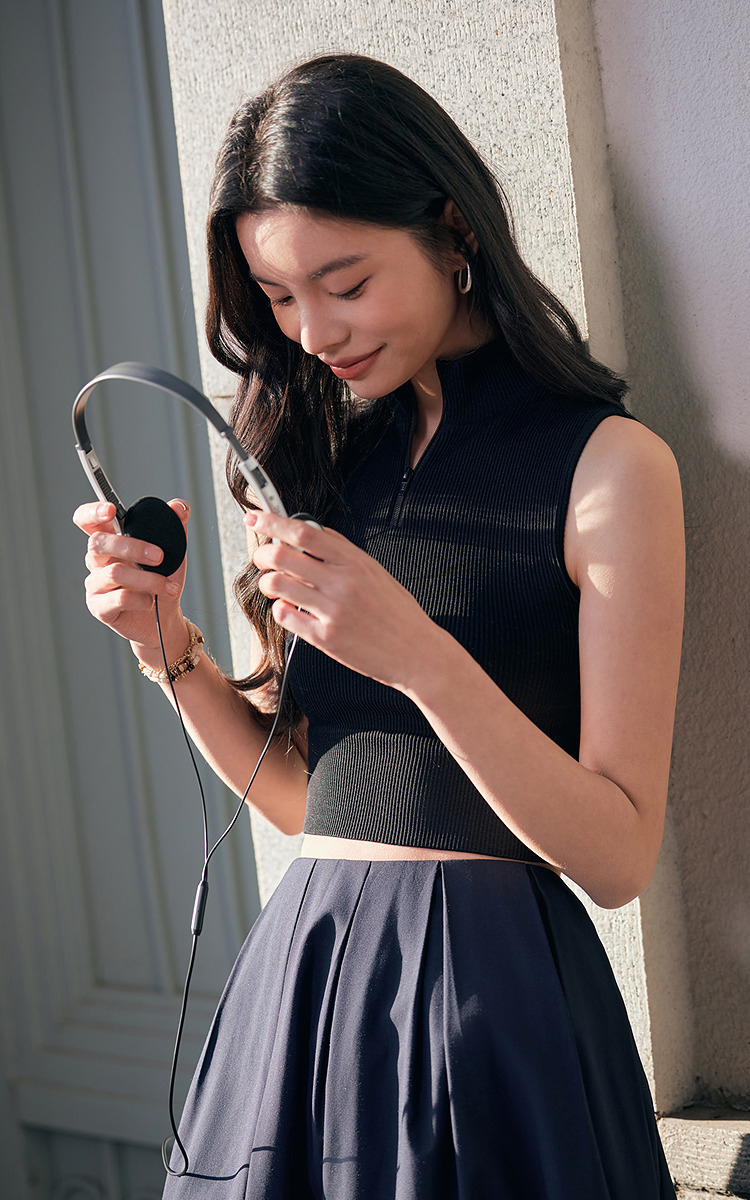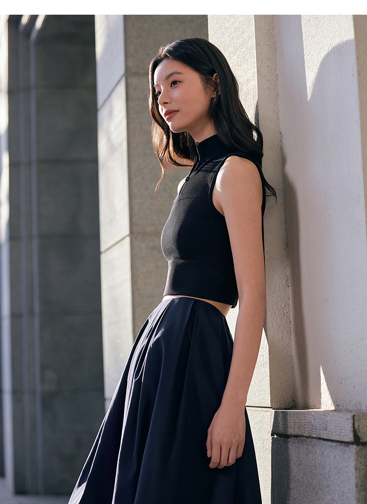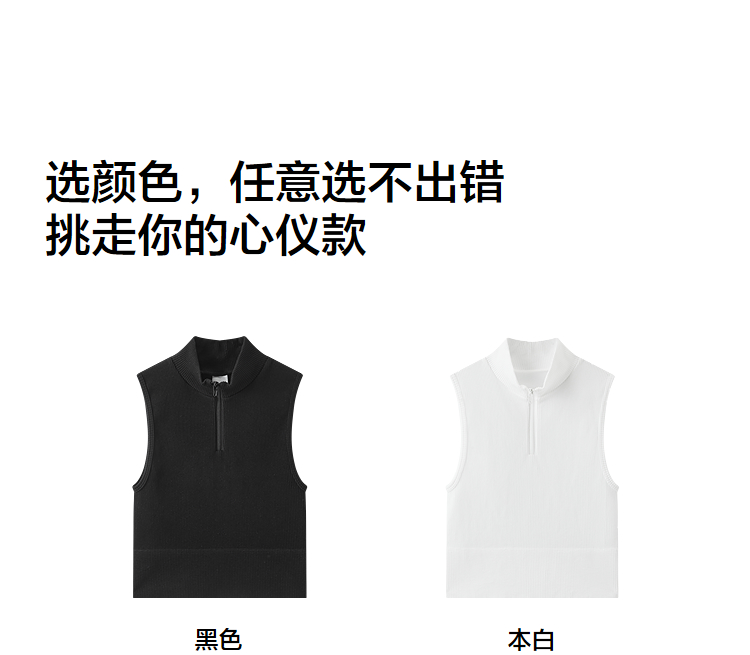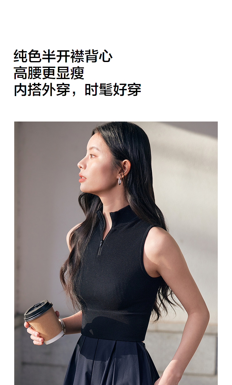 森马背心女高腰修身内搭纯色半开襟高领无袖上衣春季打底衫中长款