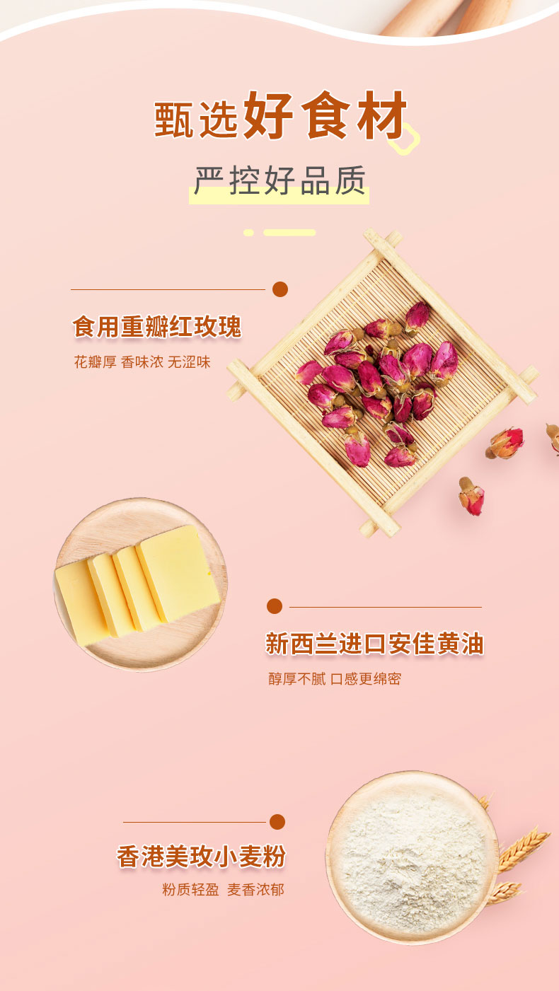 雅觅 海盐玫瑰曲奇280g 18枚手工烘焙办公室休闲零食点心饼干