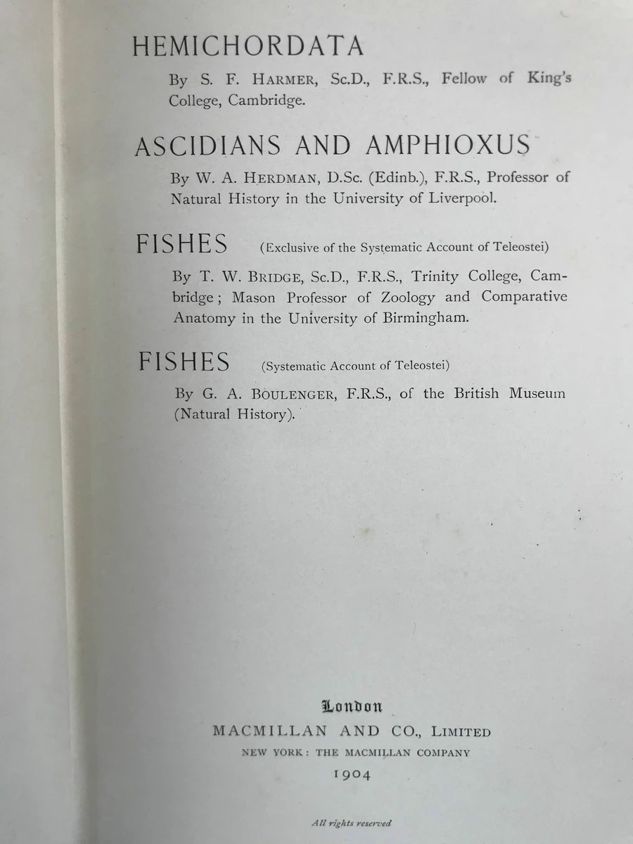 1904年 半索动物/海鞘与蛞蝓动物/鱼类图鉴 440幅插图 漆布精装大32开