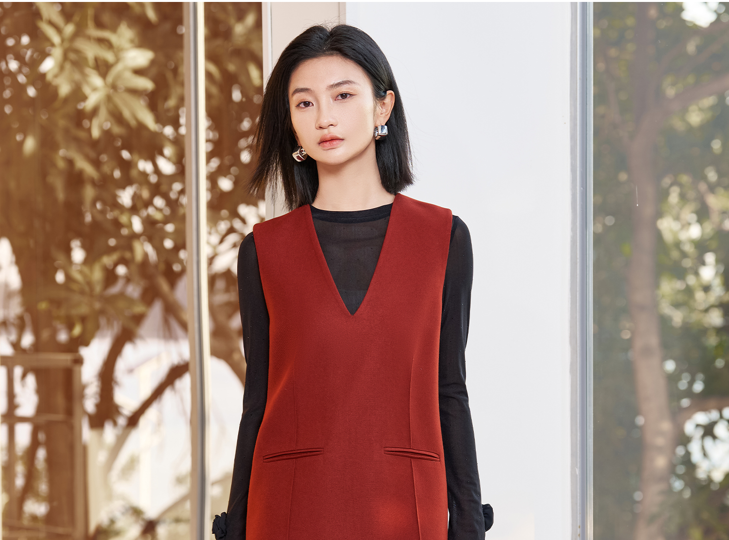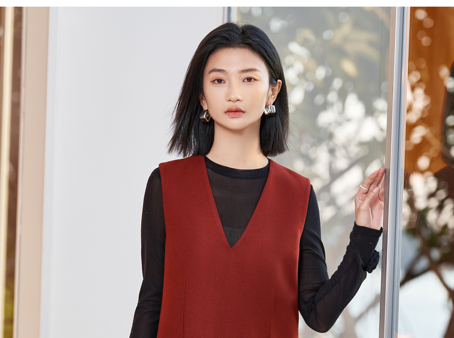 剩S/M/L/XL 米思阳2026春季新款韩版羊毛混纺连衣裙气质减龄无袖V领背心裙女