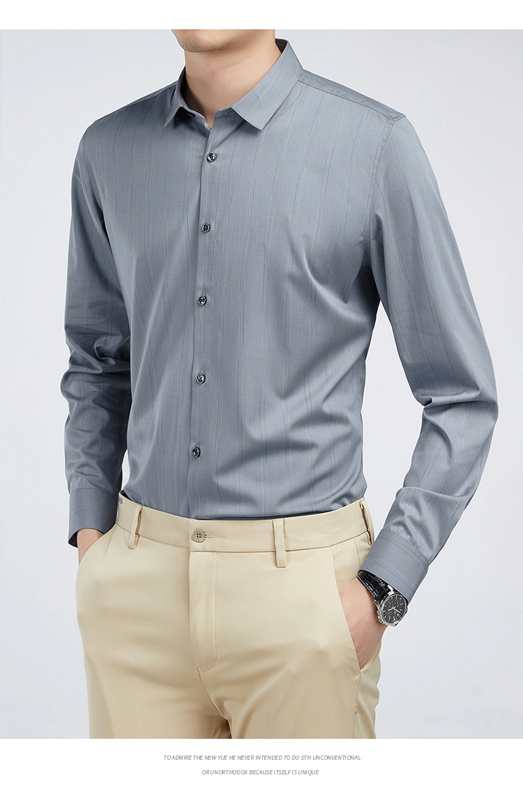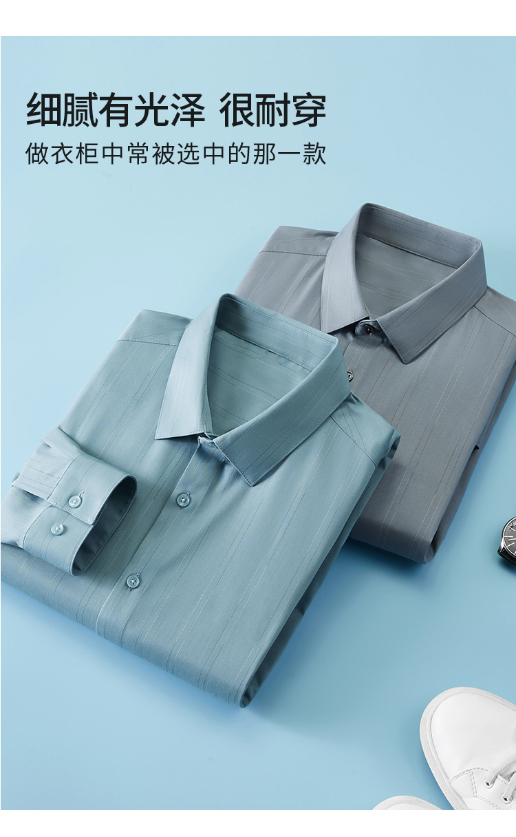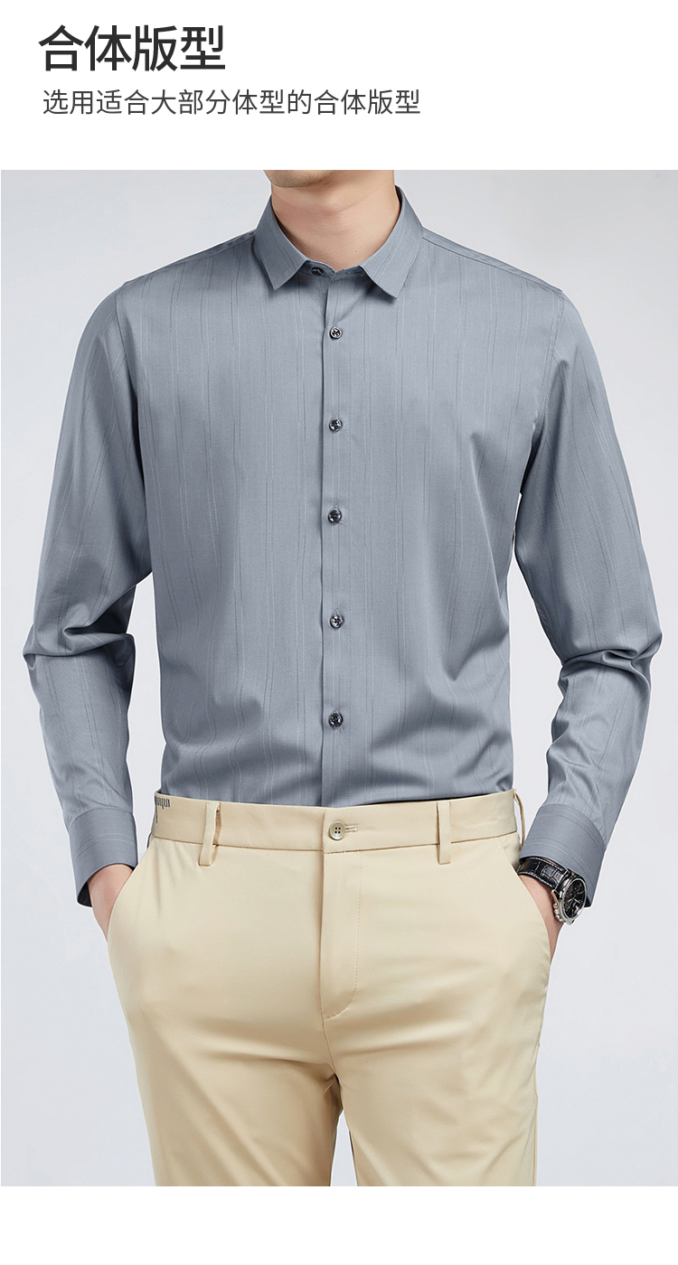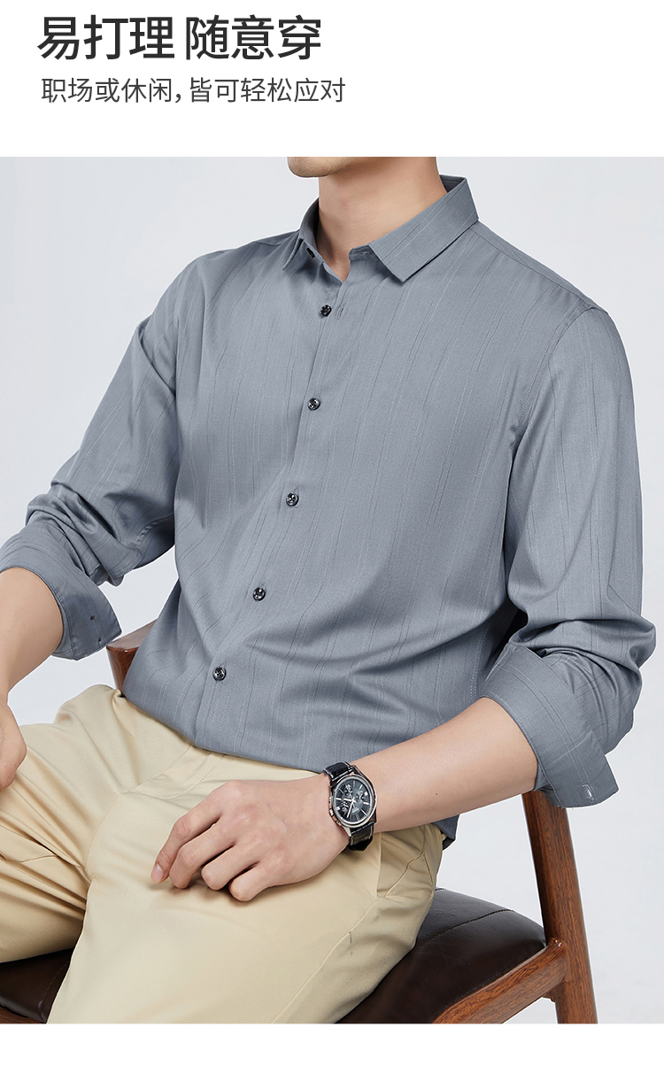 【垂顺有型】逸阳易打理男士衬衫长袖竖条纹秋季新款商务休闲衬衣1557