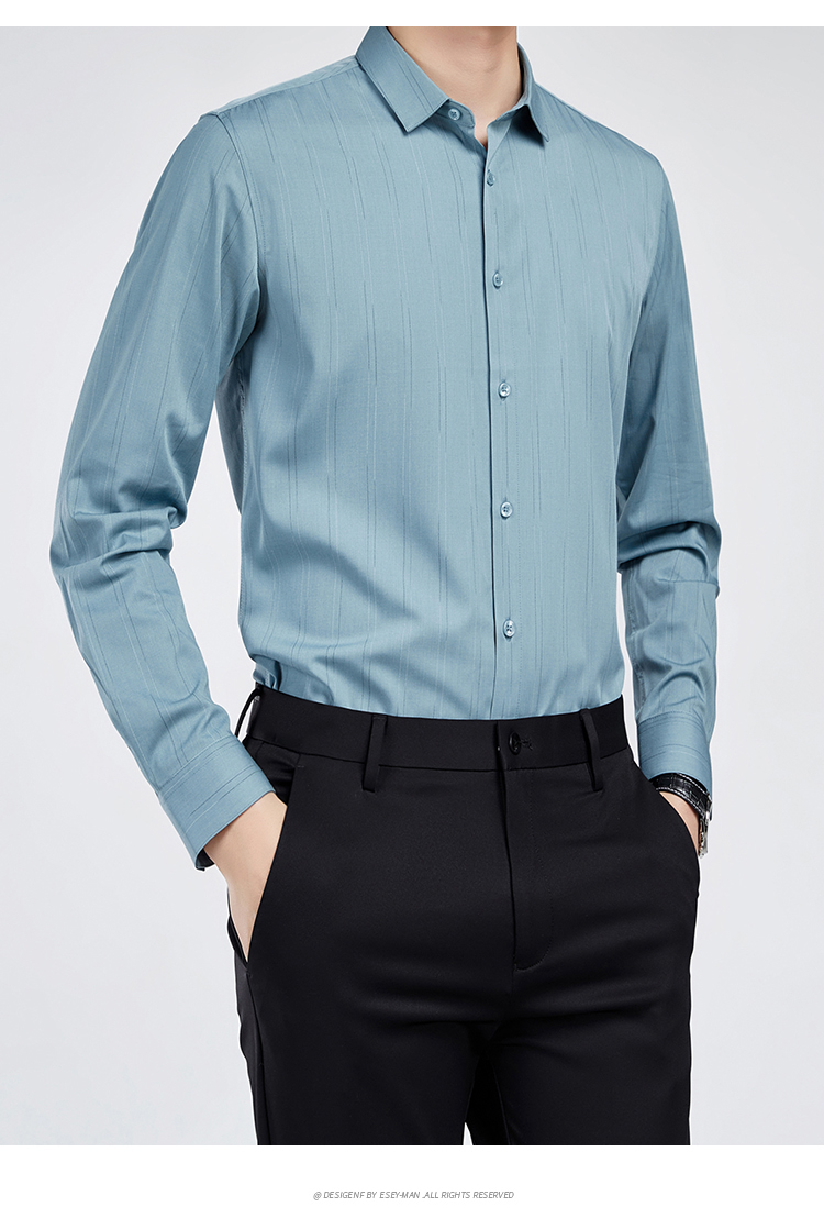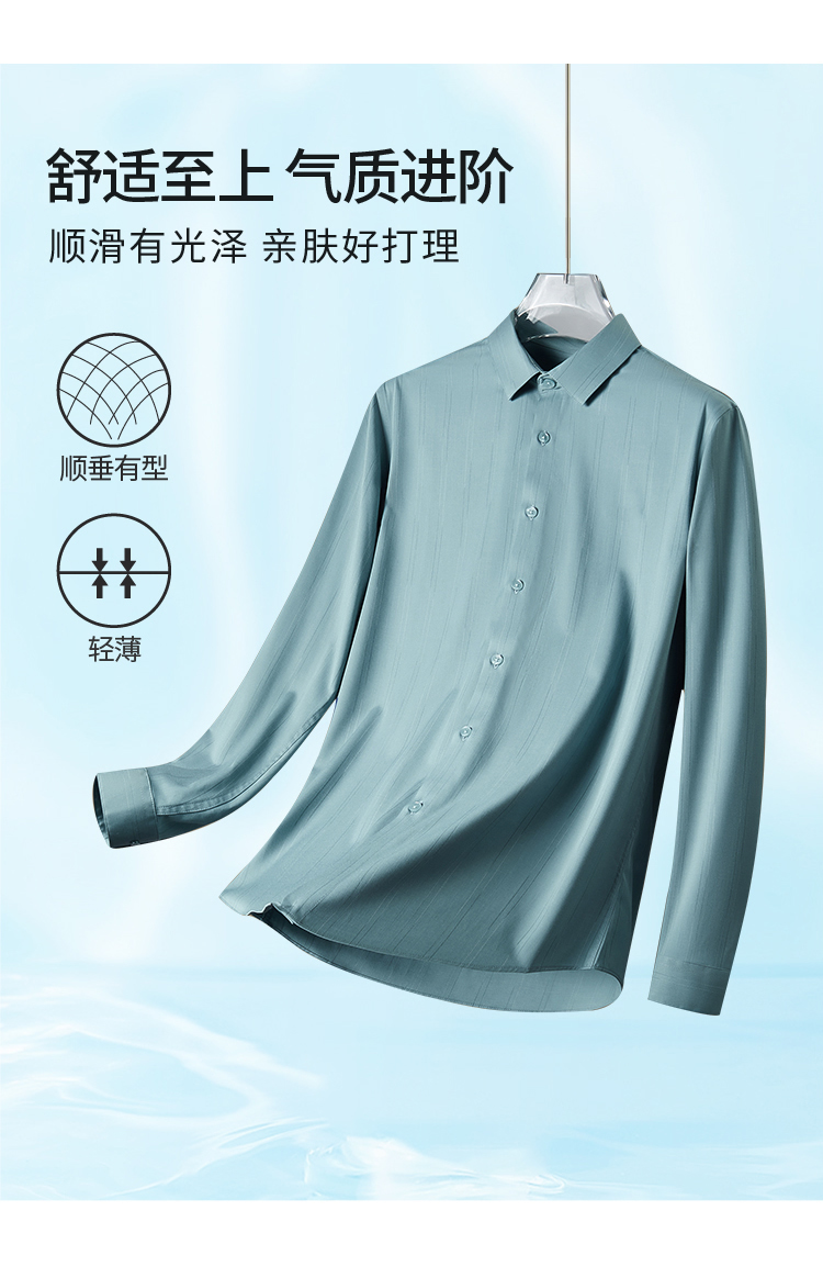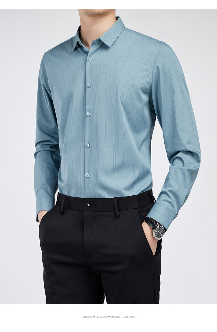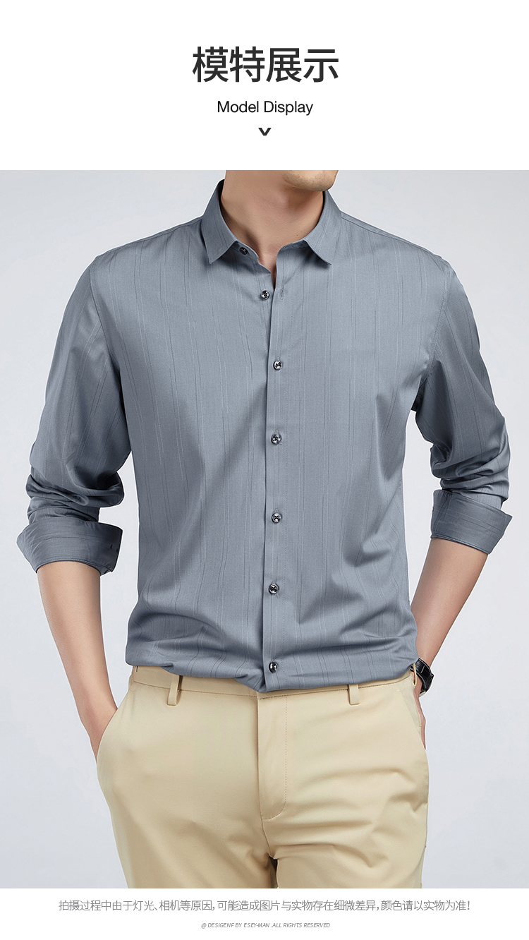 【垂顺有型】逸阳易打理男士衬衫长袖竖条纹秋季新款商务休闲衬衣1557