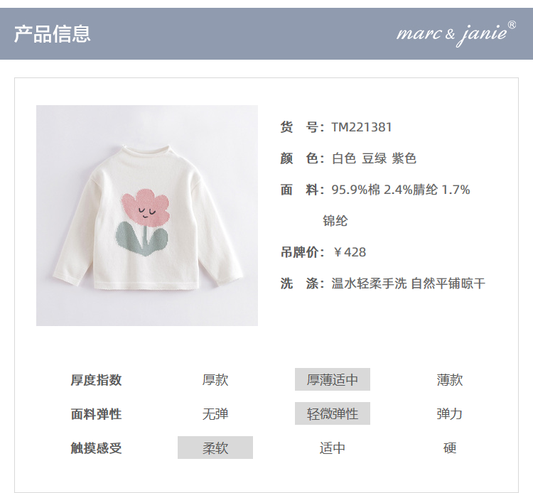 马克珍妮秋冬装 女童提花套头毛衣 儿童针织衫221381