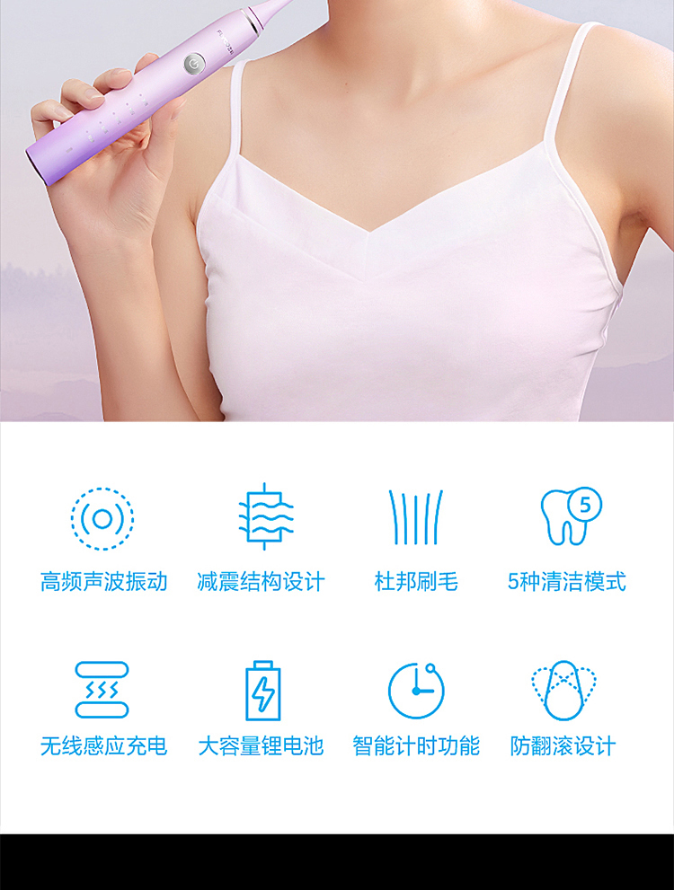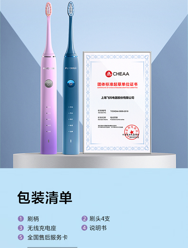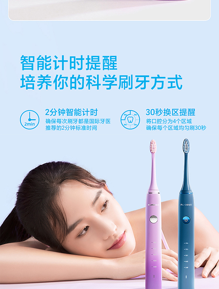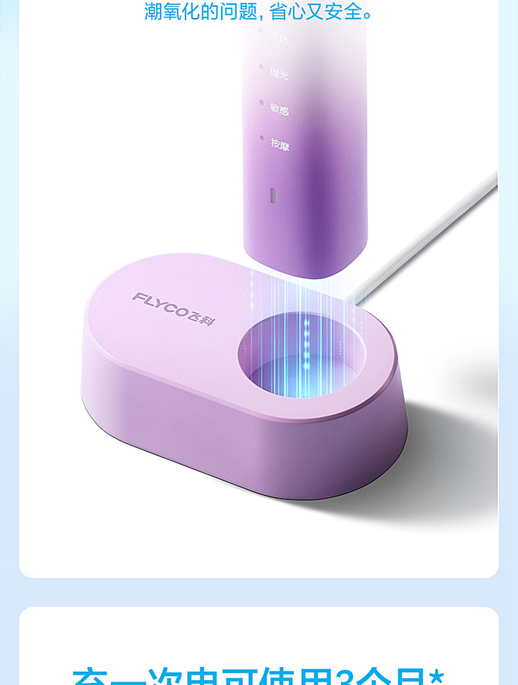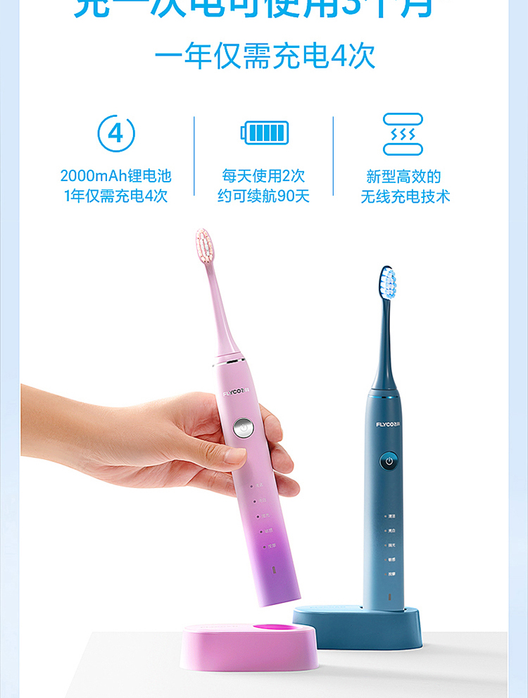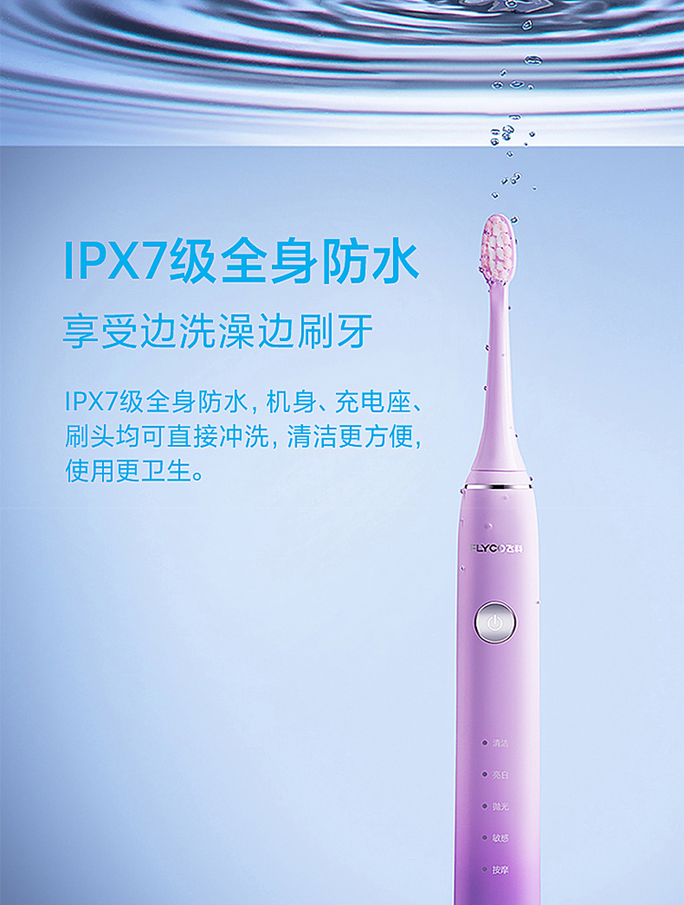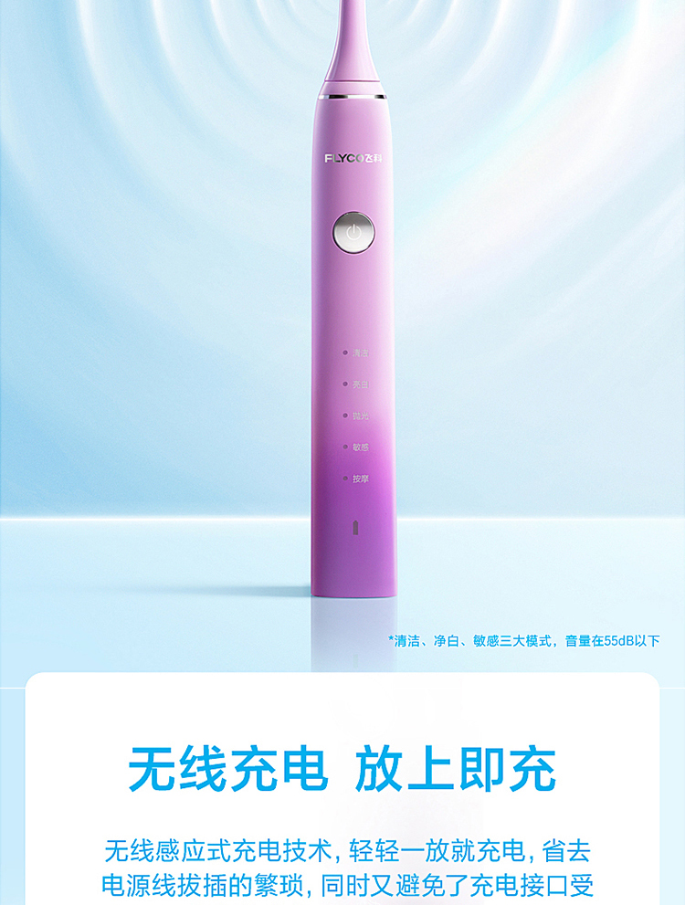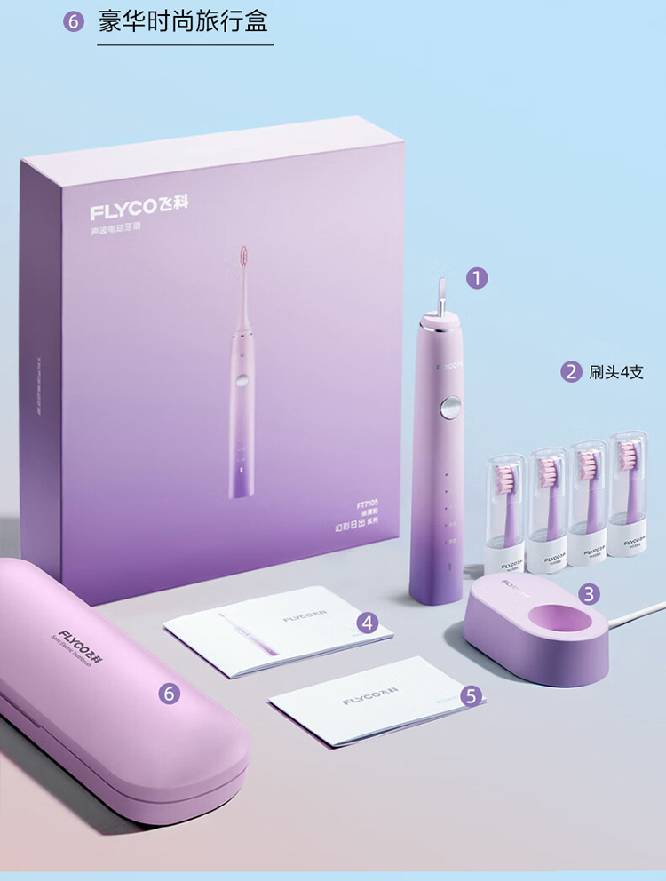飞科(FLYCO)电动牙刷 男女款全自动声波震动软毛牙刷FT7105浪漫粉【分仓直发,72小时发货,周末节假日不发货】