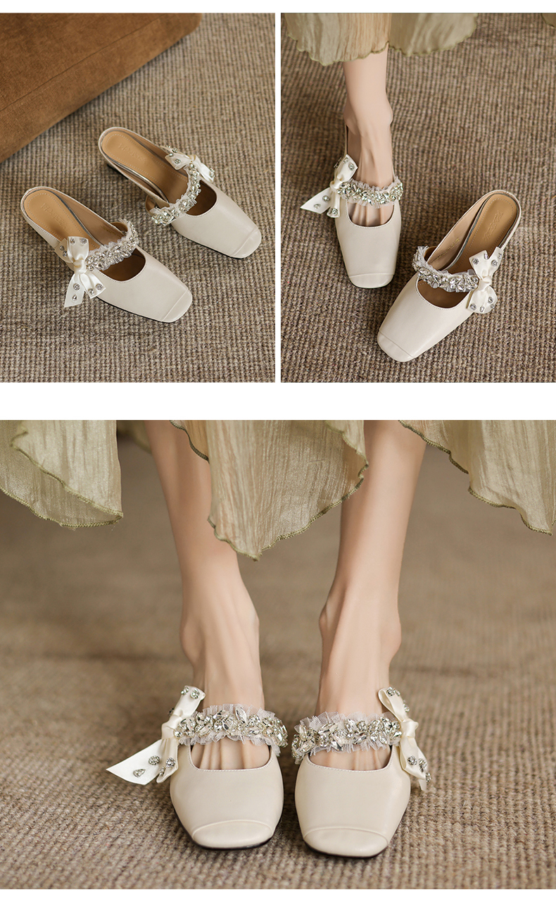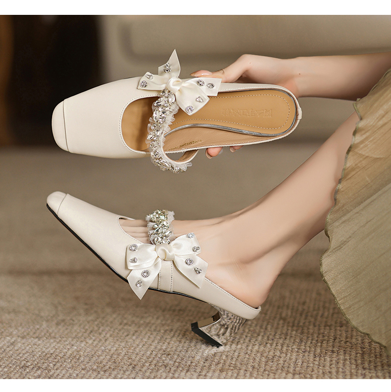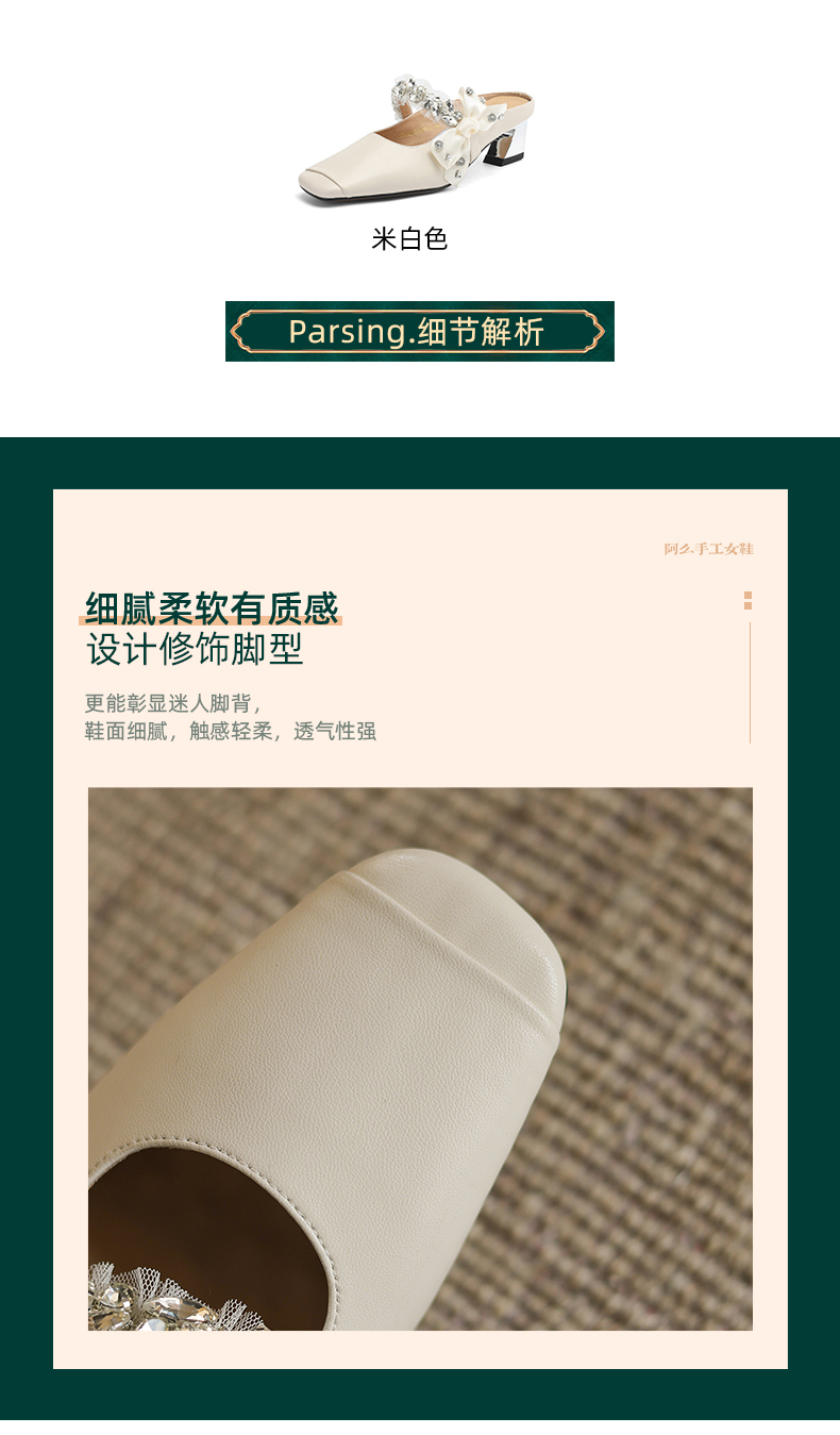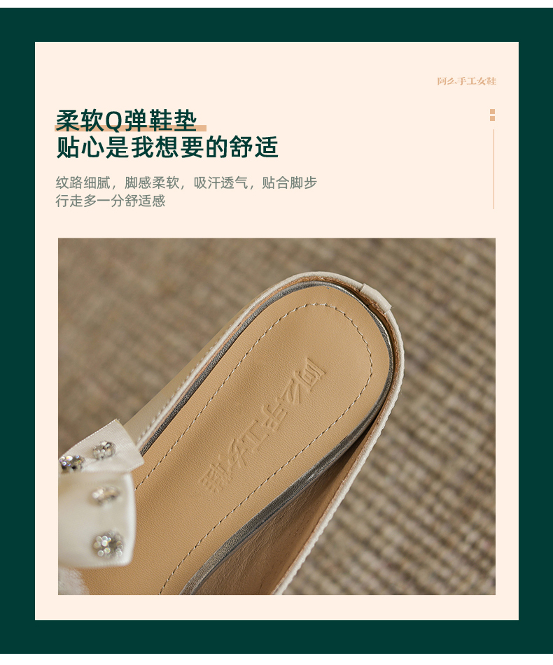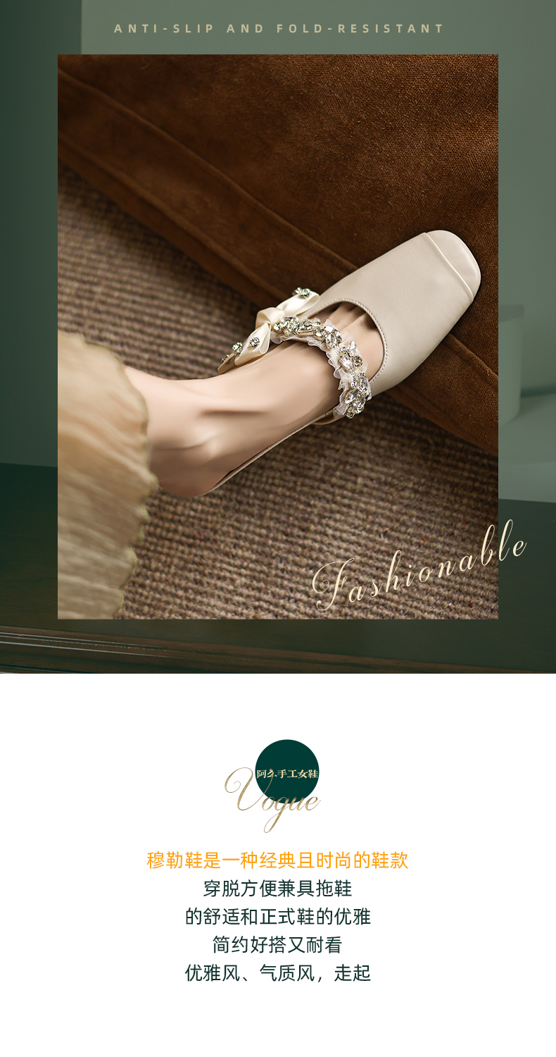 阿么手工女鞋水钻优雅女士百搭宴会鞋子官方正品法式穆勒拖4.7CM