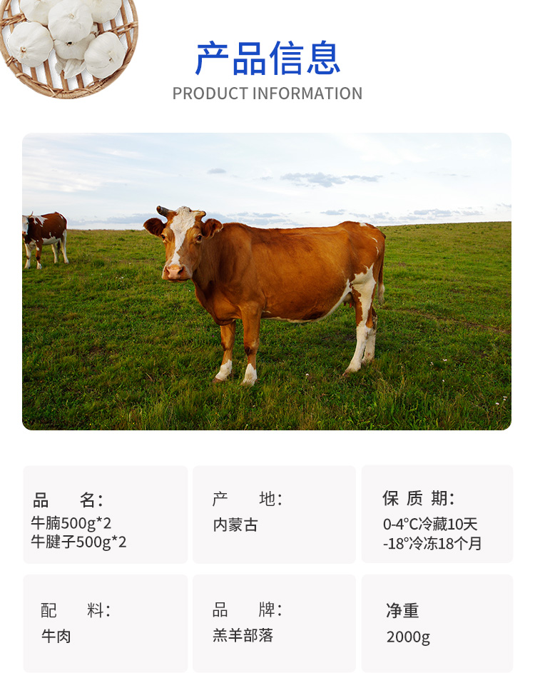 羔羊部落【冰鲜肉】牛腱子1000g+牛腩1000g国产牛肉礼盒2KG【分仓直发,72小时发货,周末节假日不发货】