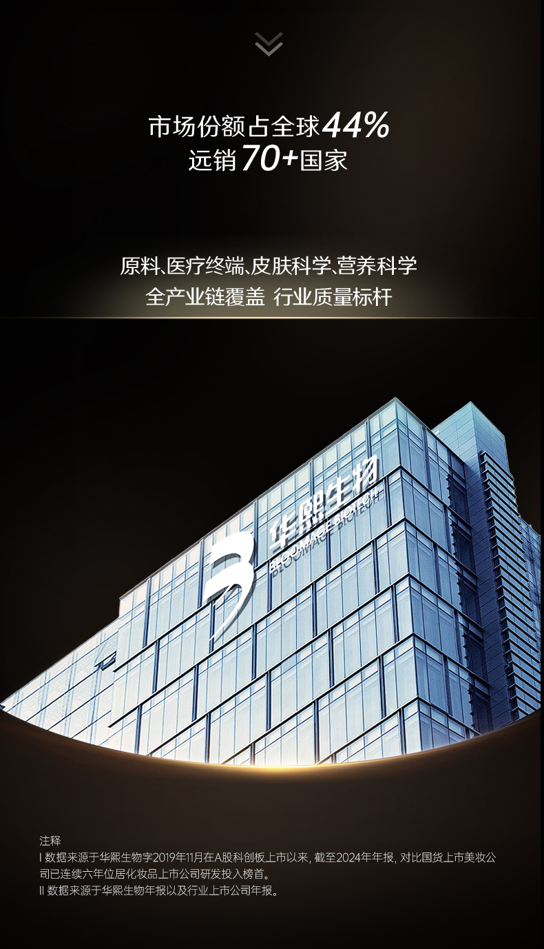 - 华熙生物专注于生物技术的发展与应用,始终关注生命健康产业的发展。依托二十年的生物发酵技术积累和卓越的研发能力,公司已发展成玻尿酸原料行业及全产业链策略下的美妆、健康进阶方式优质企业。