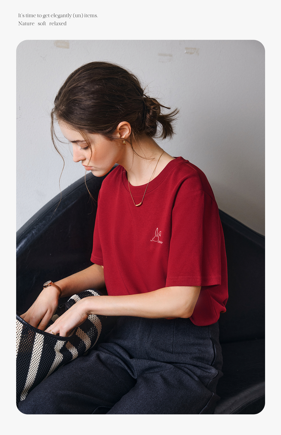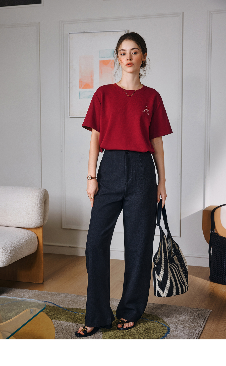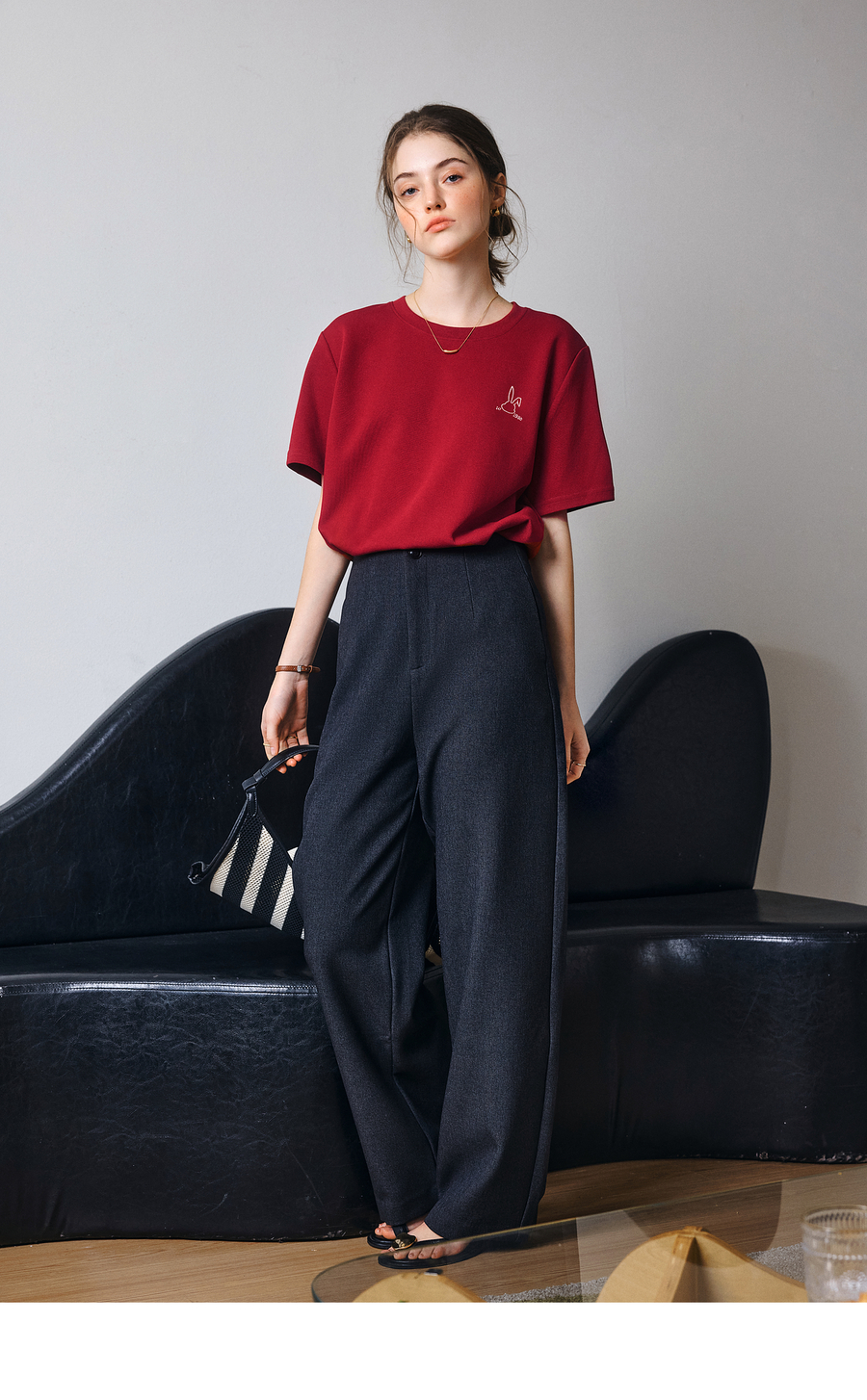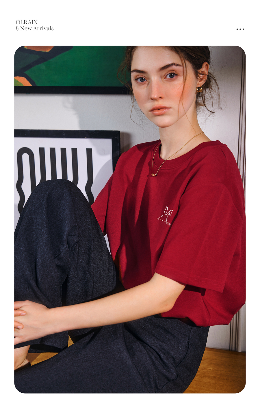 OLrain欧芮儿红色短袖T恤女夏季2025年新款百搭刺绣圆领上衣