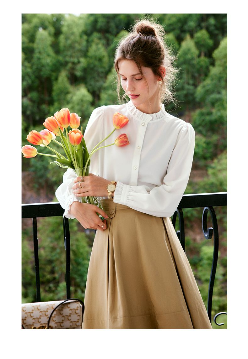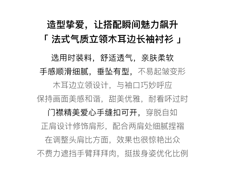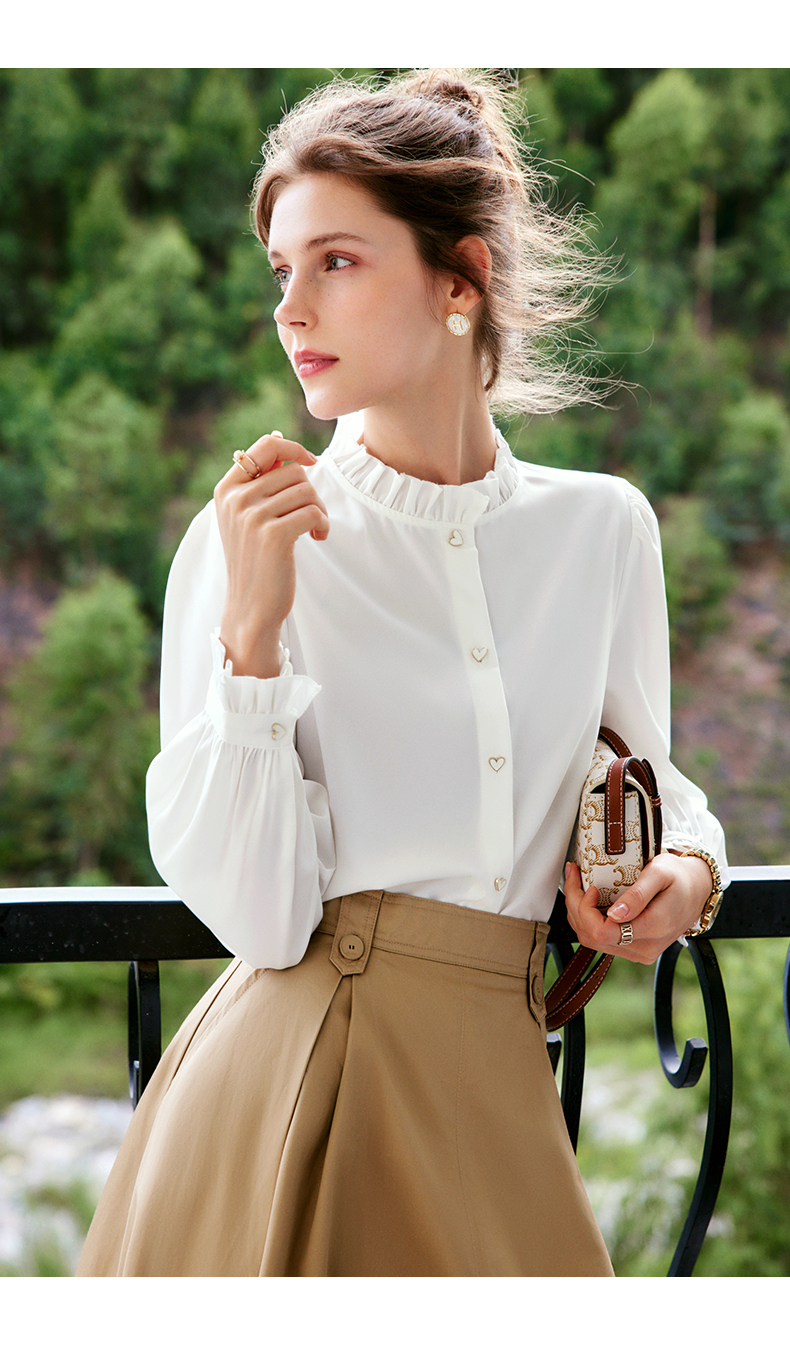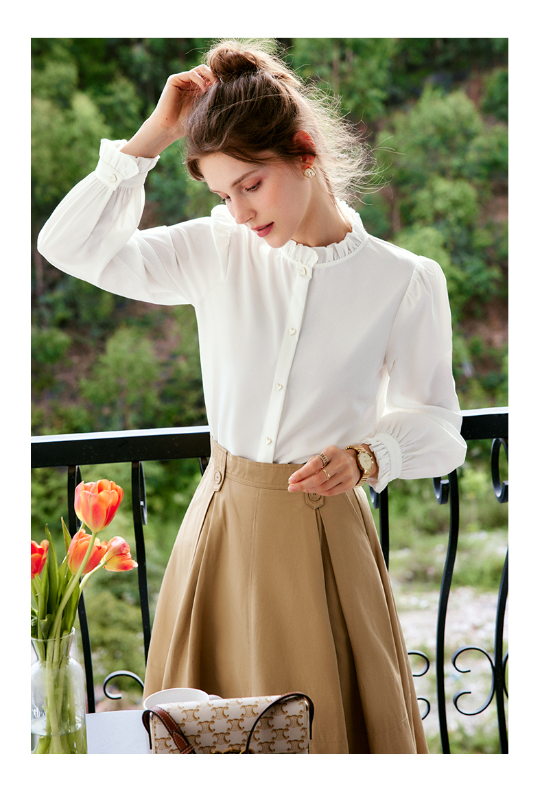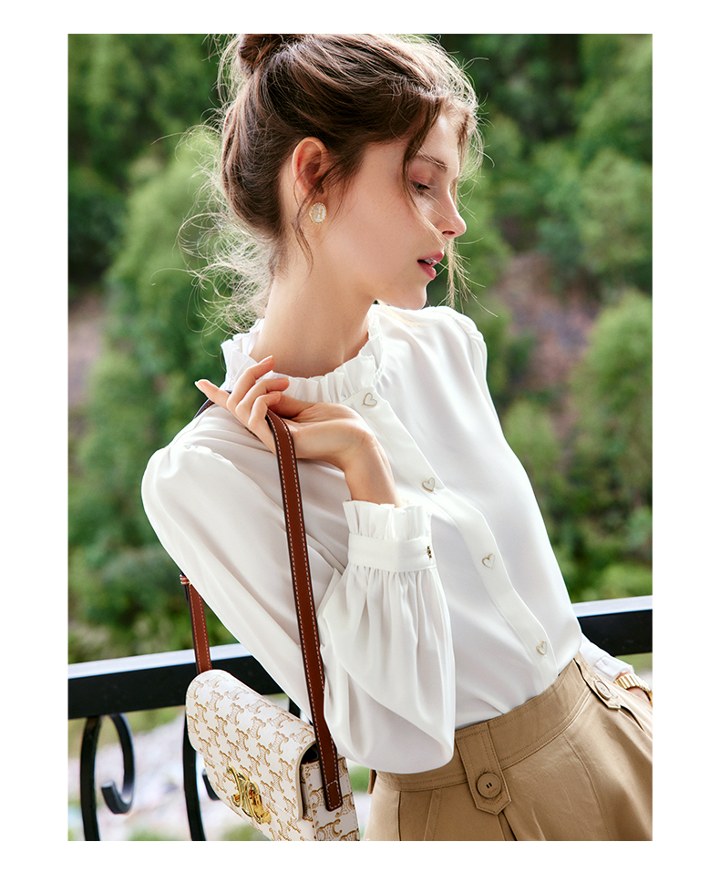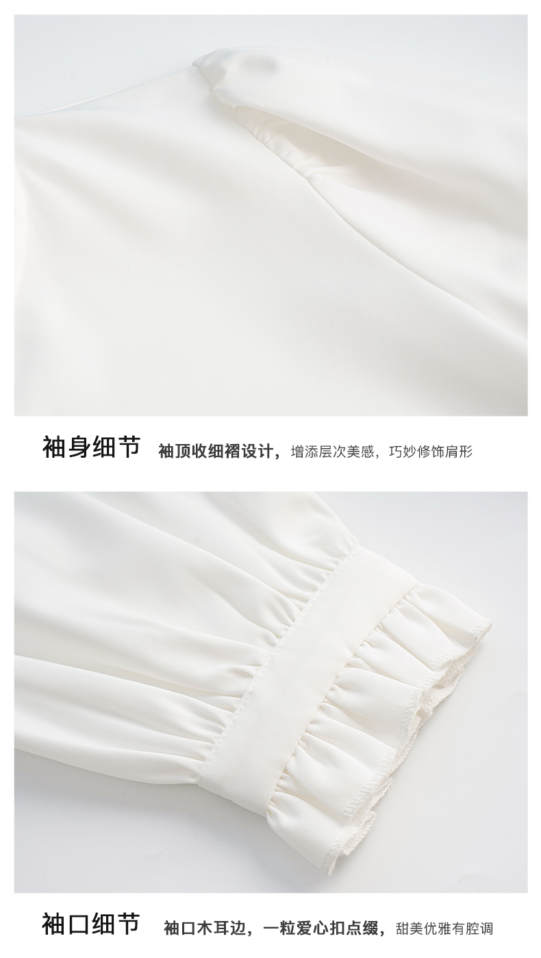 OLrain法式白色长袖衬衫女早秋2022年新款宽松气质立领泡泡袖衬衣