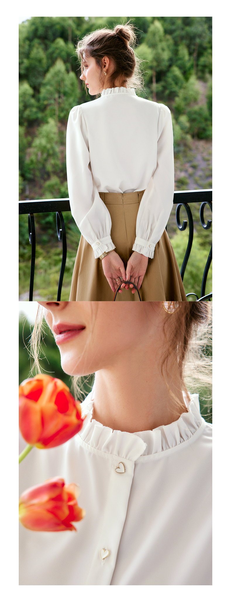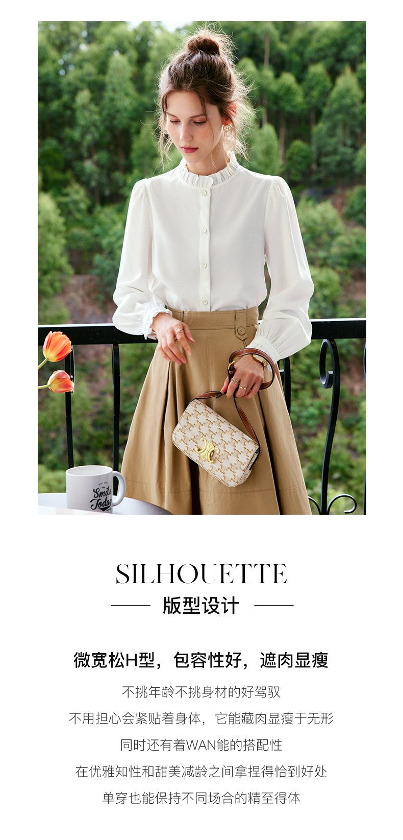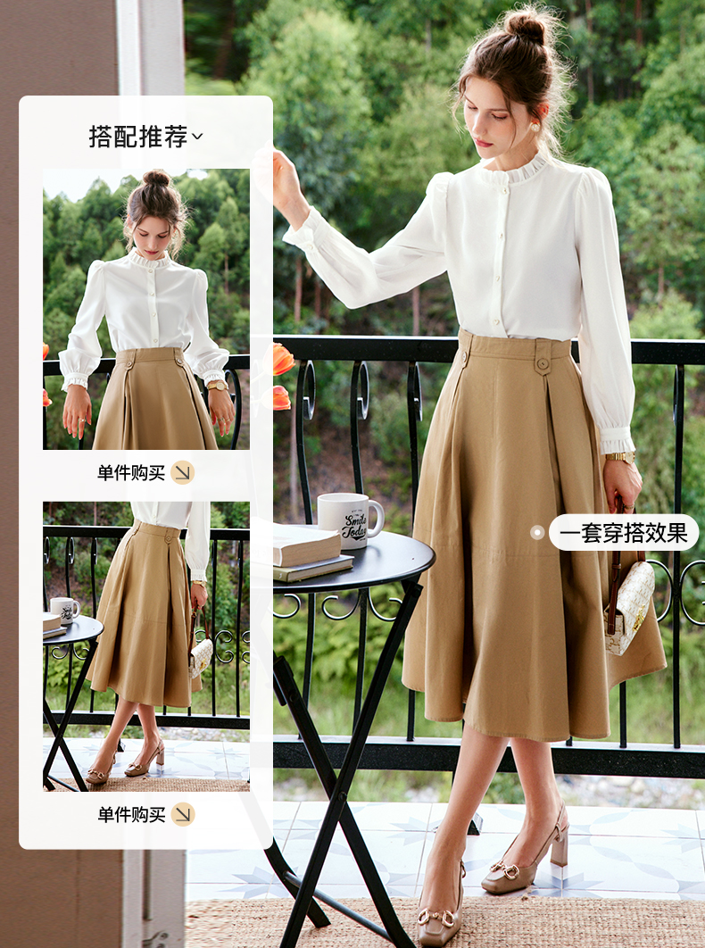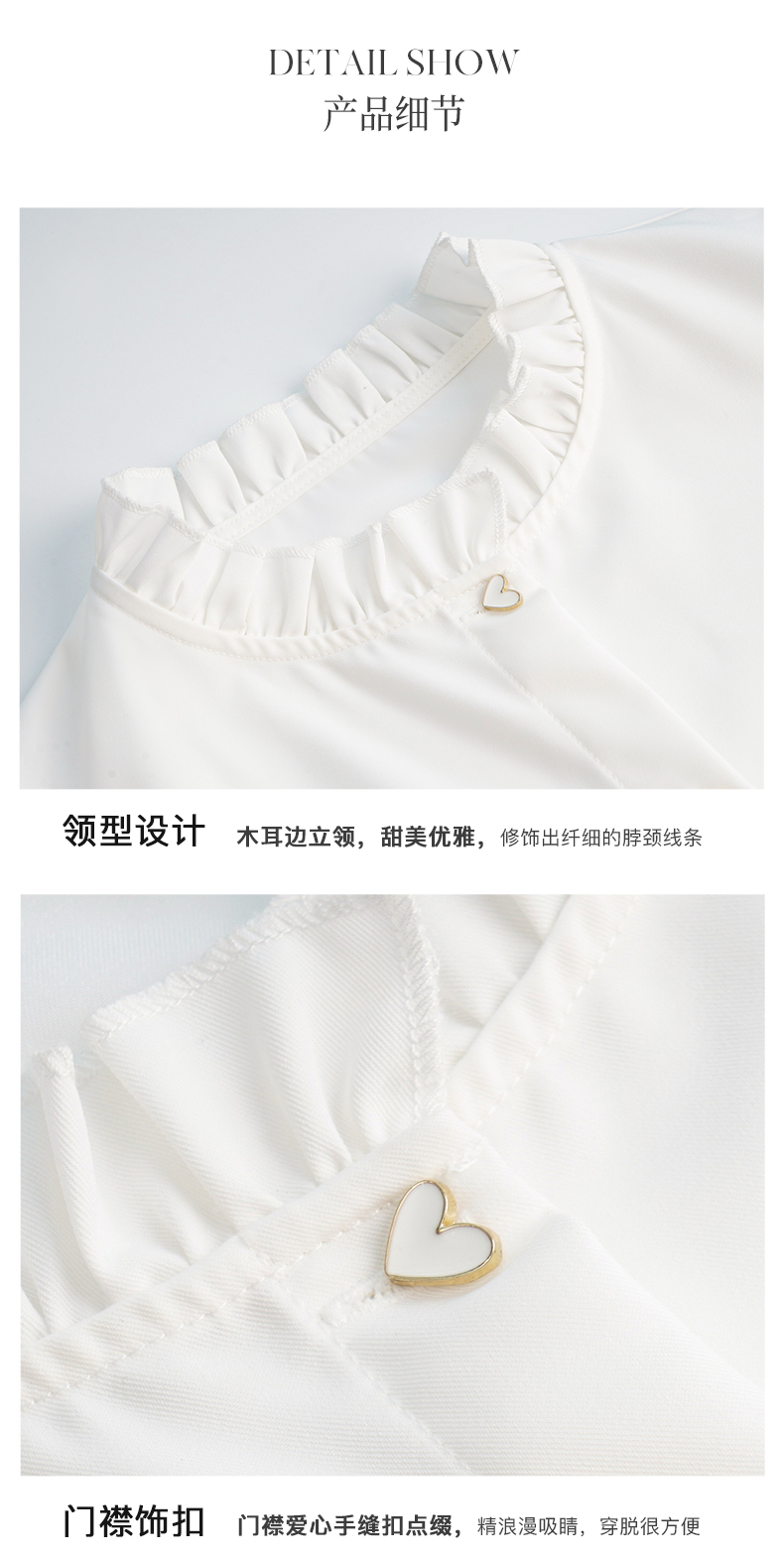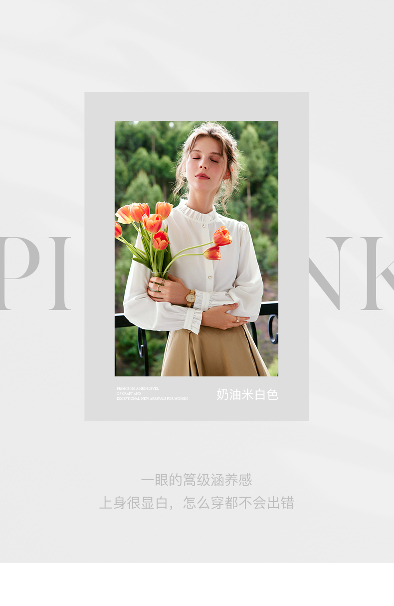 OLrain法式白色长袖衬衫女早秋2022年新款宽松气质立领泡泡袖衬衣