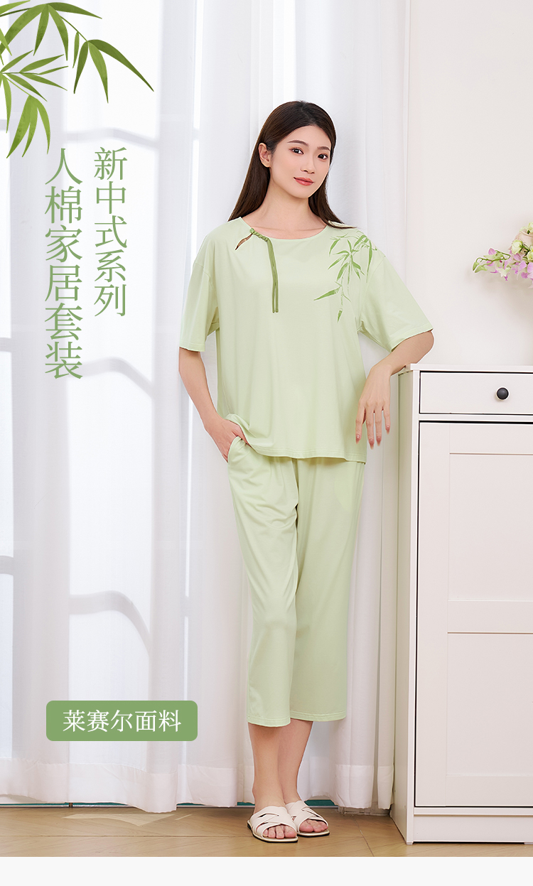 【商场同款】熳洁儿 新中式家居服莱赛尔圆领短袖七分裤套装优雅国风25203227