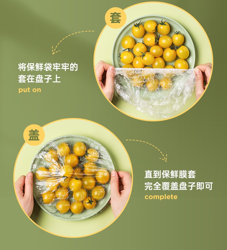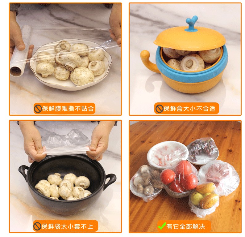 一次性加厚保鲜套100入 保鲜膜罩套 保鲜袋家用冰箱碗盖松紧口盘罩