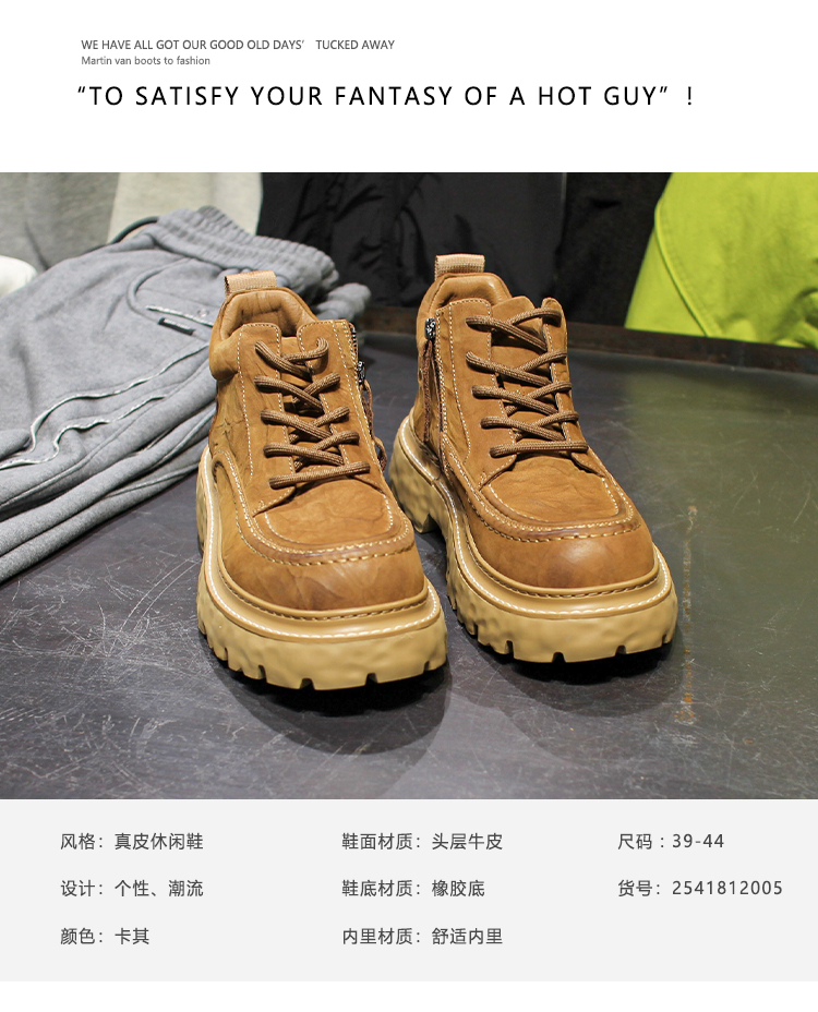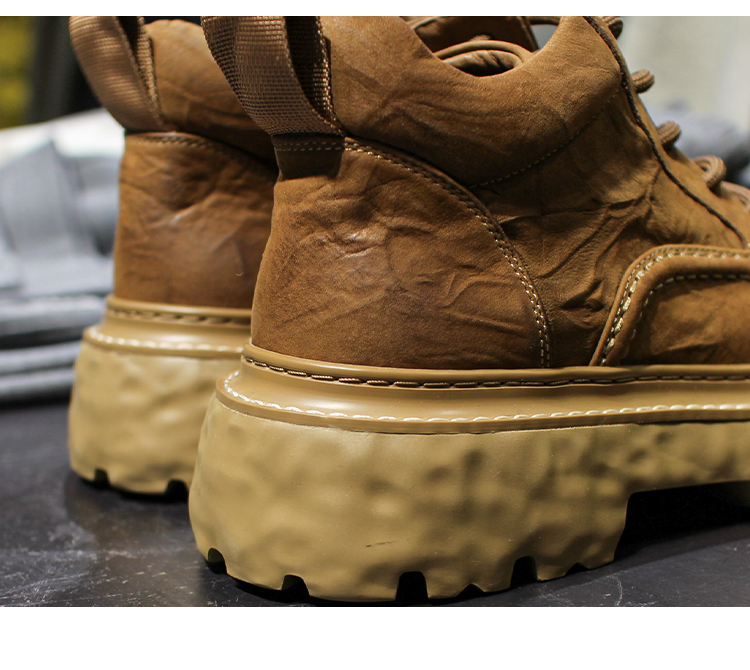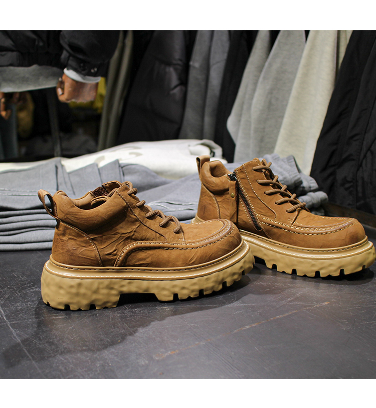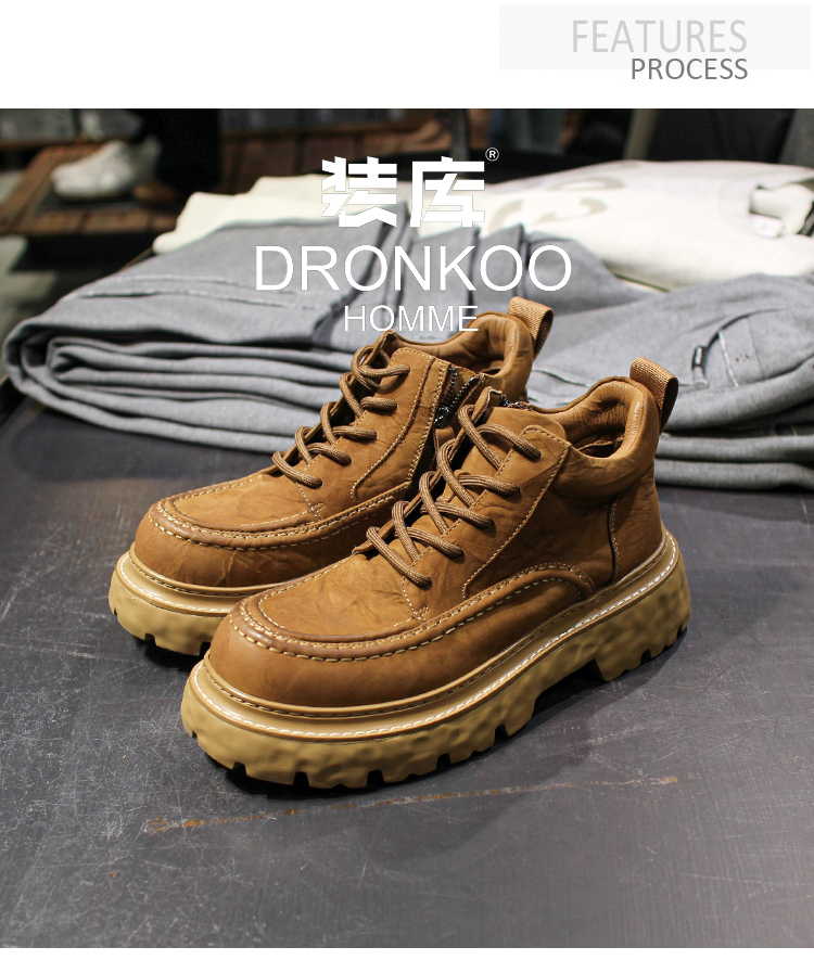 DRONKOO 2025 系带内侧拉链前压线皮料压皱中帮真皮休闲鞋