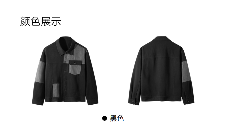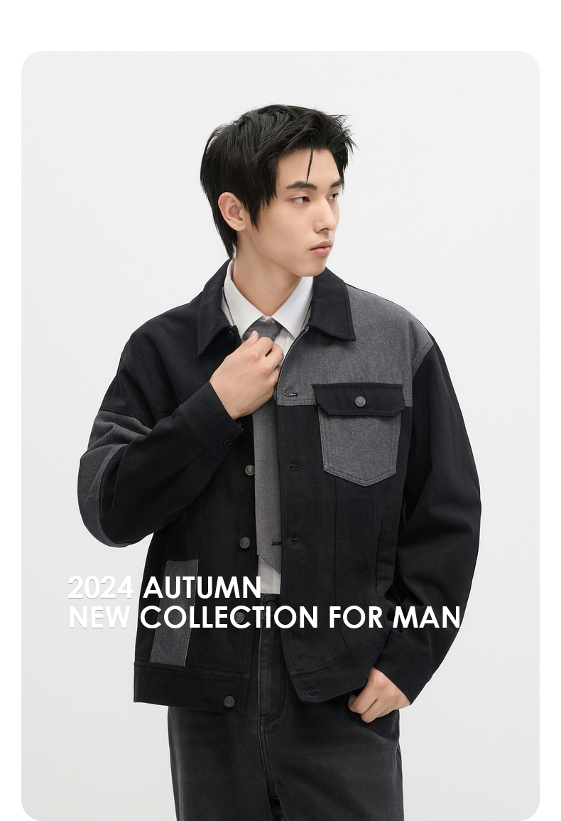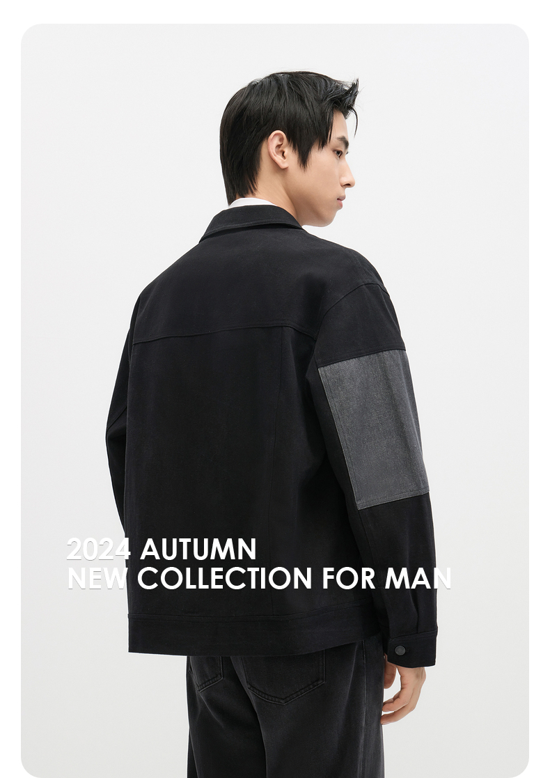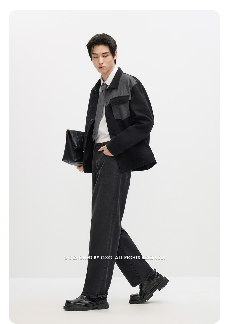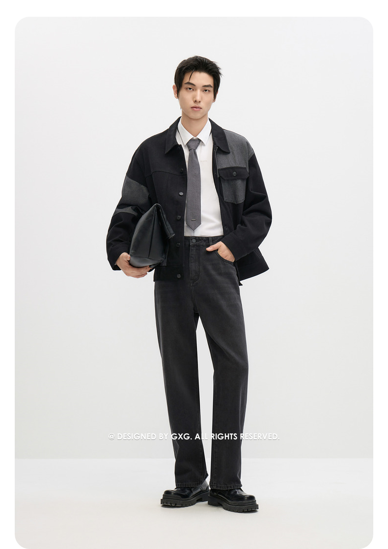 GXG男装 黑灰水洗拼接宽松长袖牛仔外套 秋季热卖#G24DE83009