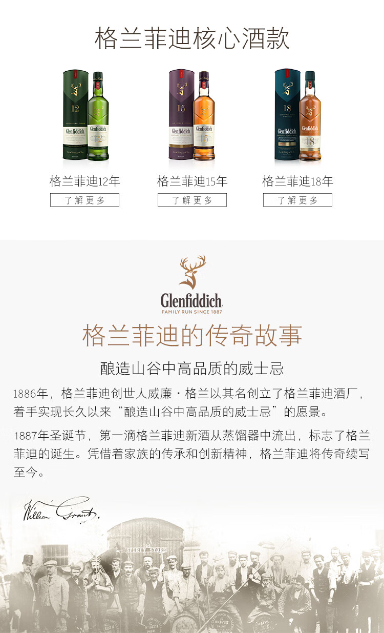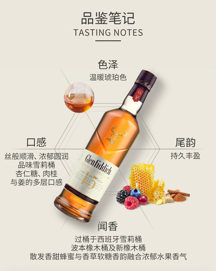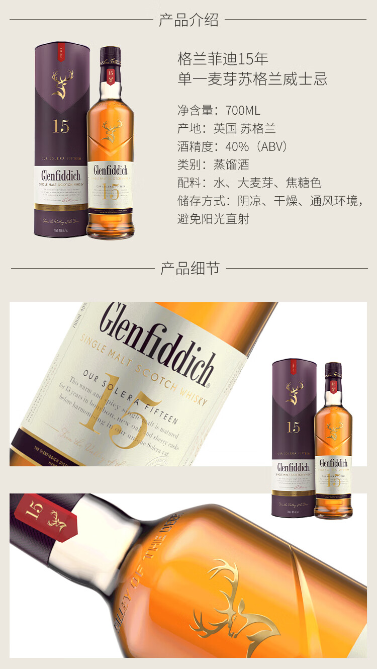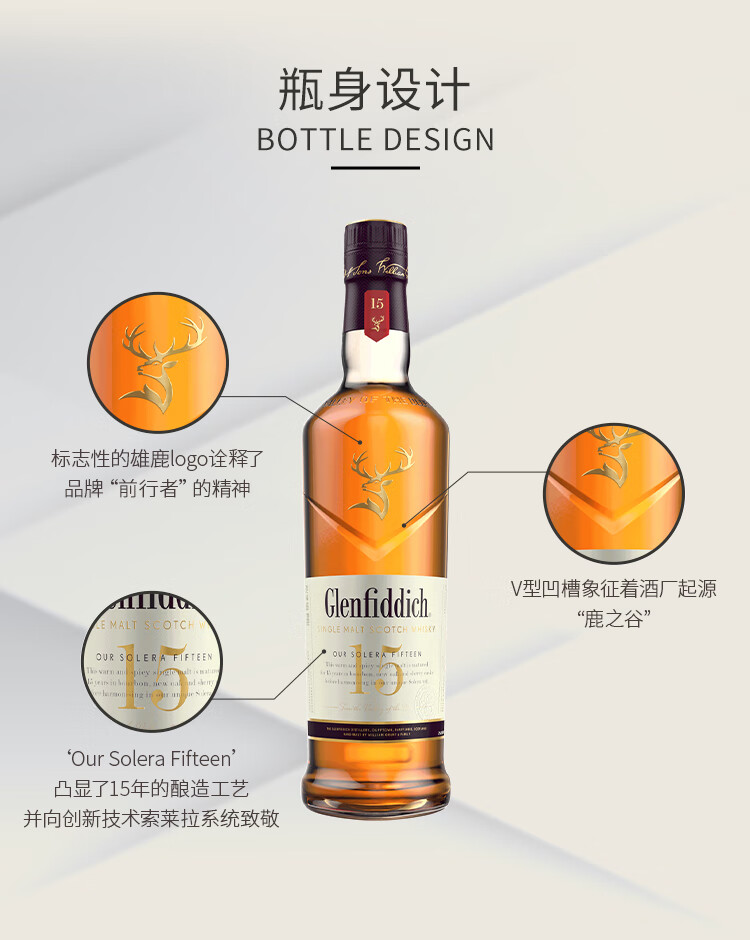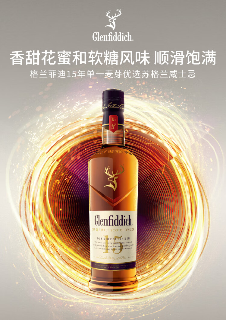 【有税版】格兰菲迪15年苏格兰单一麦芽 威士忌 700ml 核心系列