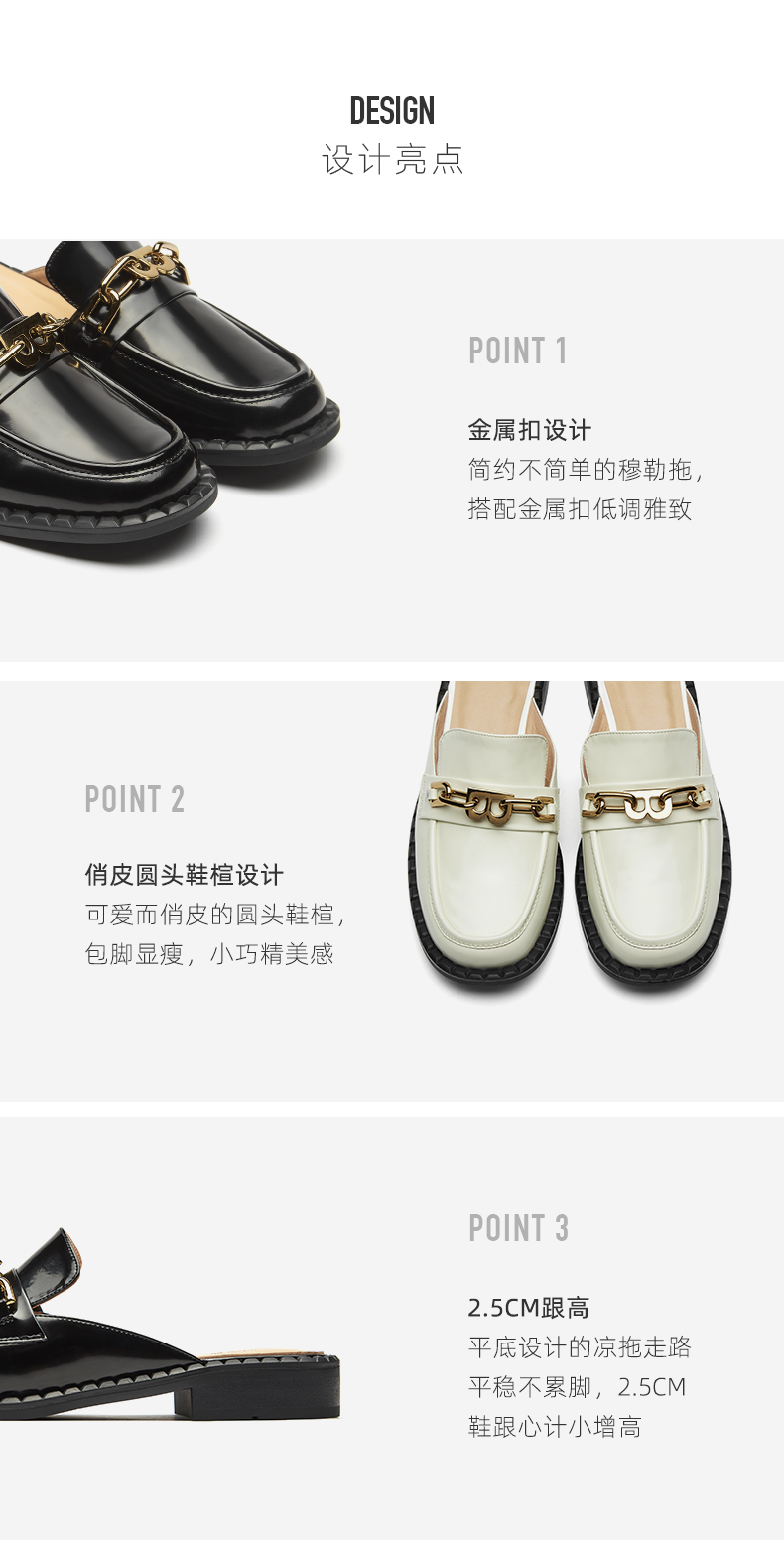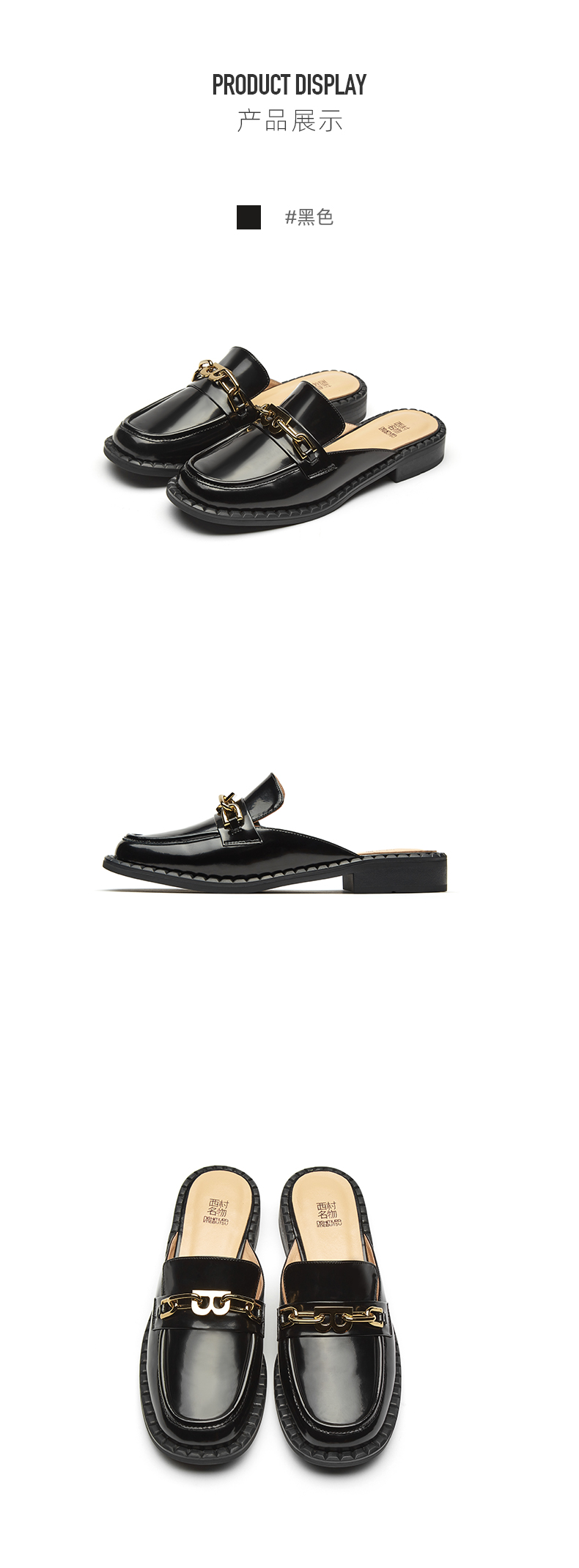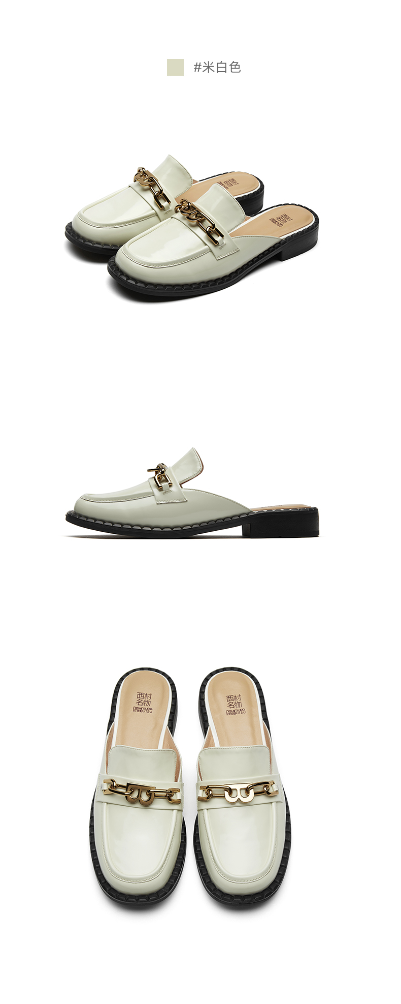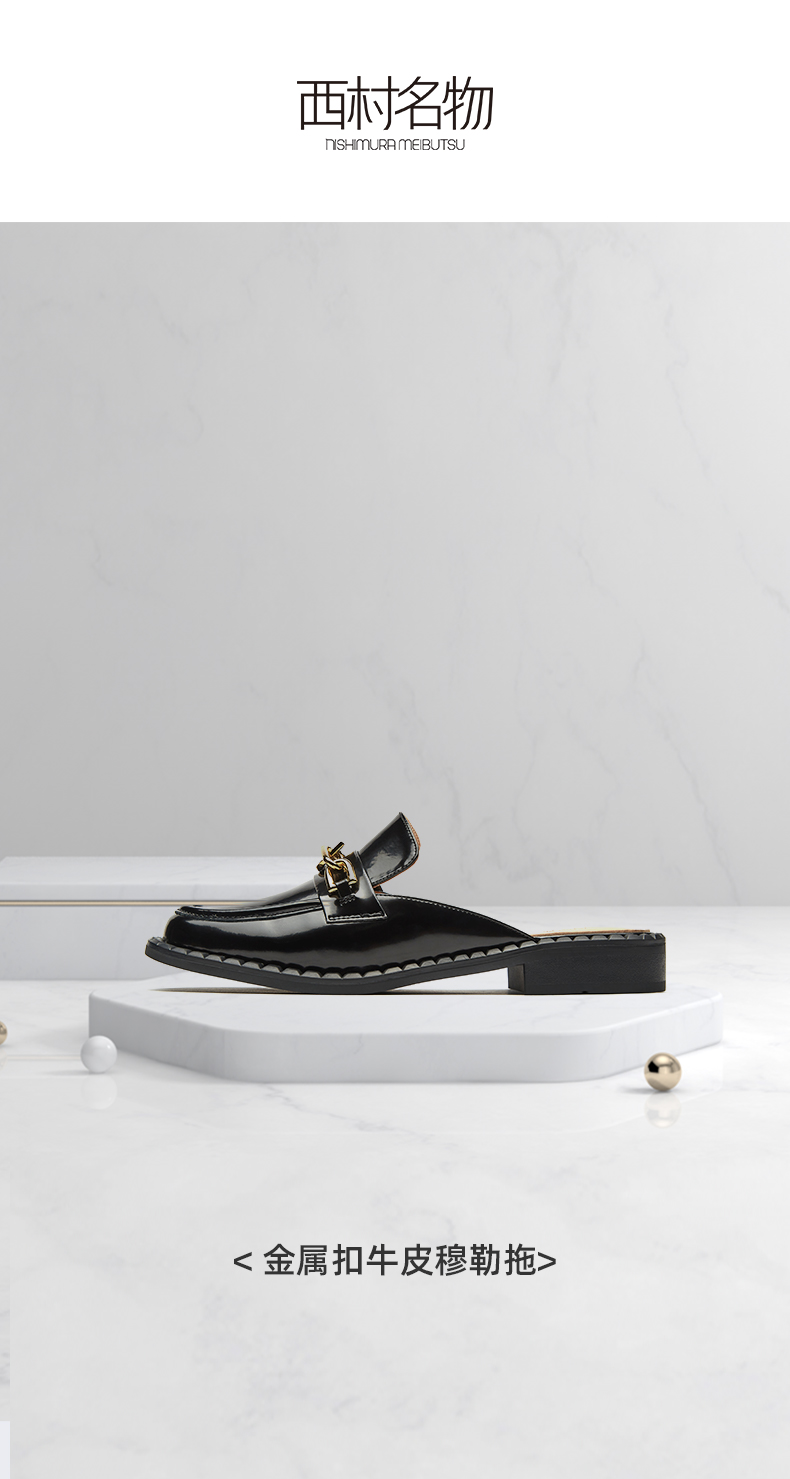 西村名物2021春夏新款真皮时尚百搭包头拖鞋金属链低跟穆勒T21AH15031