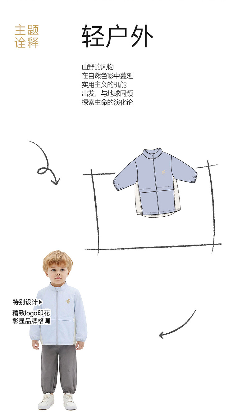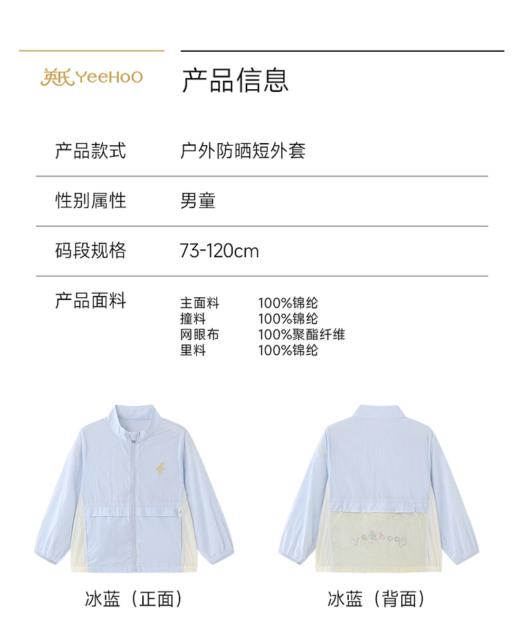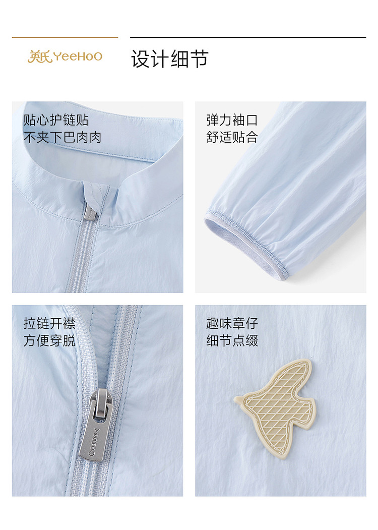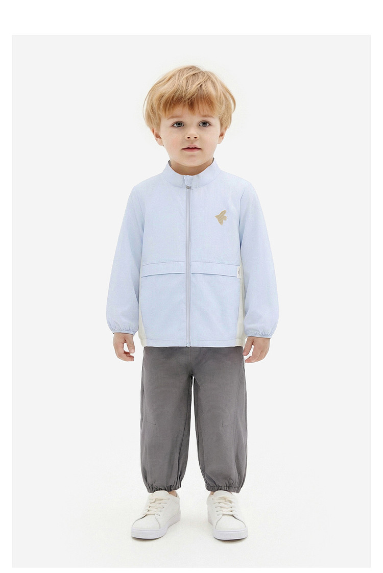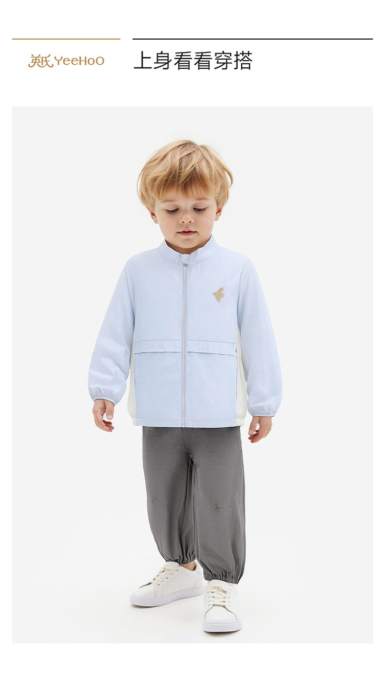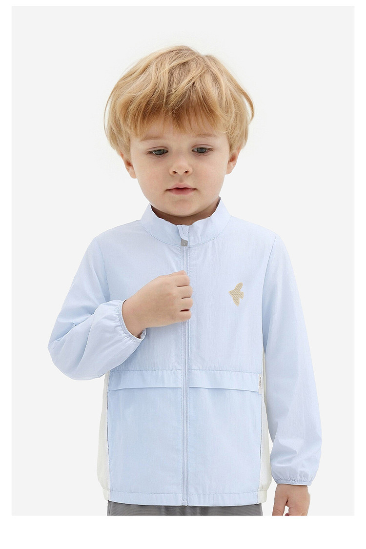 英氏儿童外套男童立领防晒衣新款冰蓝色简约皮肤衣YRWVJ2S009A