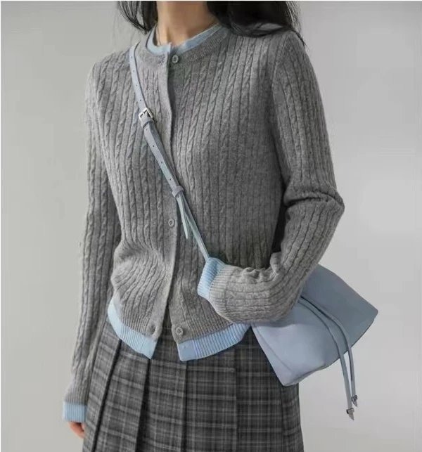 m家同款,法式假两件设计的棒针毛衣开衫,爱死了! miu里miu气, 还拥有轻奢高品质!