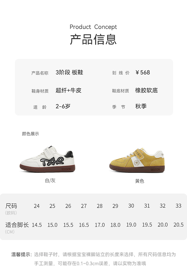 泰兰尼斯童鞋儿童板鞋秋季新款女童轻便防滑德训鞋男童校园小白鞋 T02X5C7464