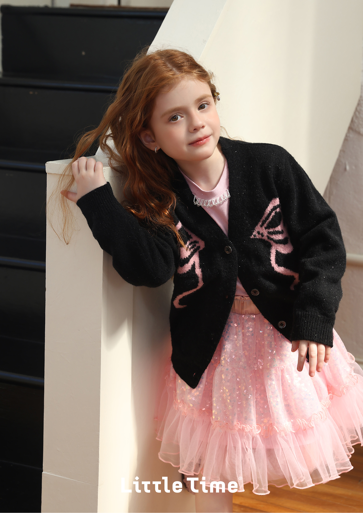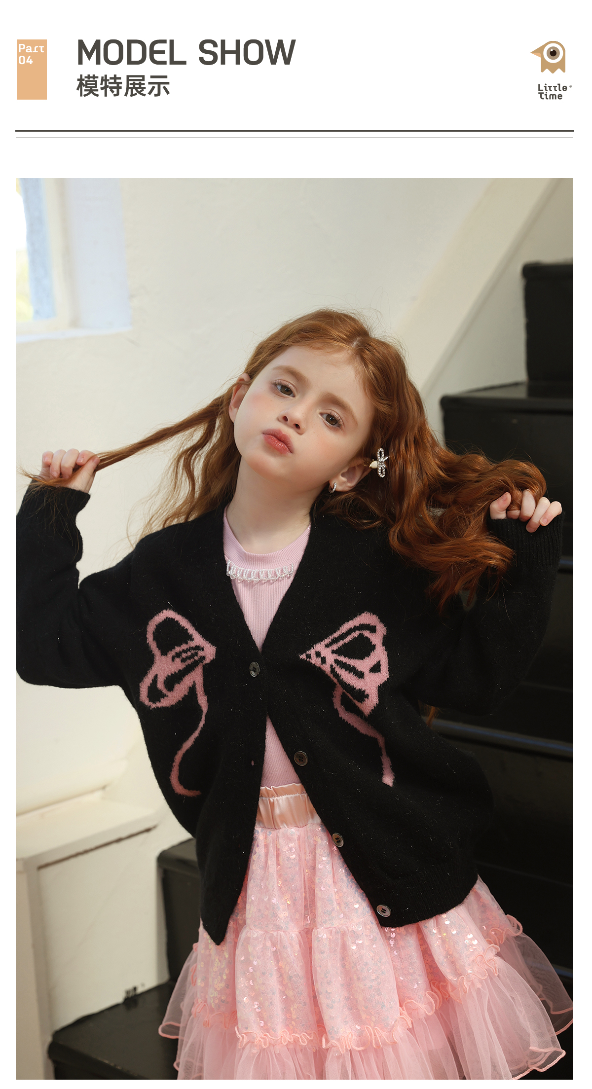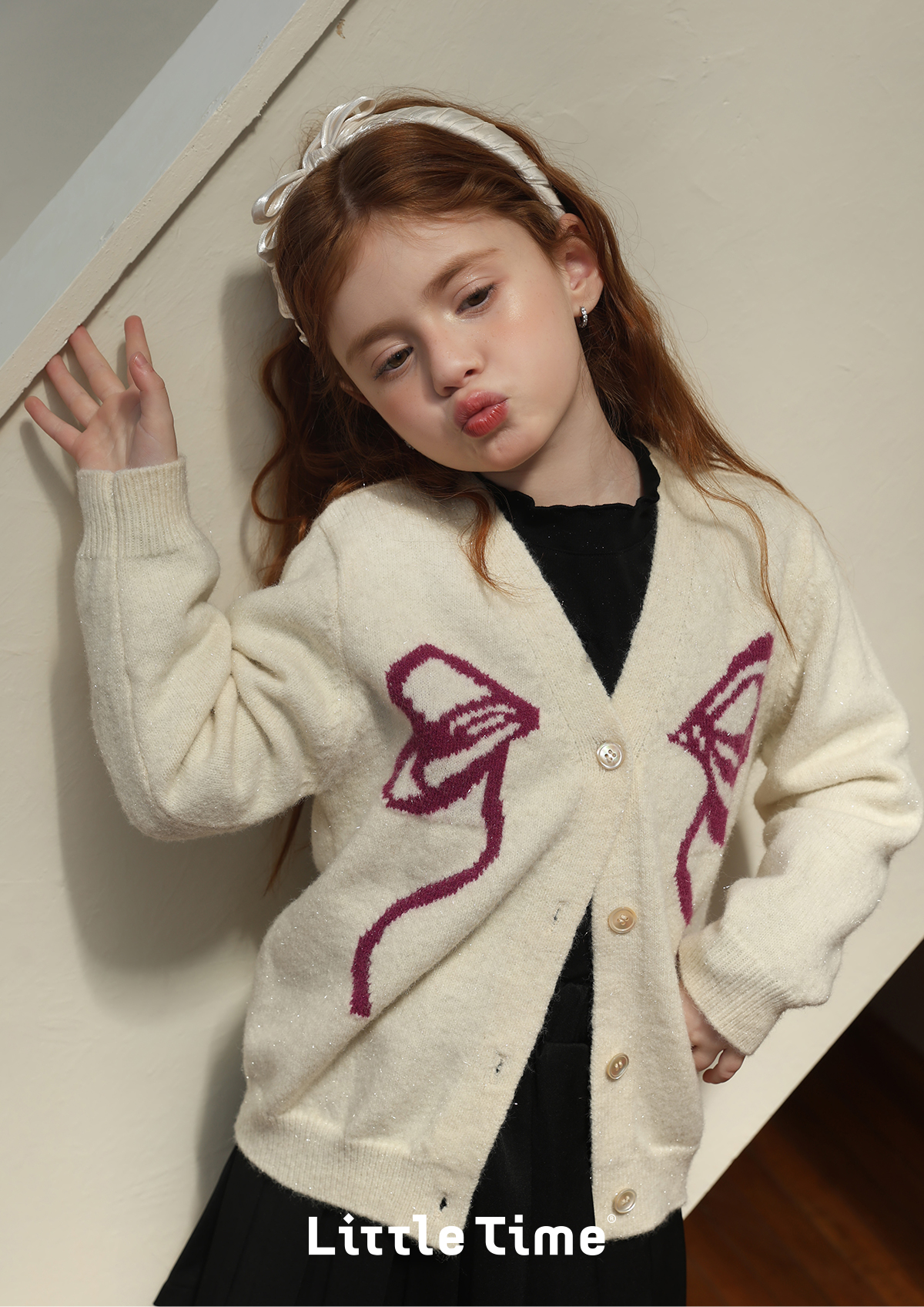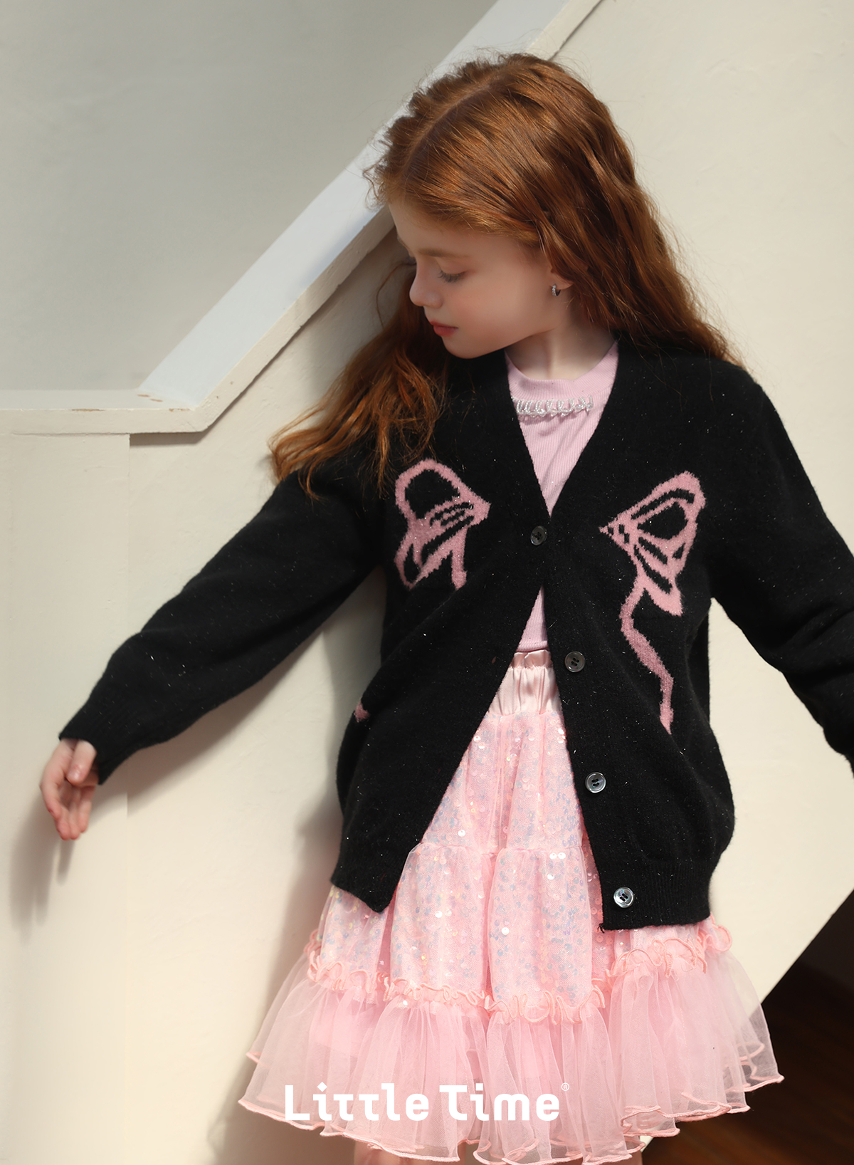 littletime女童毛衣2025秋冬新款儿童韩版蝴蝶结针织开衫外套