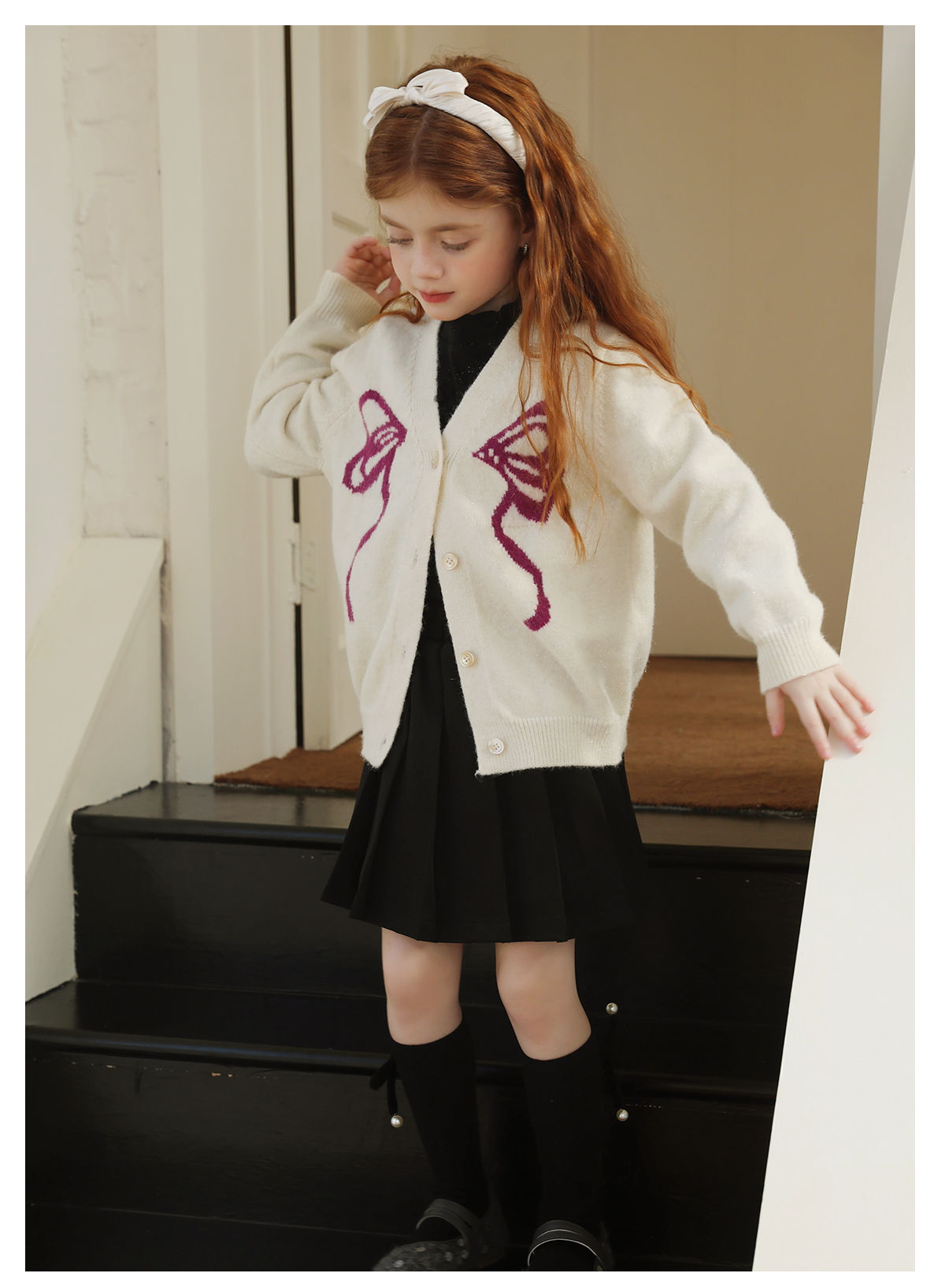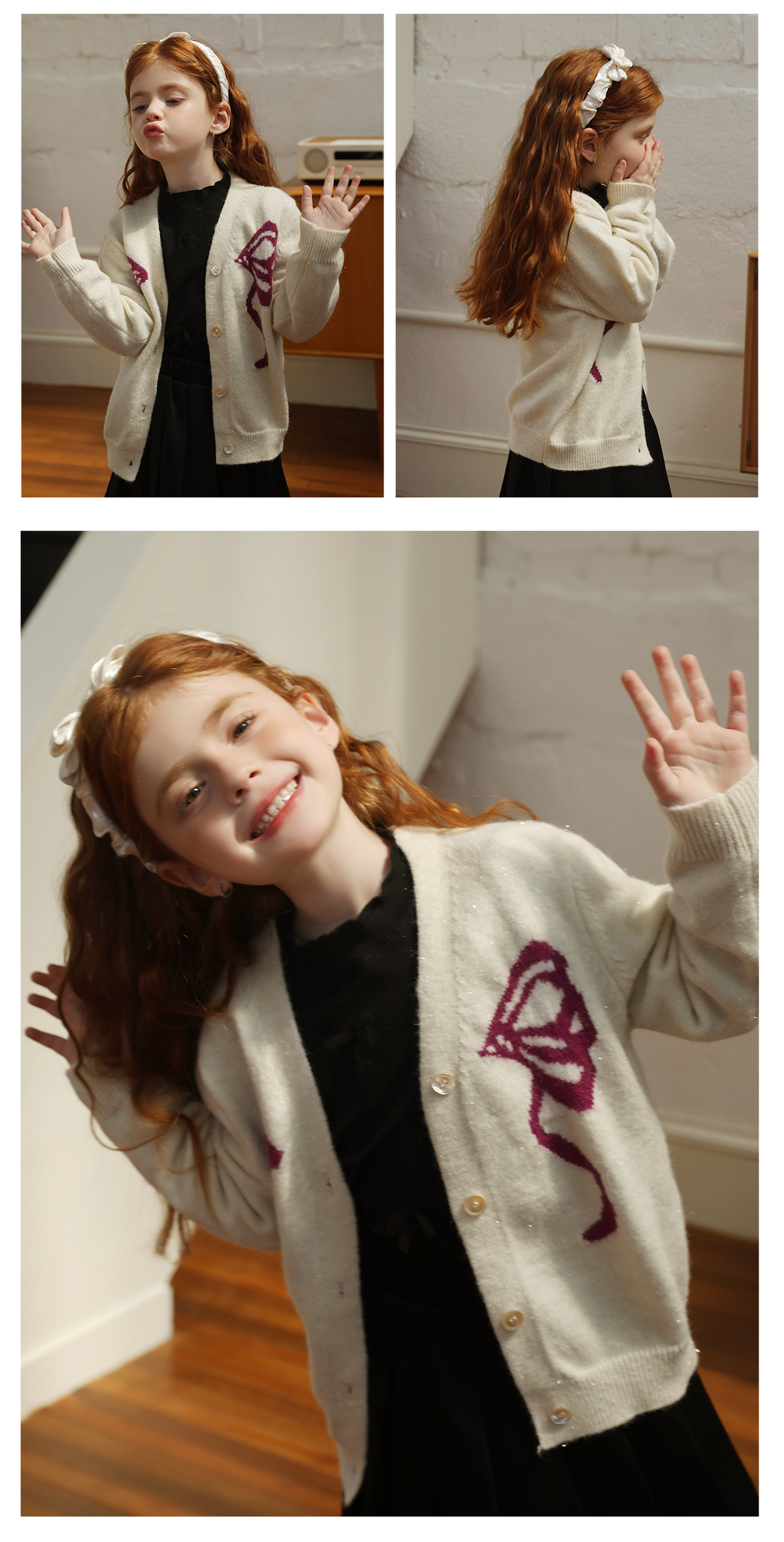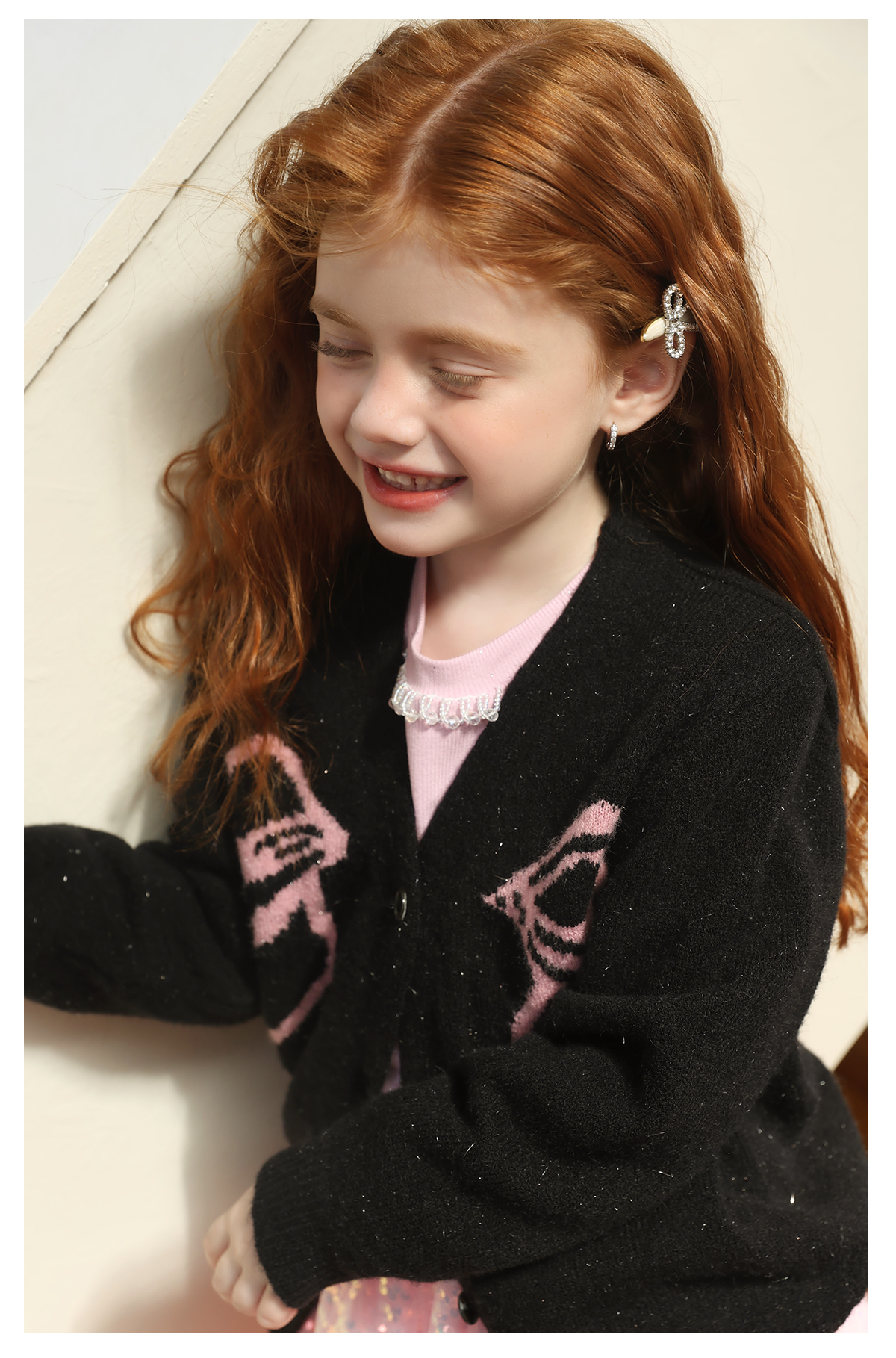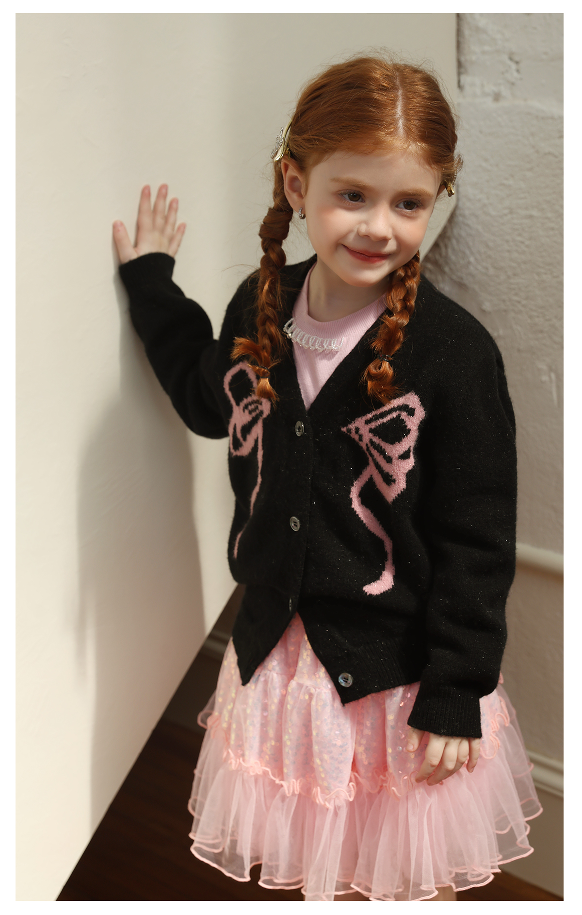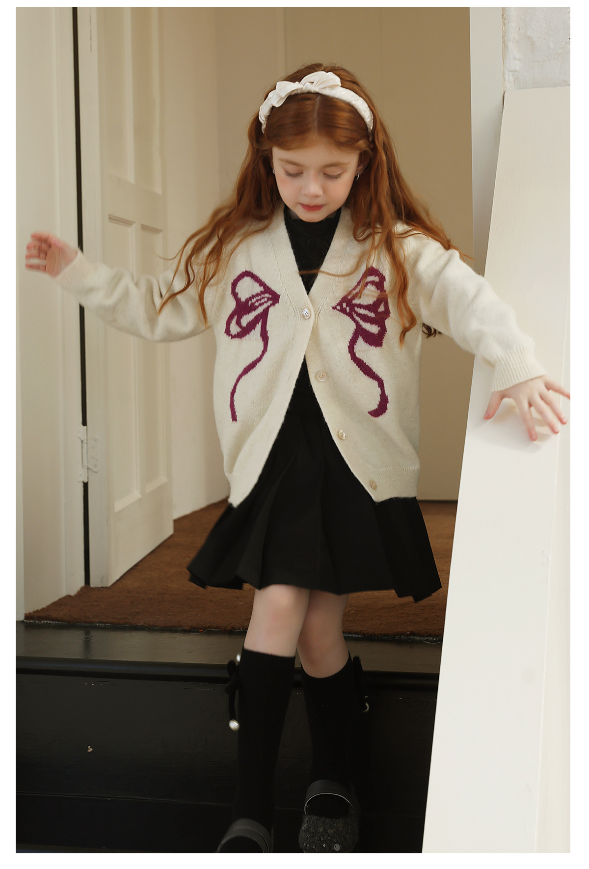 littletime女童毛衣2025秋冬新款儿童韩版蝴蝶结针织开衫外套